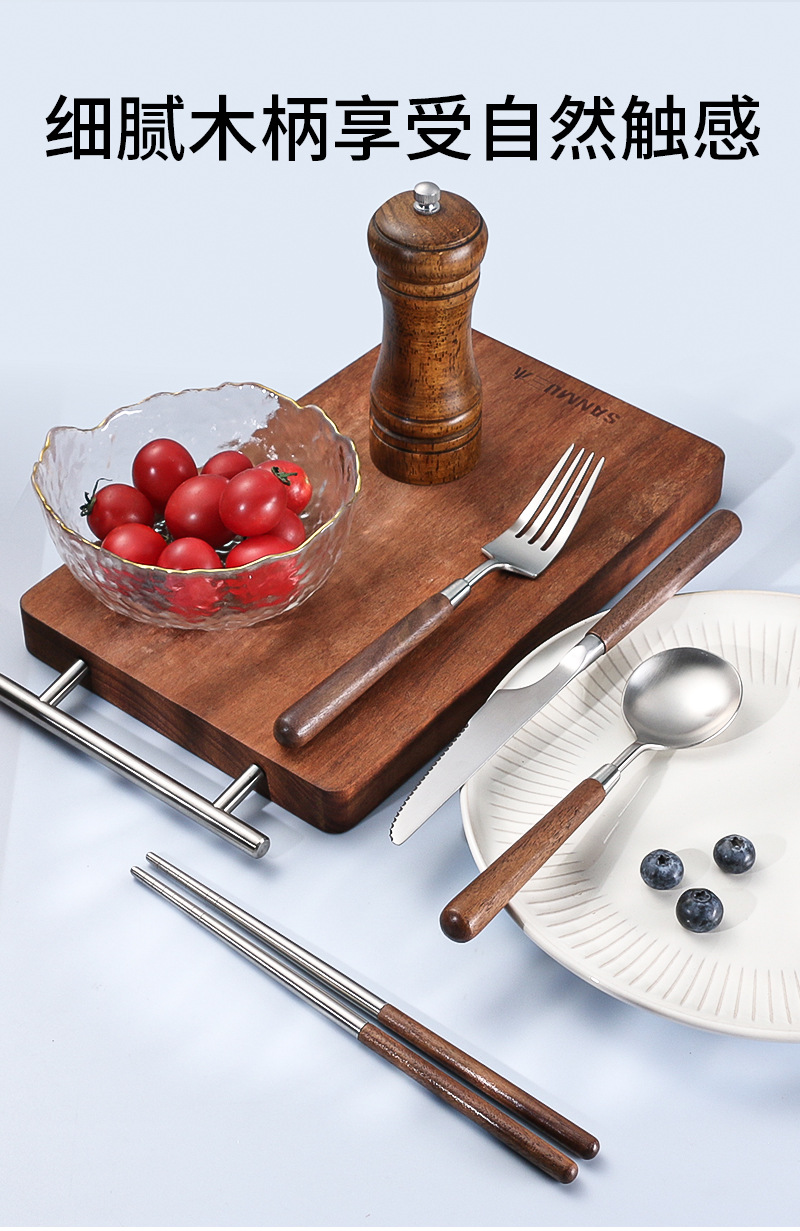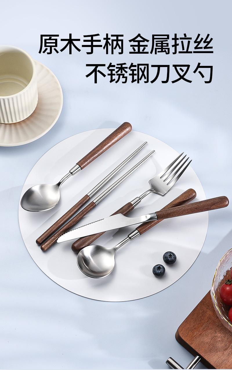 호두 손잡이 스테인레스 스틸 식기 웨스턴 나이프와 포크 스푼 스테이크 나이프 젓가락 레스토랑 그물 레드 월넛 식기스토어 가기