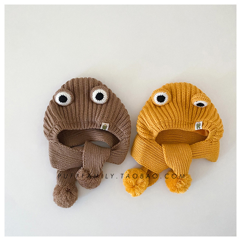 겨울 아기 모자 스카프 통합 모자 귀여운 어린이 귀 보호 모자 기모 따뜻한 양모 모자 소년 소녀를위한 풀오버스토어 가기