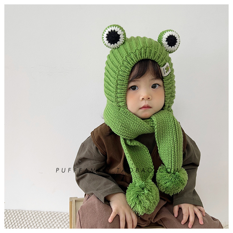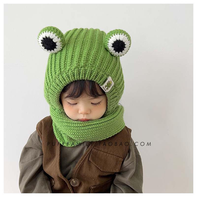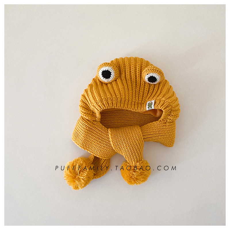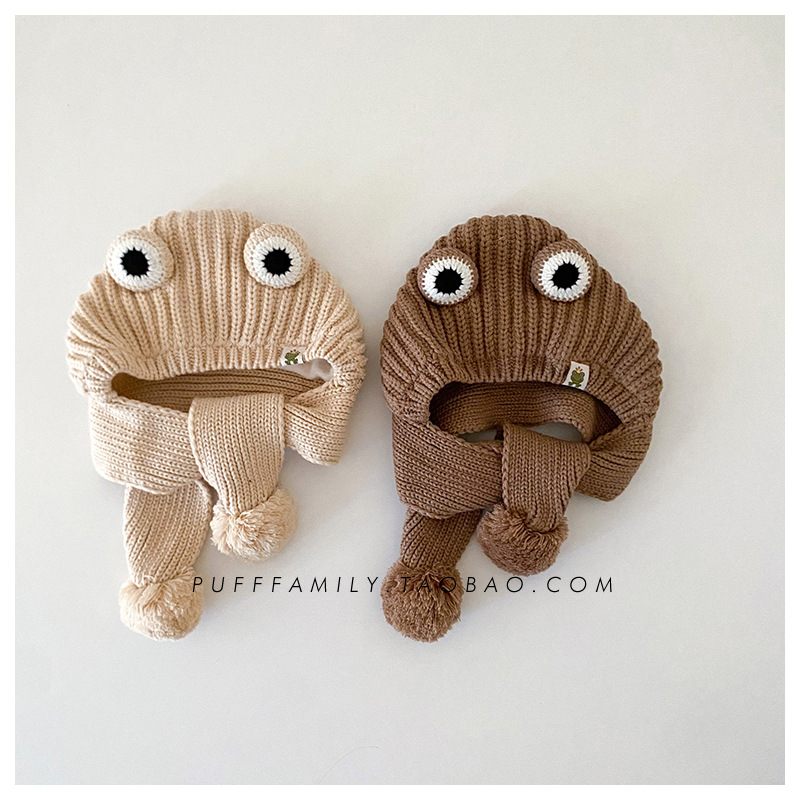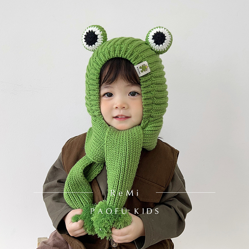 겨울 아기 모자 스카프 통합 모자 귀여운 어린이 귀 보호 모자 기모 따뜻한 양모 모자 소년 소녀를위한 풀오버