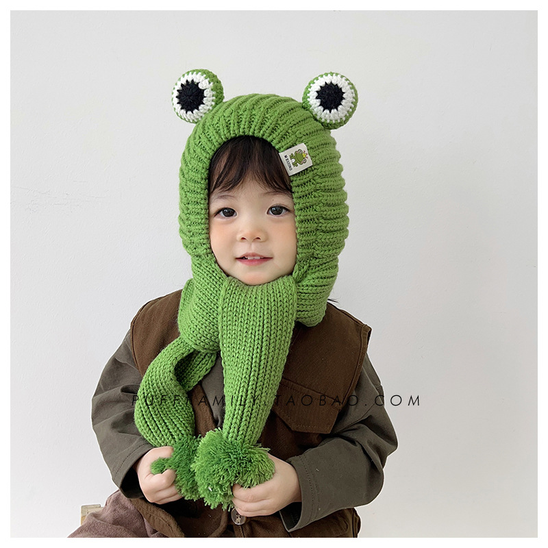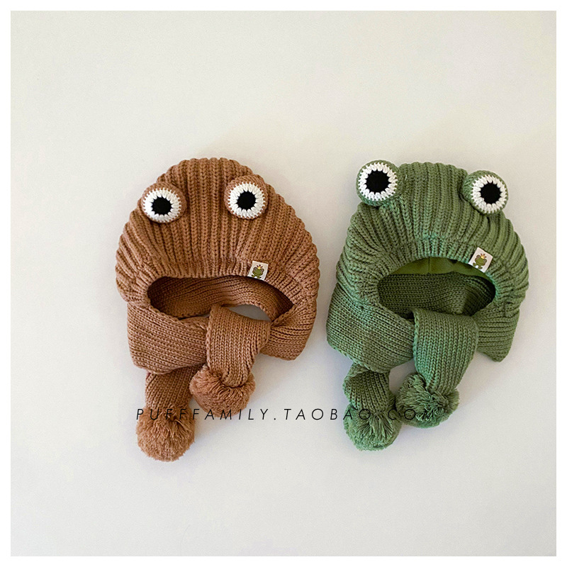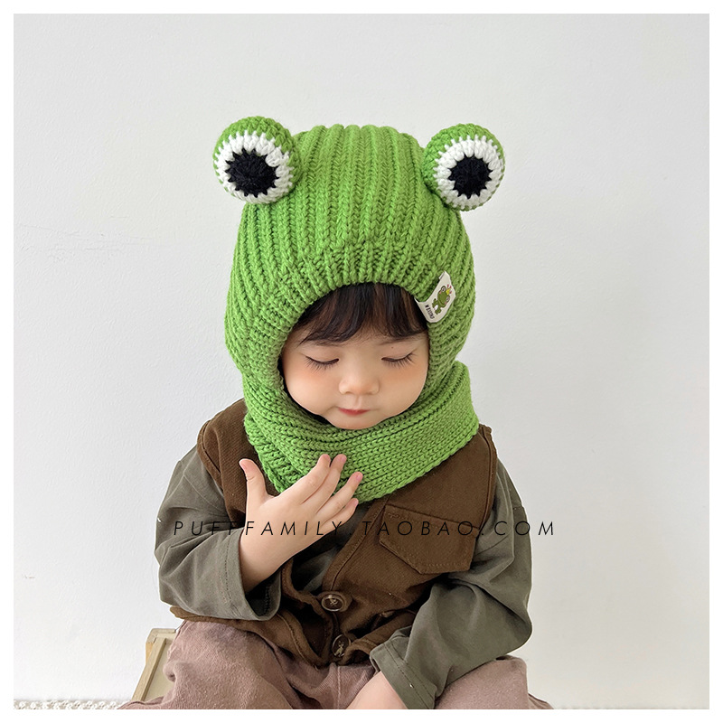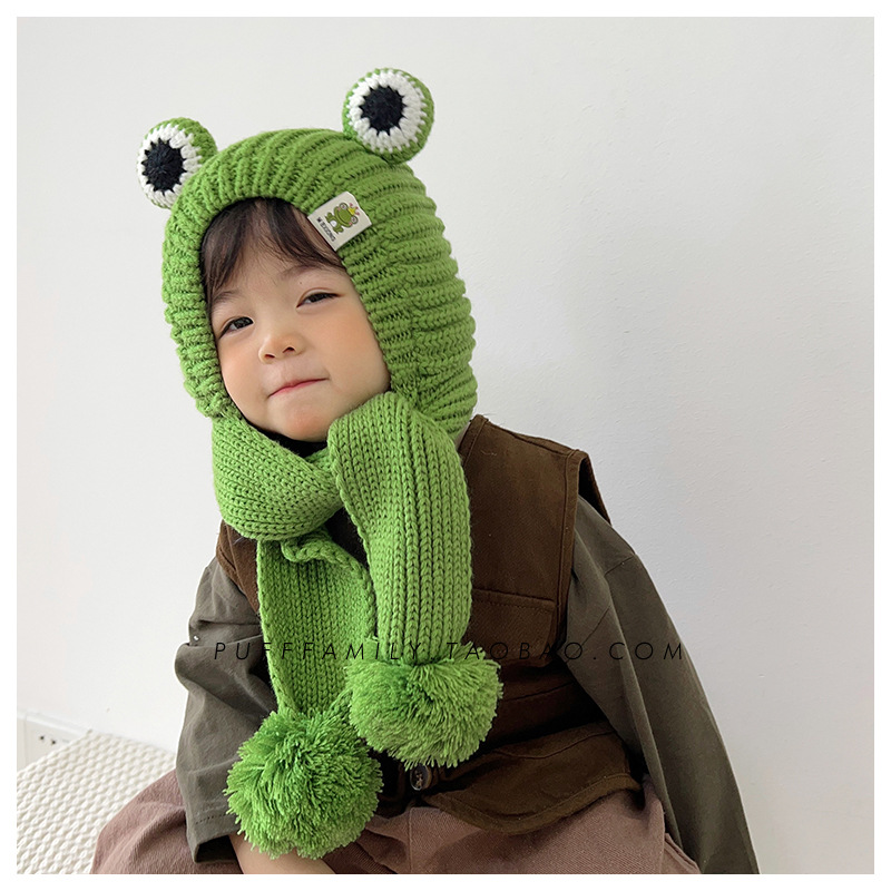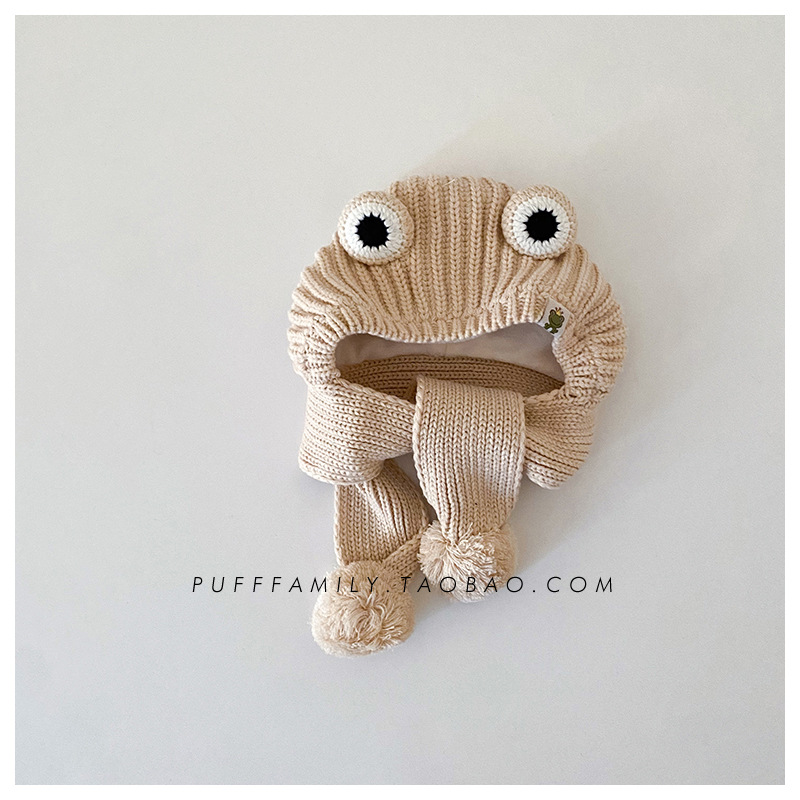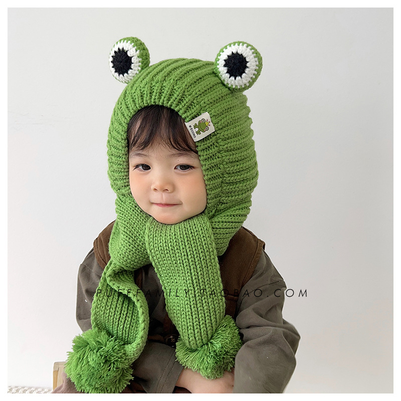 겨울 아기 모자 스카프 통합 모자 귀여운 어린이 귀 보호 모자 기모 따뜻한 양모 모자 소년 소녀를위한 풀오버