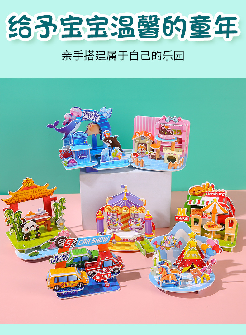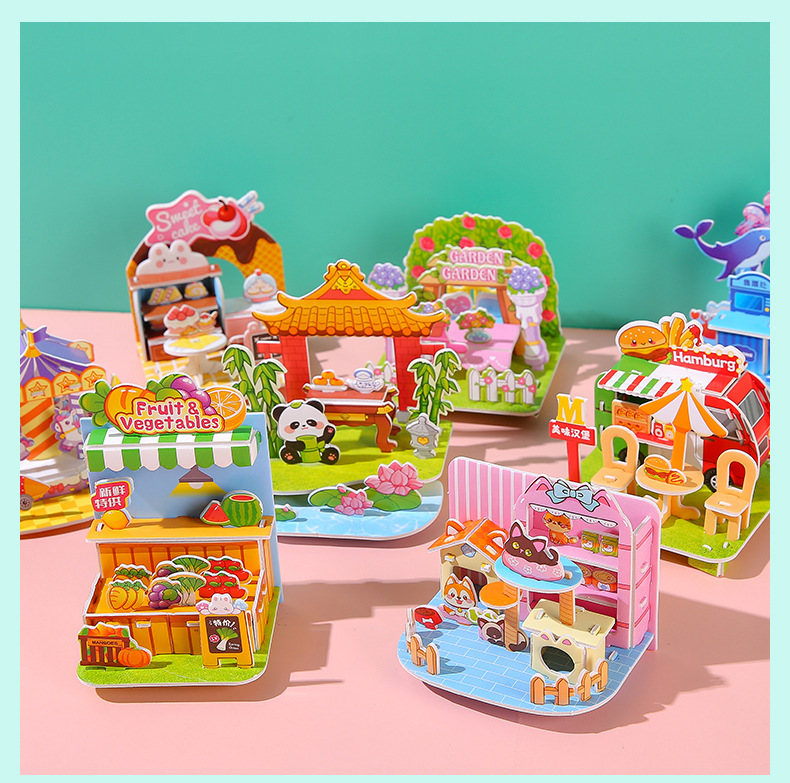 창조적 인 3D 입체 퍼즐 종이 집 어린이 수제 DIY 모델 퍼즐 조기 교육 소년 소녀 장난감 도매스토어 가기