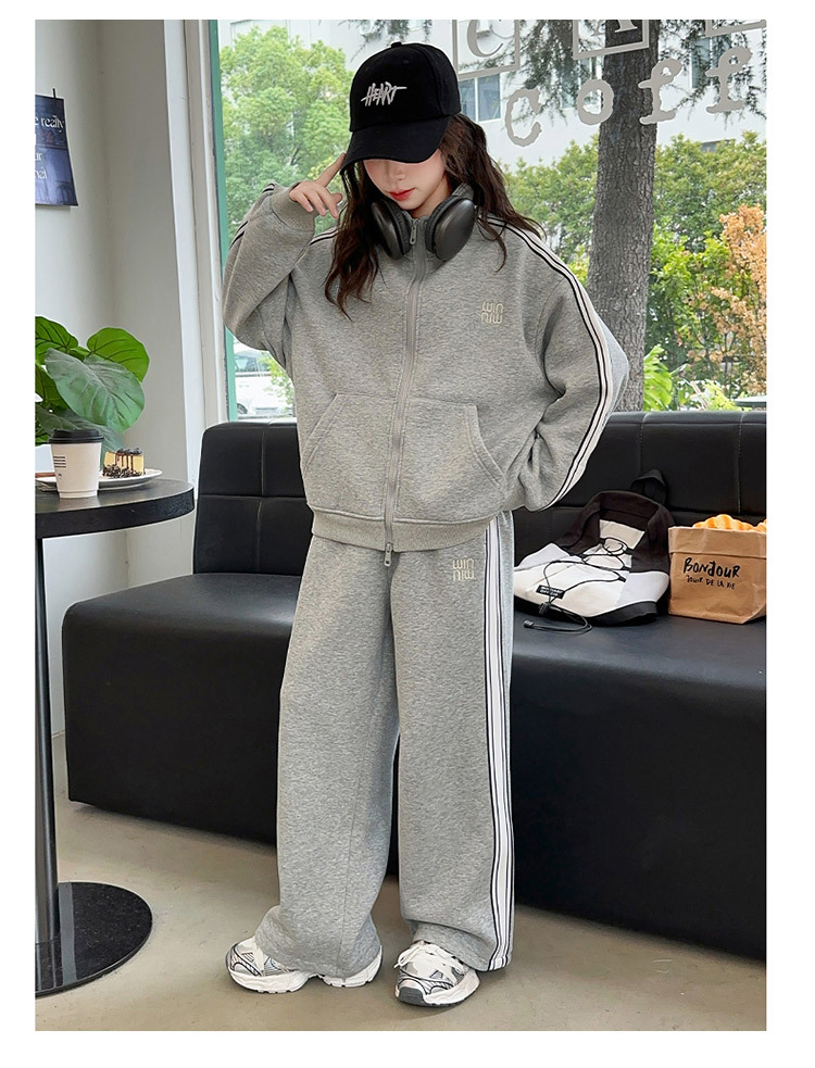 2024 년 가을 어린이 편지 스포츠 지퍼와 벨벳 세트 새로운 한국식 어린이 유행 올매치 서양식 투피스 세트스토어 가기