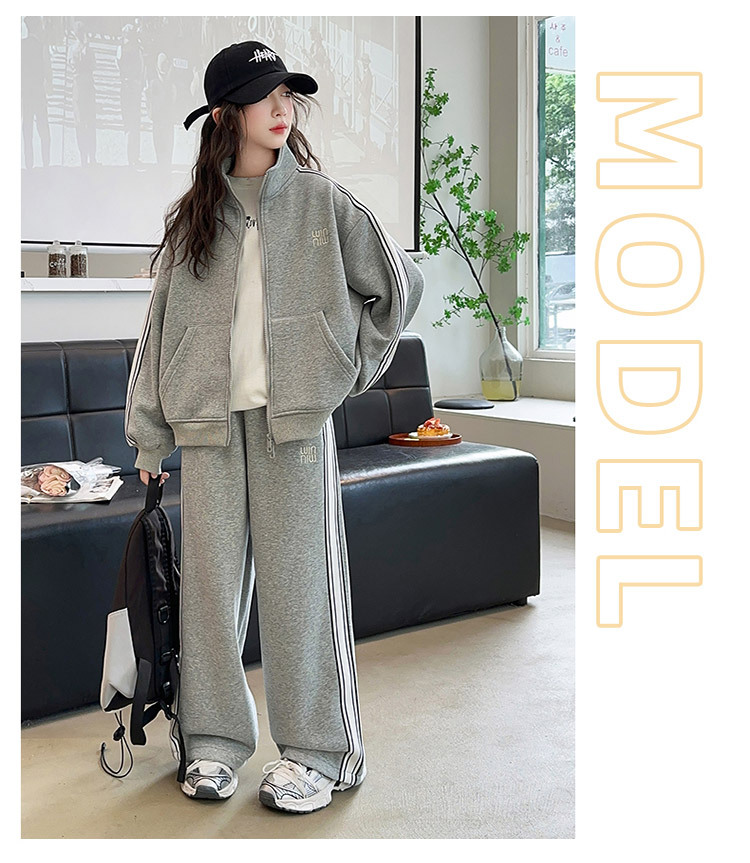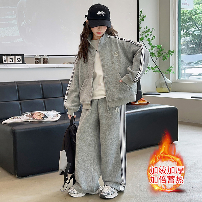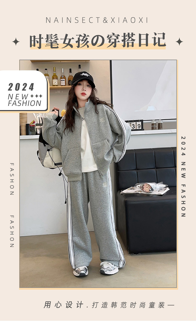 2024 년 가을 어린이 편지 스포츠 지퍼와 벨벳 세트 새로운 한국식 어린이 유행 올매치 서양식 투피스 세트