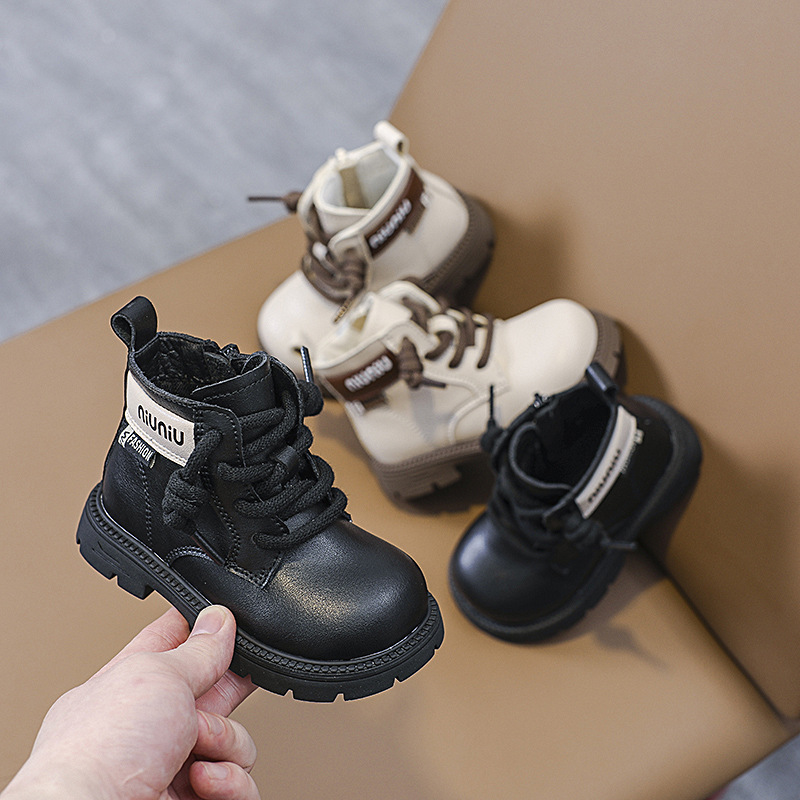가을과 겨울 어린이 마틴 부츠 영국 패션 알파벳 여성 부츠 어린이 올매치 편안한 소년 사이드 지퍼 가죽 부츠