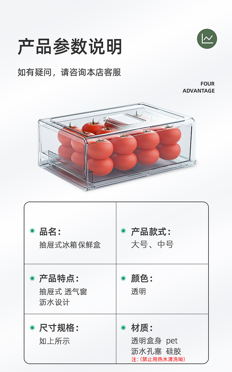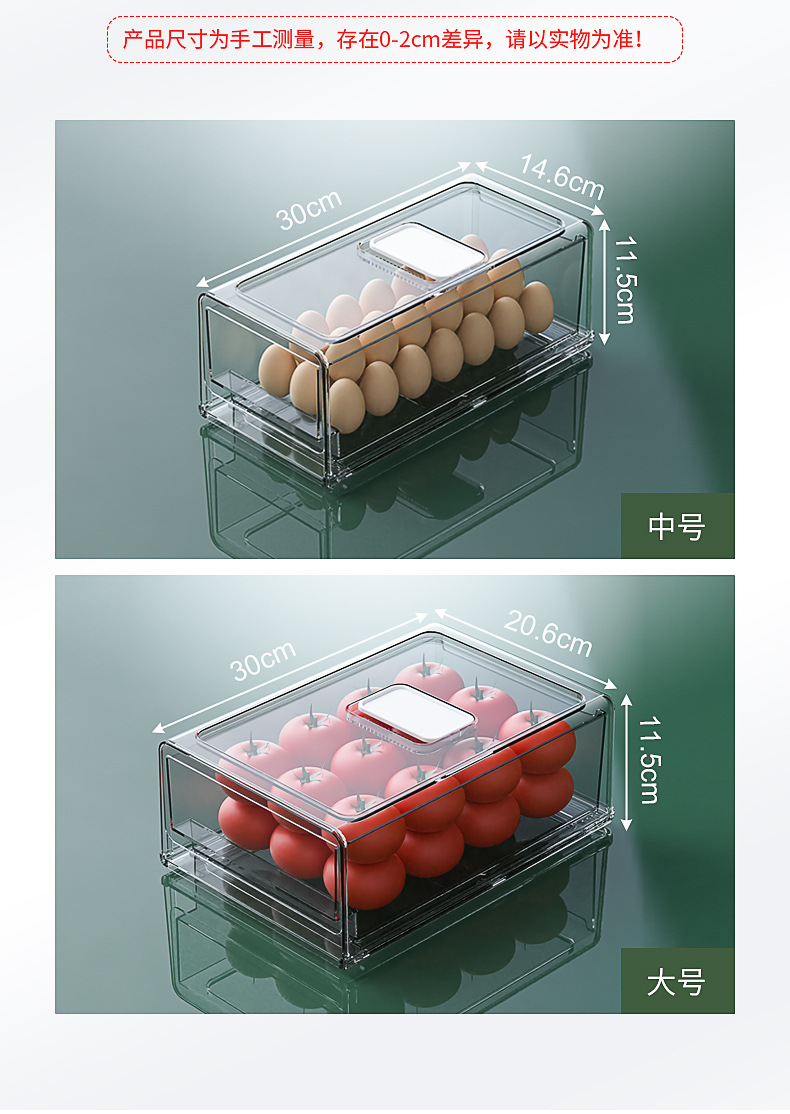 애완 동물 냉장고 신선한 보관 서랍 저장 상자 만두 야채 및 과일 냉동 배수 바구니 이중층 계란 상자 냉장고 서랍 상자