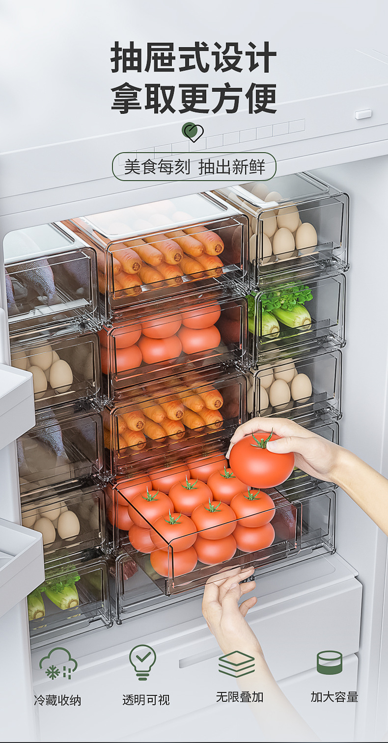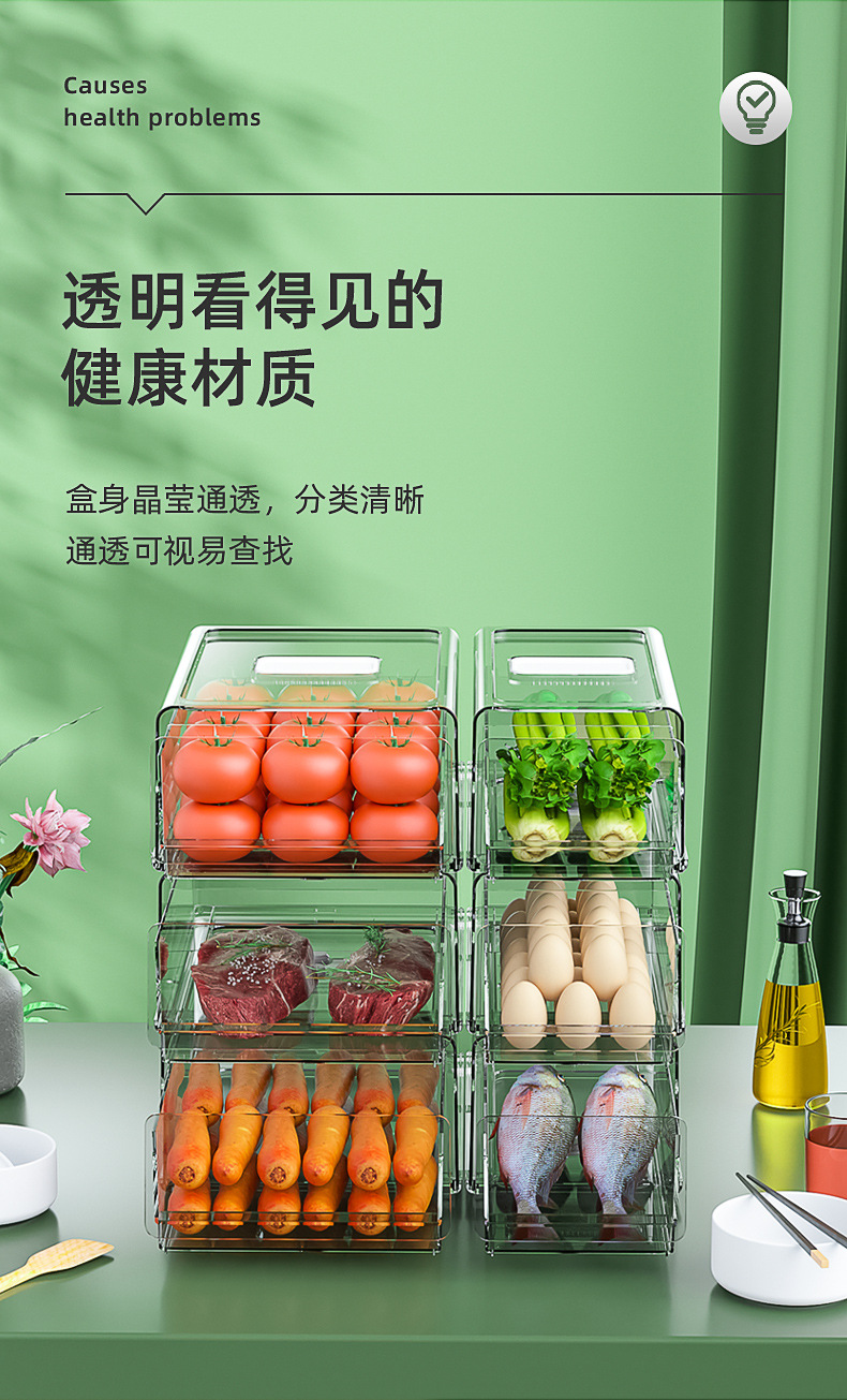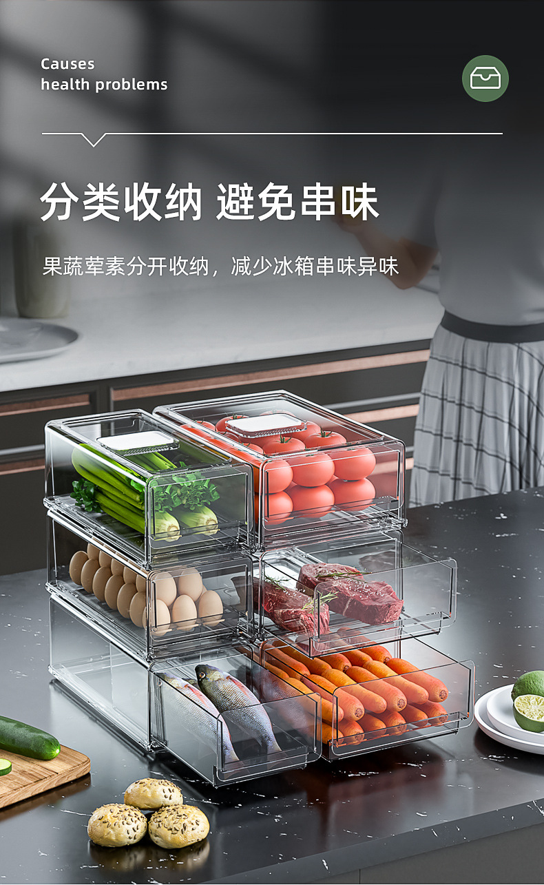 애완 동물 냉장고 신선한 보관 서랍 저장 상자 만두 야채 및 과일 냉동 배수 바구니 이중층 계란 상자 냉장고 서랍 상자스토어 가기
