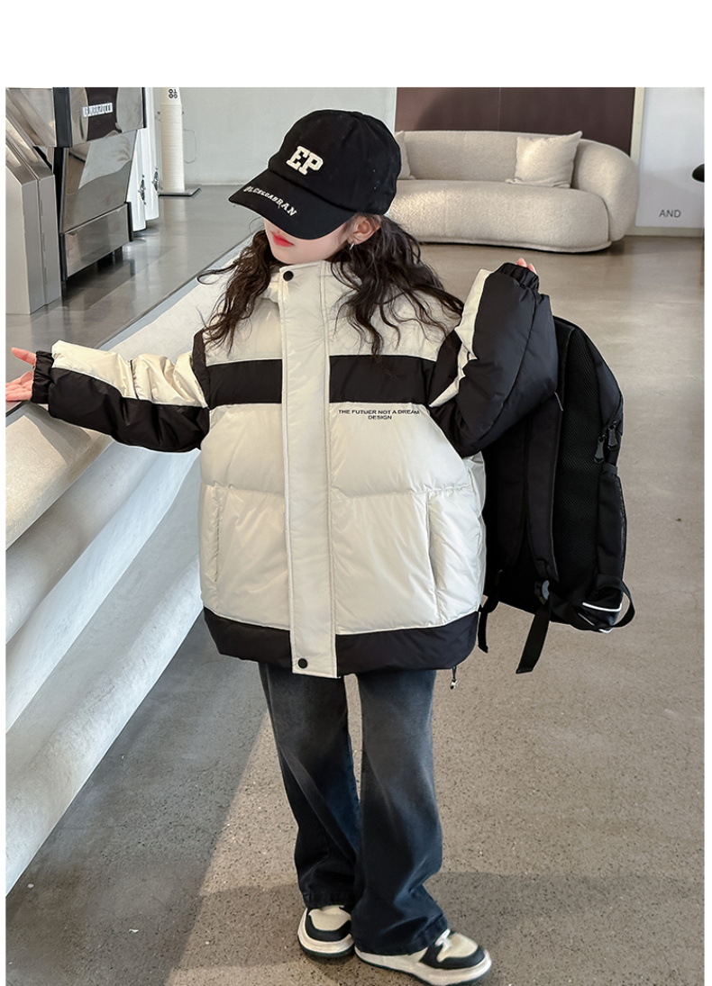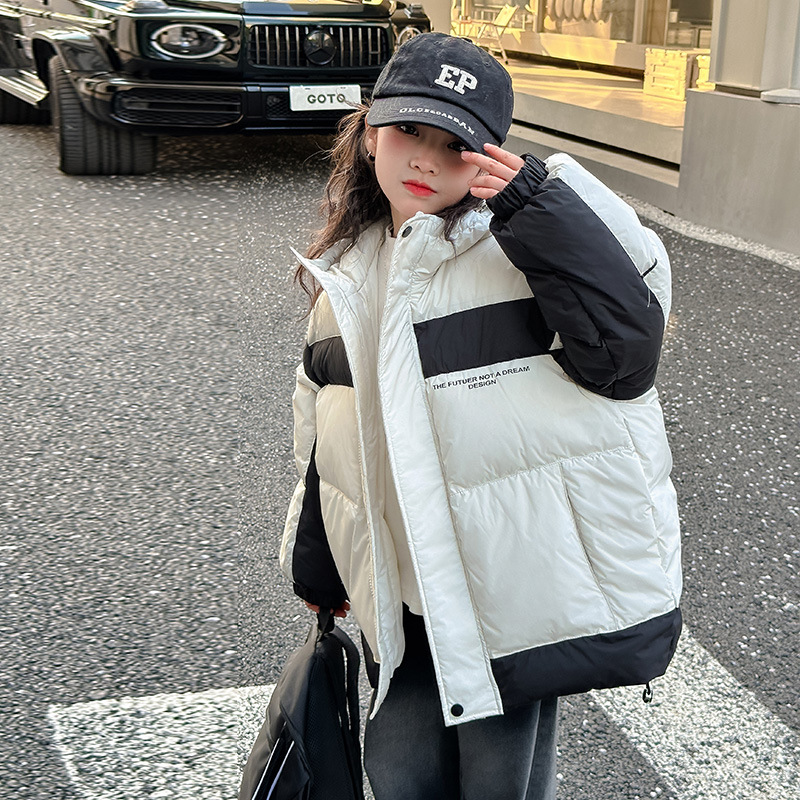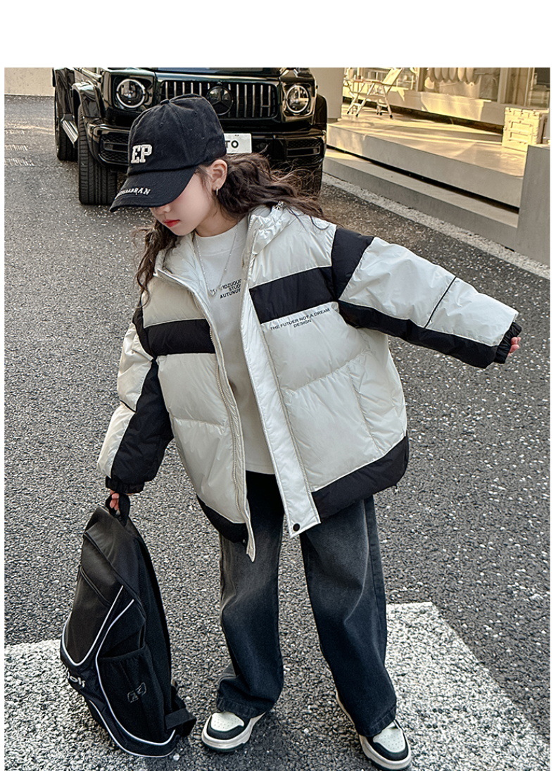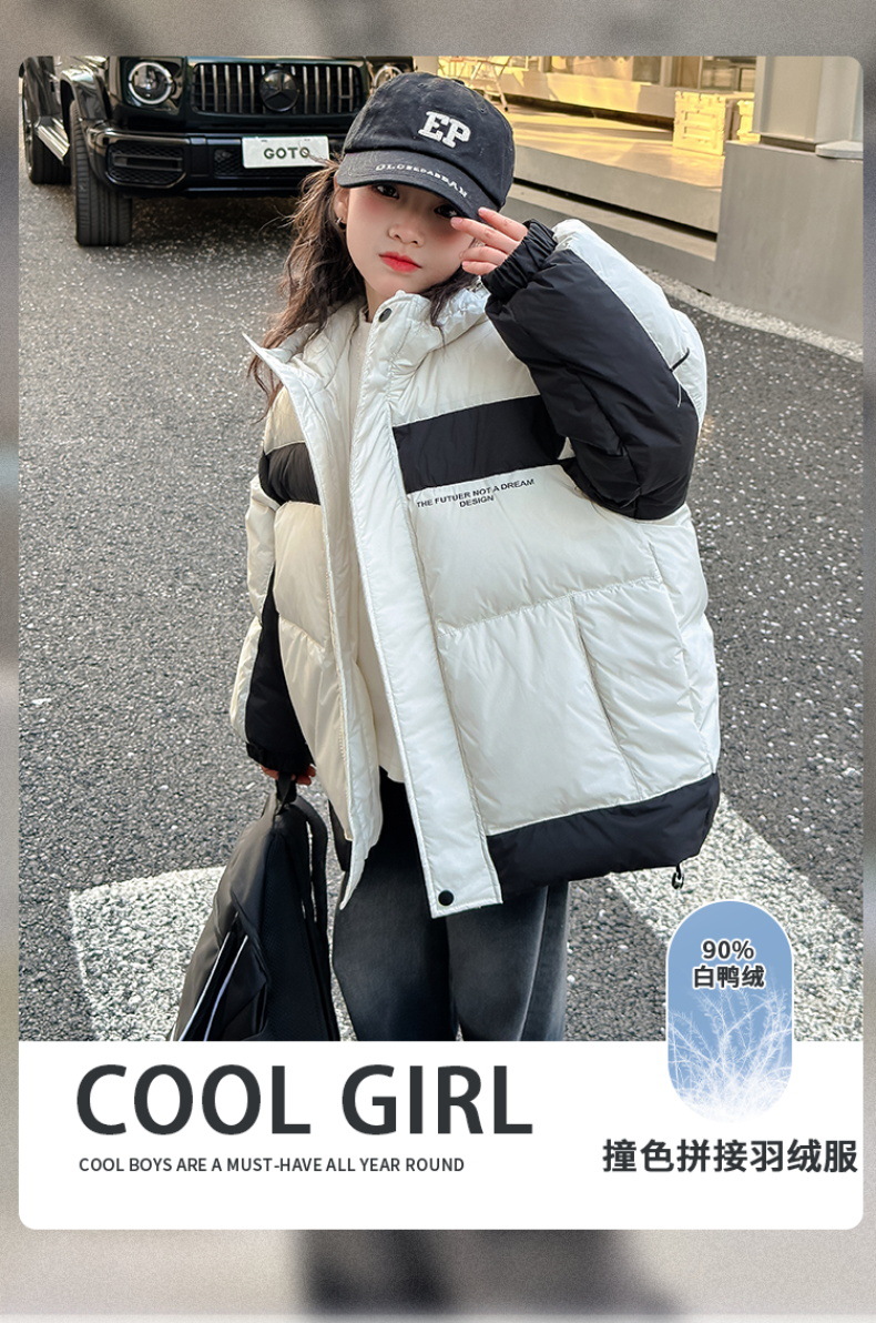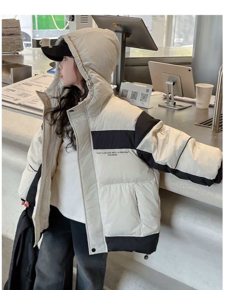 어린이 착용 어린이 다운 재킷 소녀 두꺼운 후드 재킷 90 소년 및 중년 어린이 겨울 빵 세트 흰 오리 다운스토어 가기