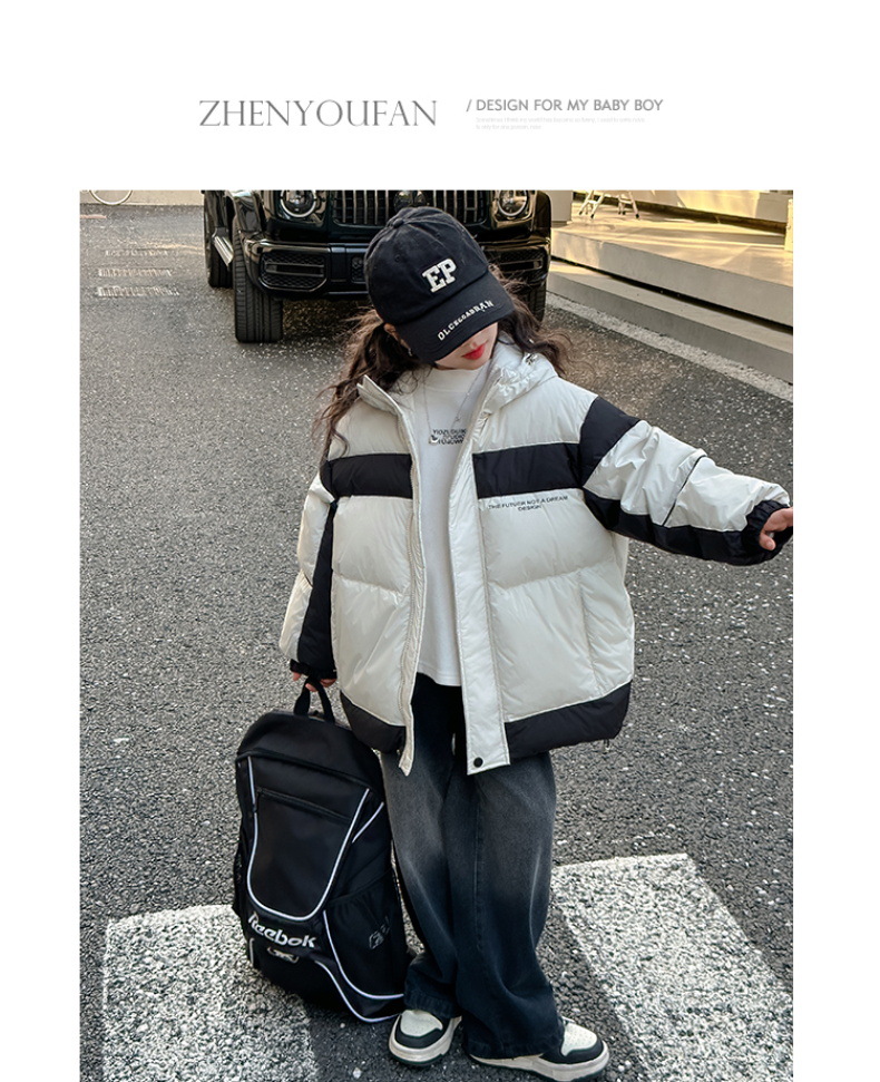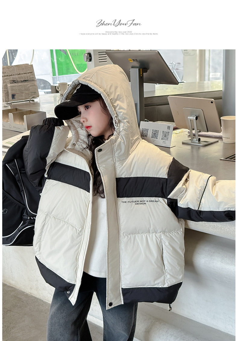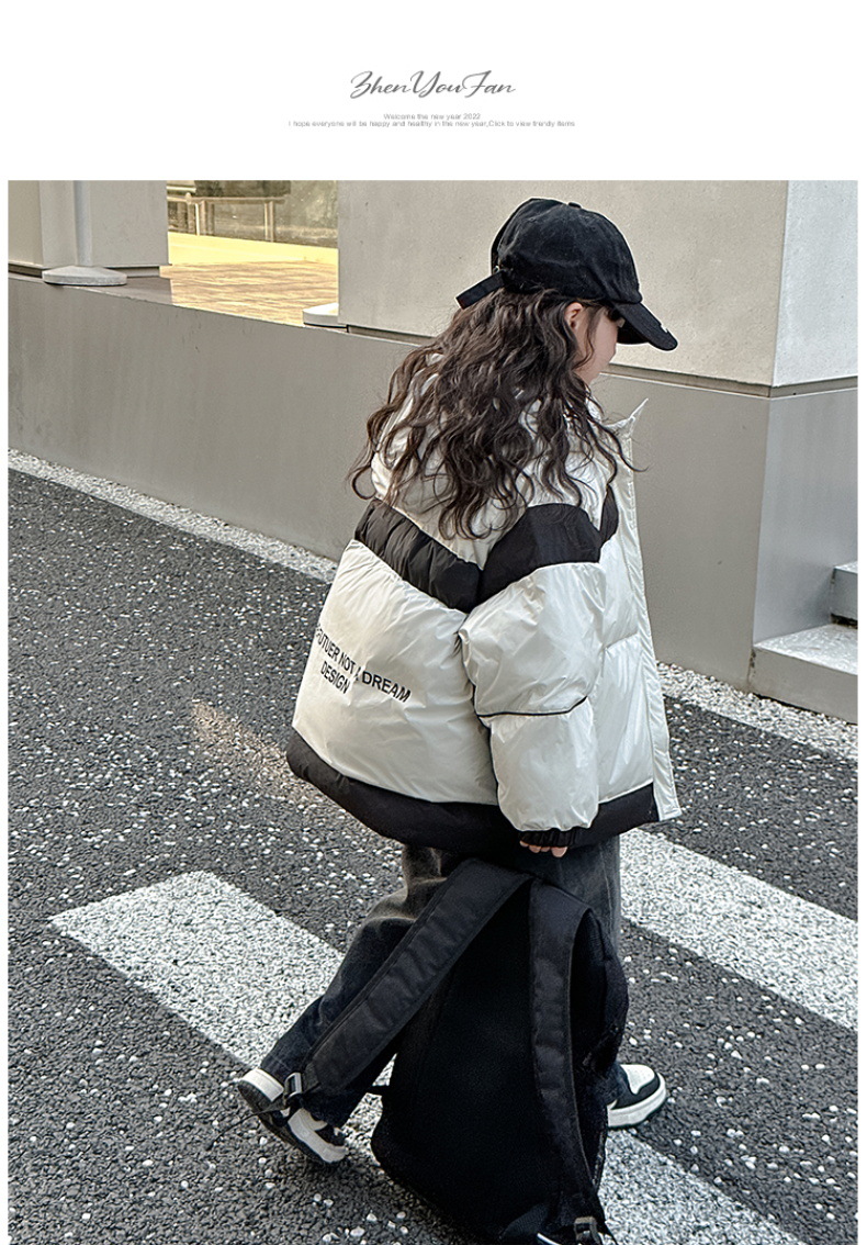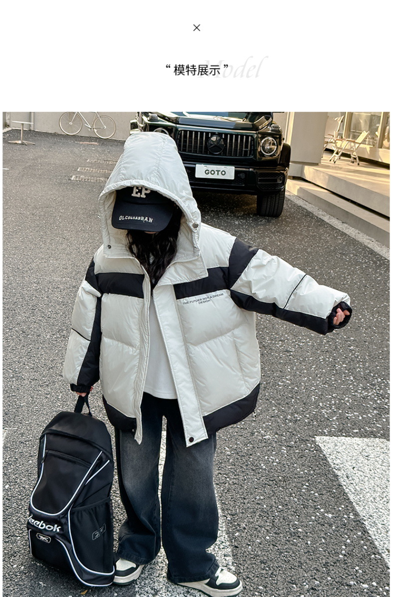 어린이 착용 어린이 다운 재킷 소녀 두꺼운 후드 재킷 90 소년 및 중년 어린이 겨울 빵 세트 흰 오리 다운스토어 가기