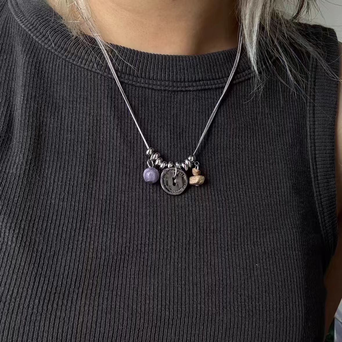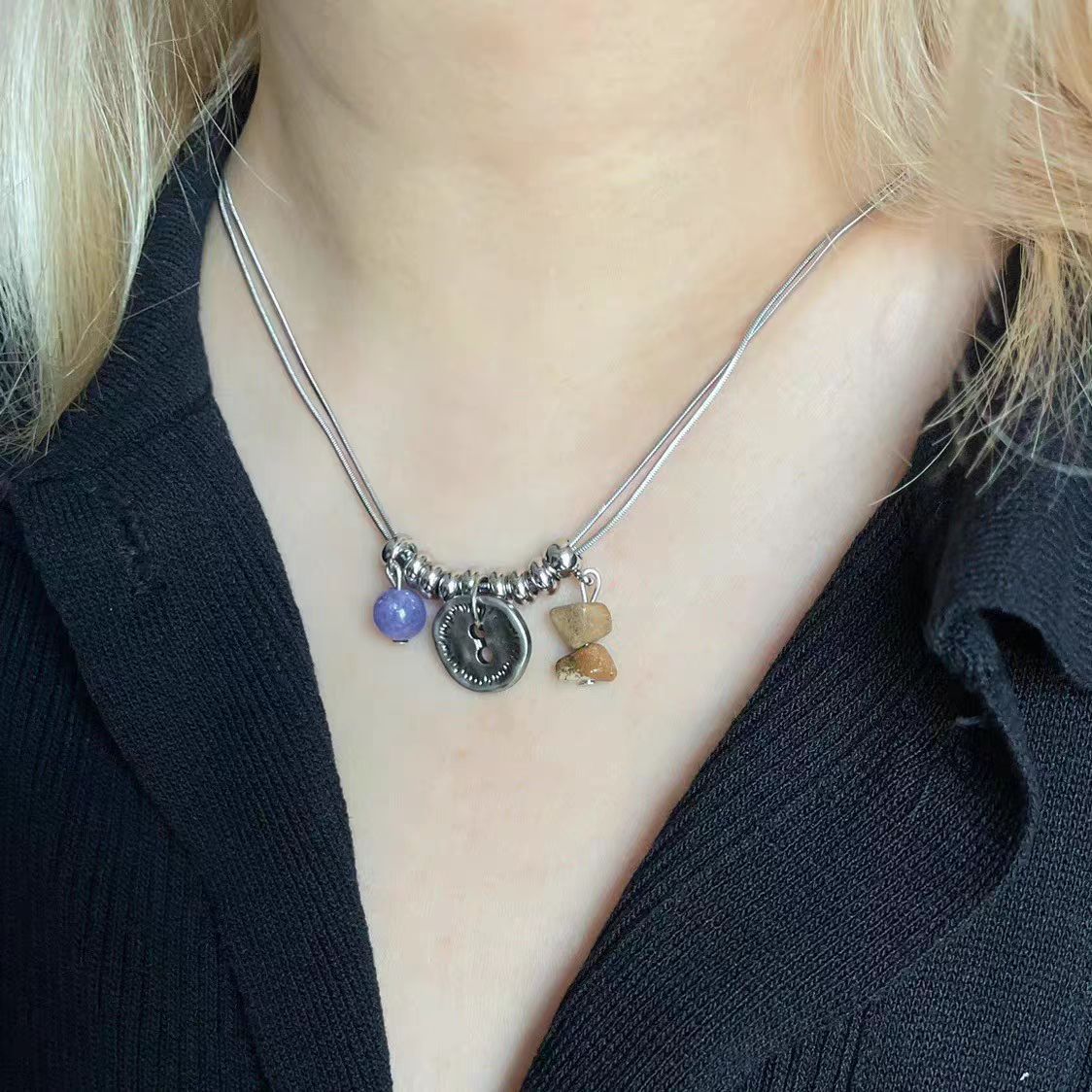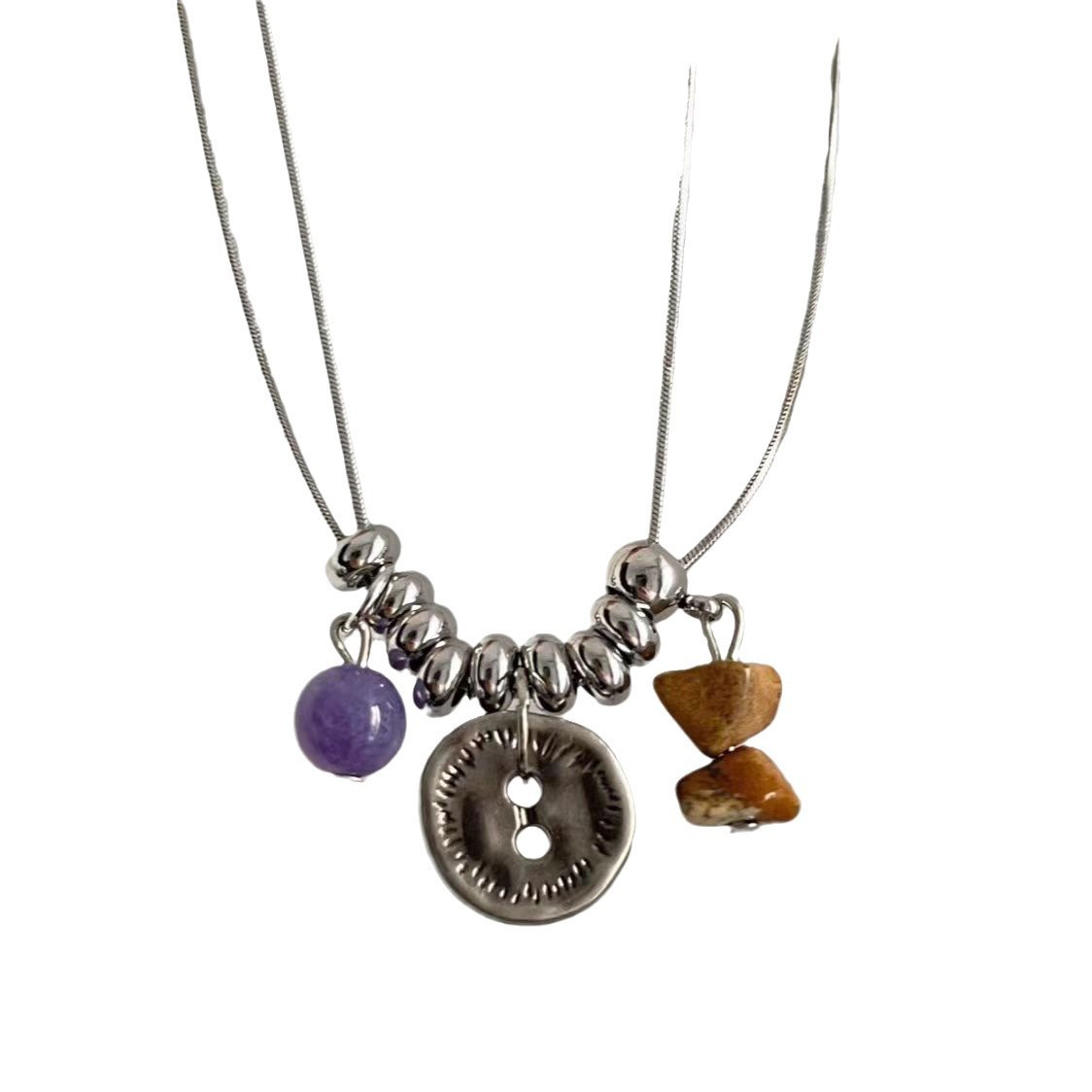 • 디스트레스드 스타일의 버튼 자갈 비즈 목걸이