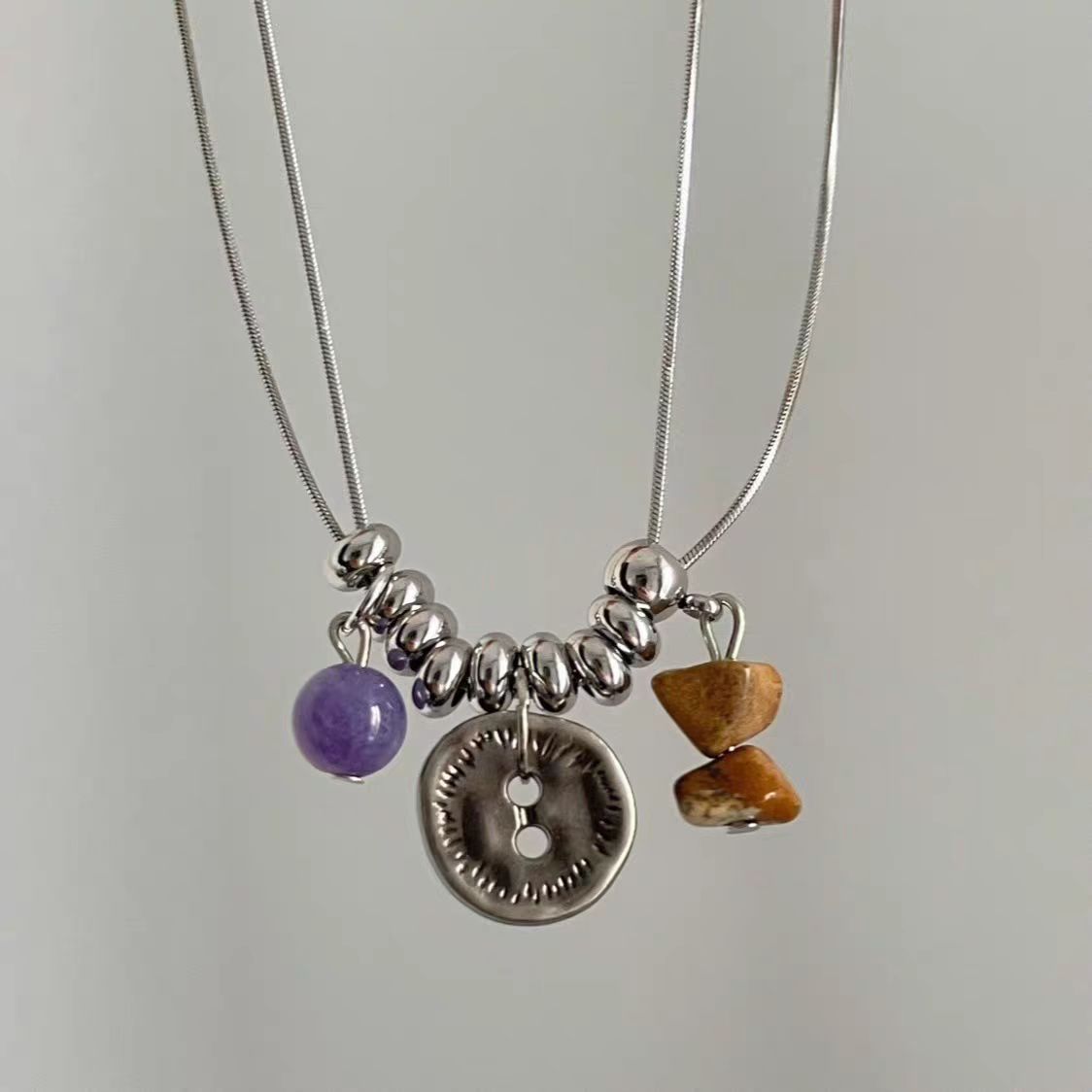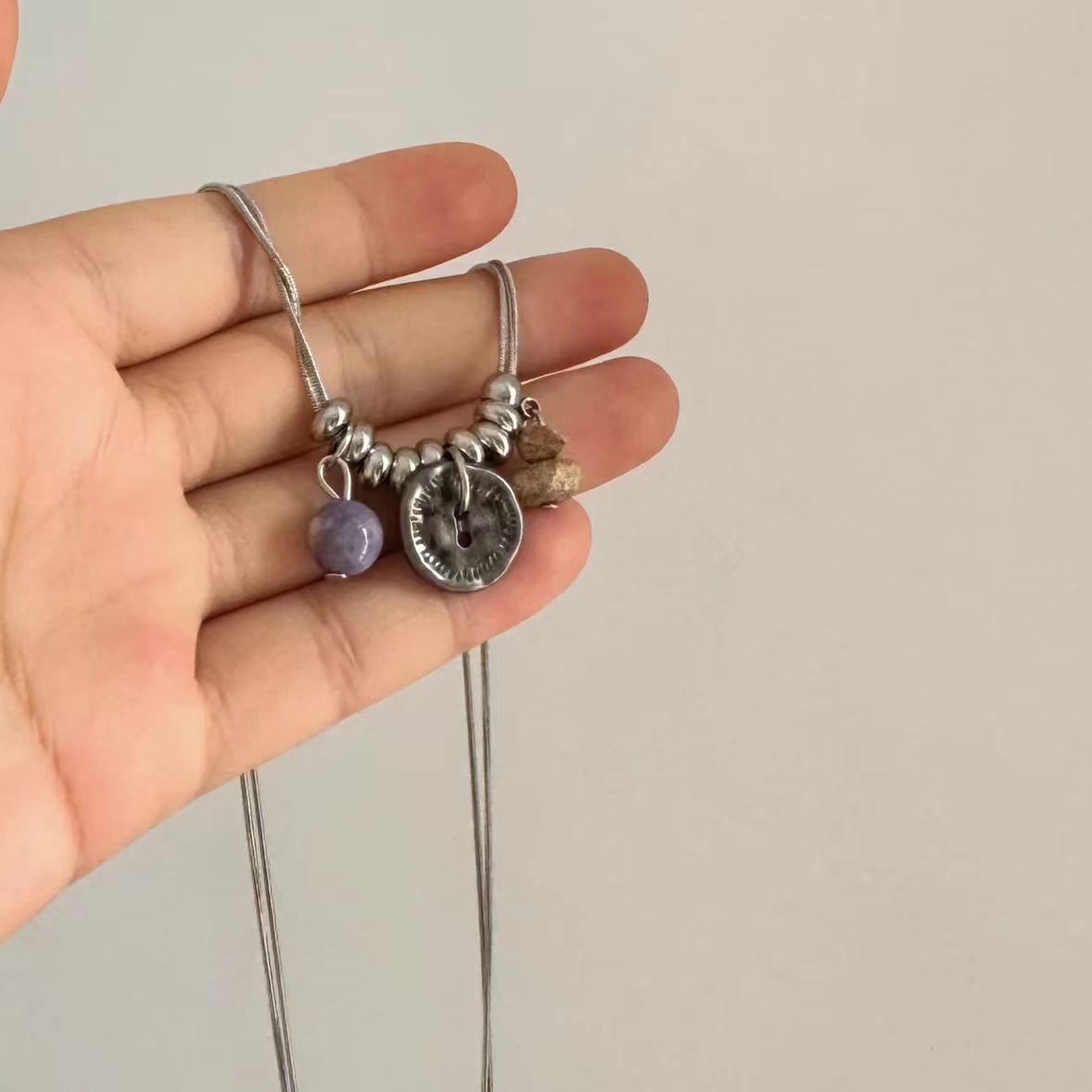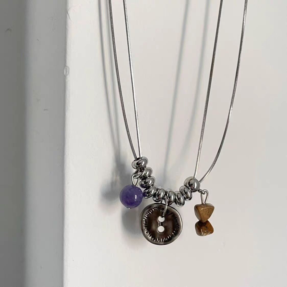 • 디스트레스드 스타일의 버튼 자갈 비즈 목걸이