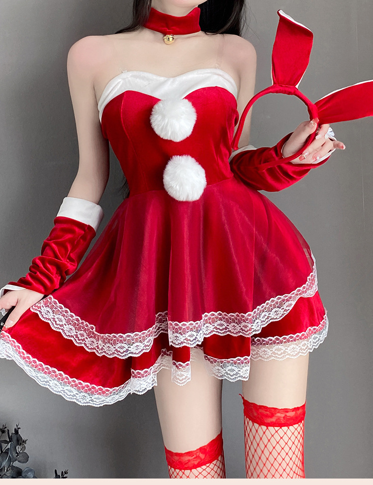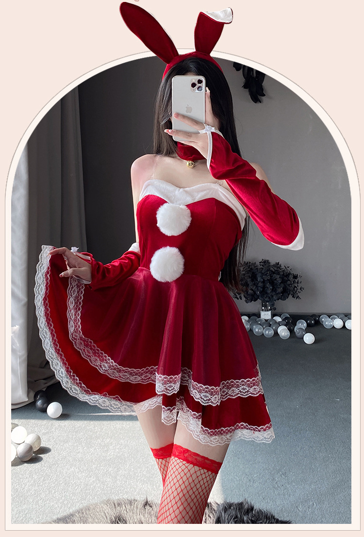 Lin Linting 섹시한 속옷 여성용 벨벳 스트랩리스 원피스 버니 코스 유니폼 섹시한 슬링 잠옷 1051