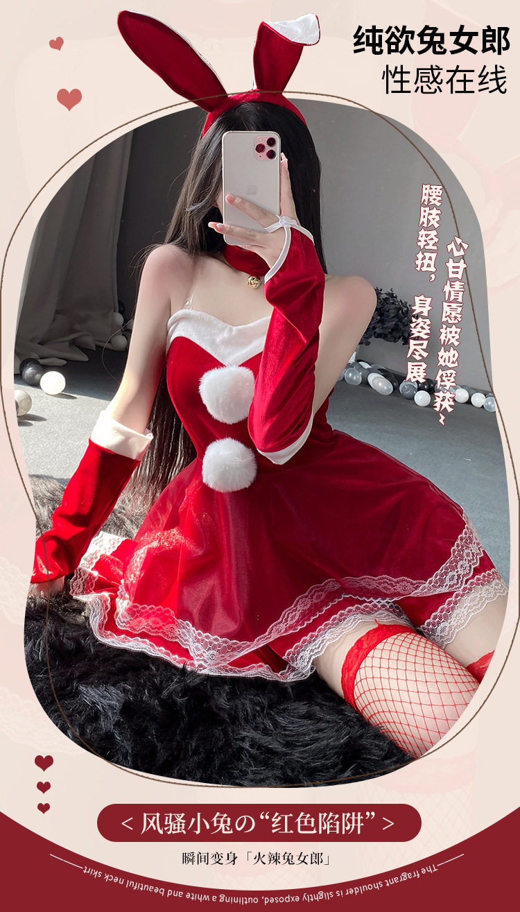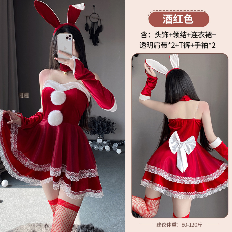 Lin Linting 섹시한 속옷 여성용 벨벳 스트랩리스 원피스 버니 코스 유니폼 섹시한 슬링 잠옷 1051스토어 가기