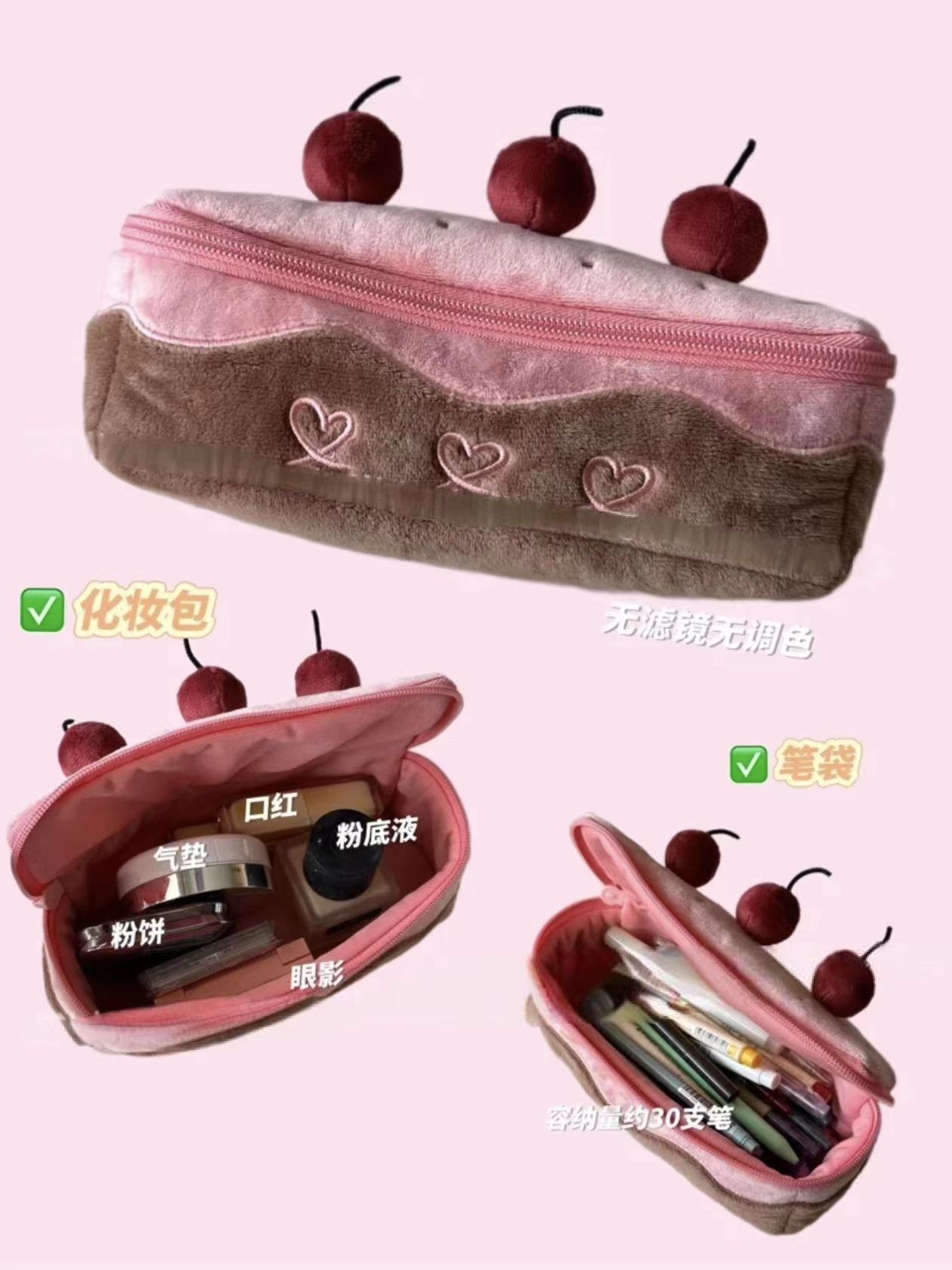 작은 빨간 책 같은 체리 케이크 연필 가방 학생 대용량 연필 케이스 문구 가방 귀여운 화장품 가방 보관 가방