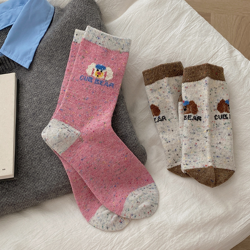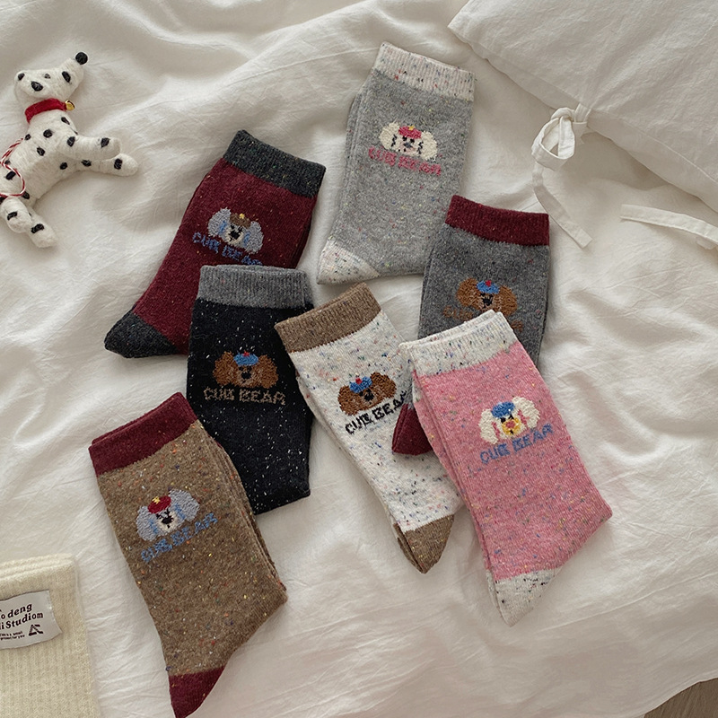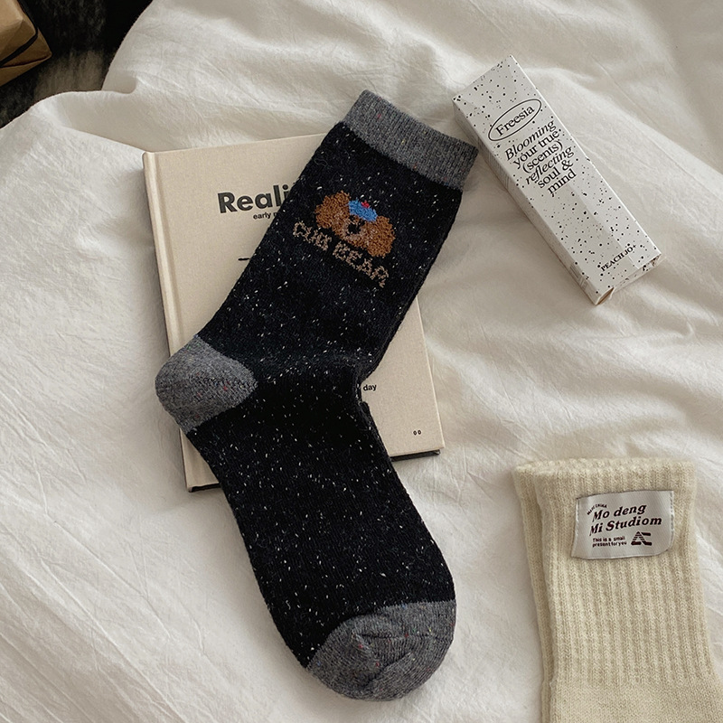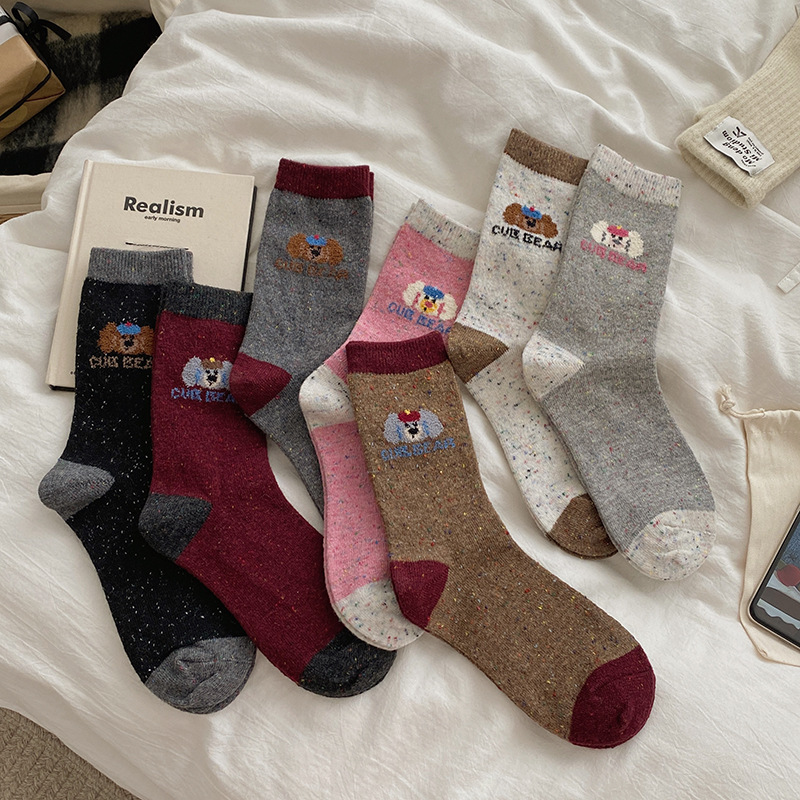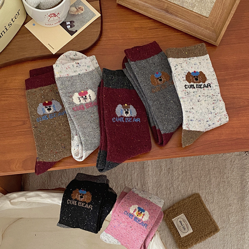 가을과 겨울 새로운 만화 편지 열 저장 여성 양말 두꺼운 따뜻한 냄비 원사 양털 양말 Maillard 강아지 양말