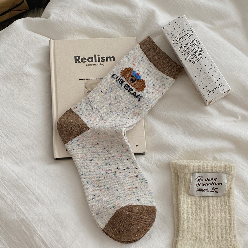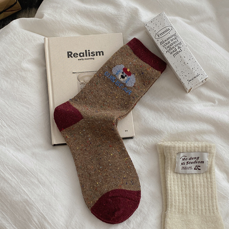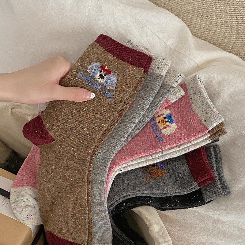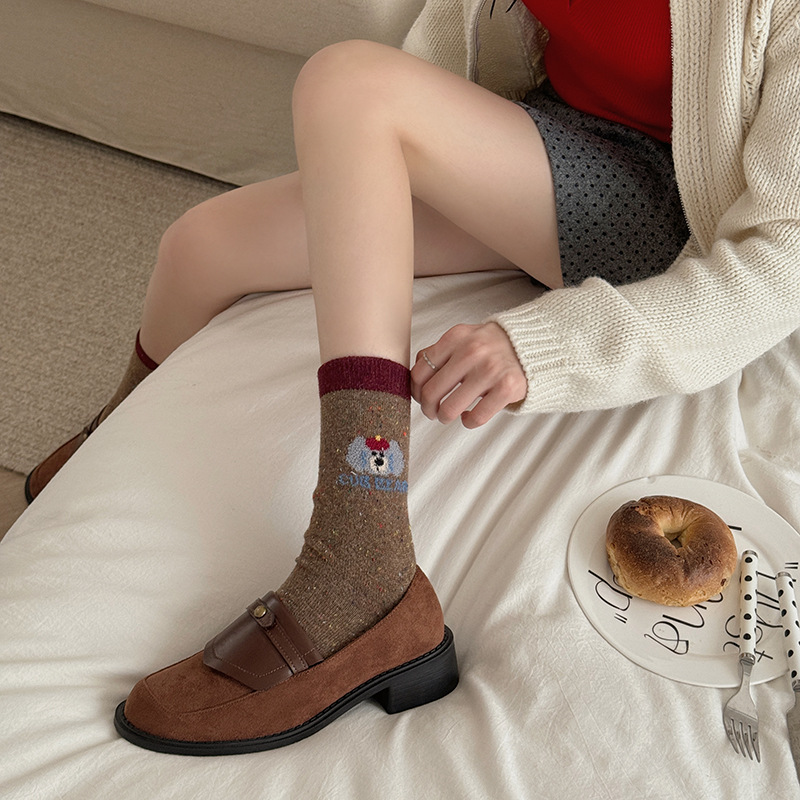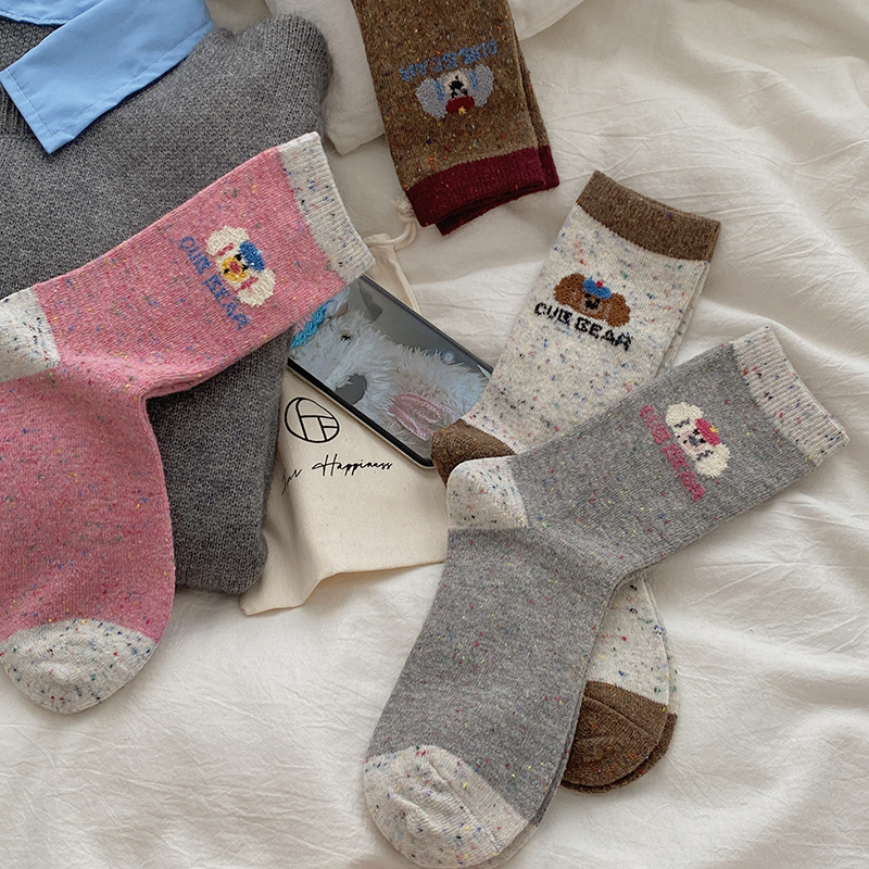 가을과 겨울 새로운 만화 편지 열 저장 여성 양말 두꺼운 따뜻한 냄비 원사 양털 양말 Maillard 강아지 양말