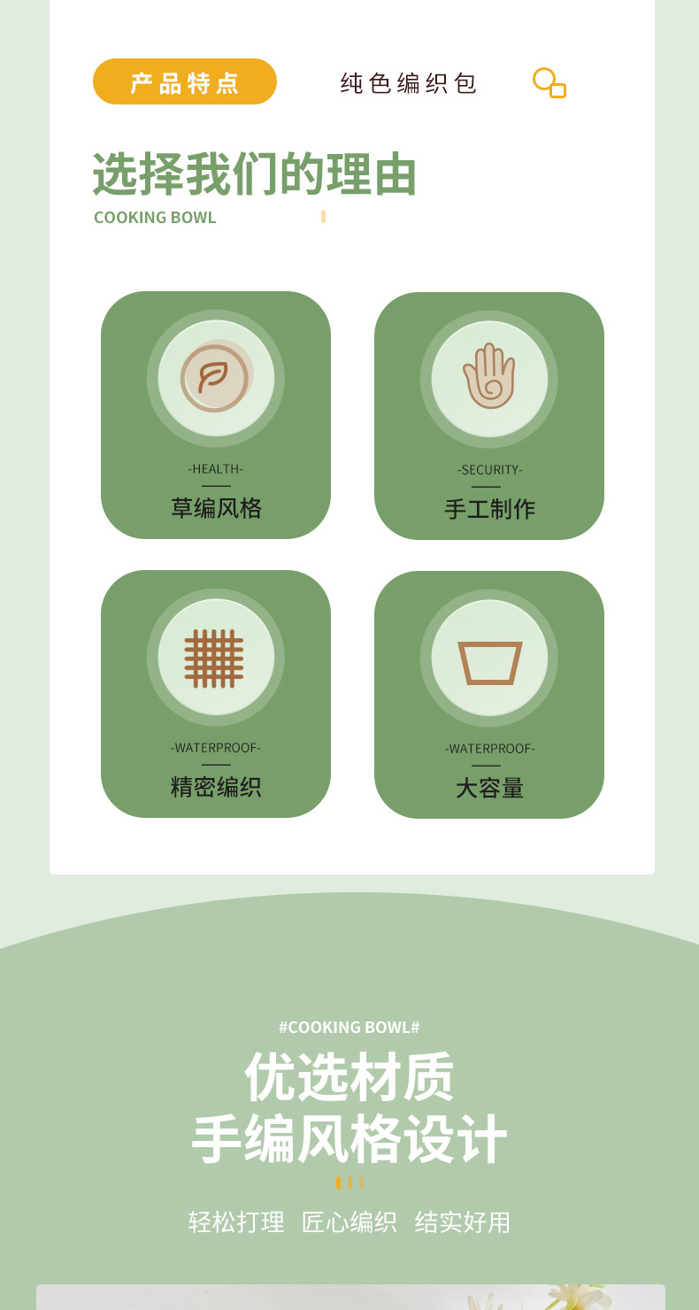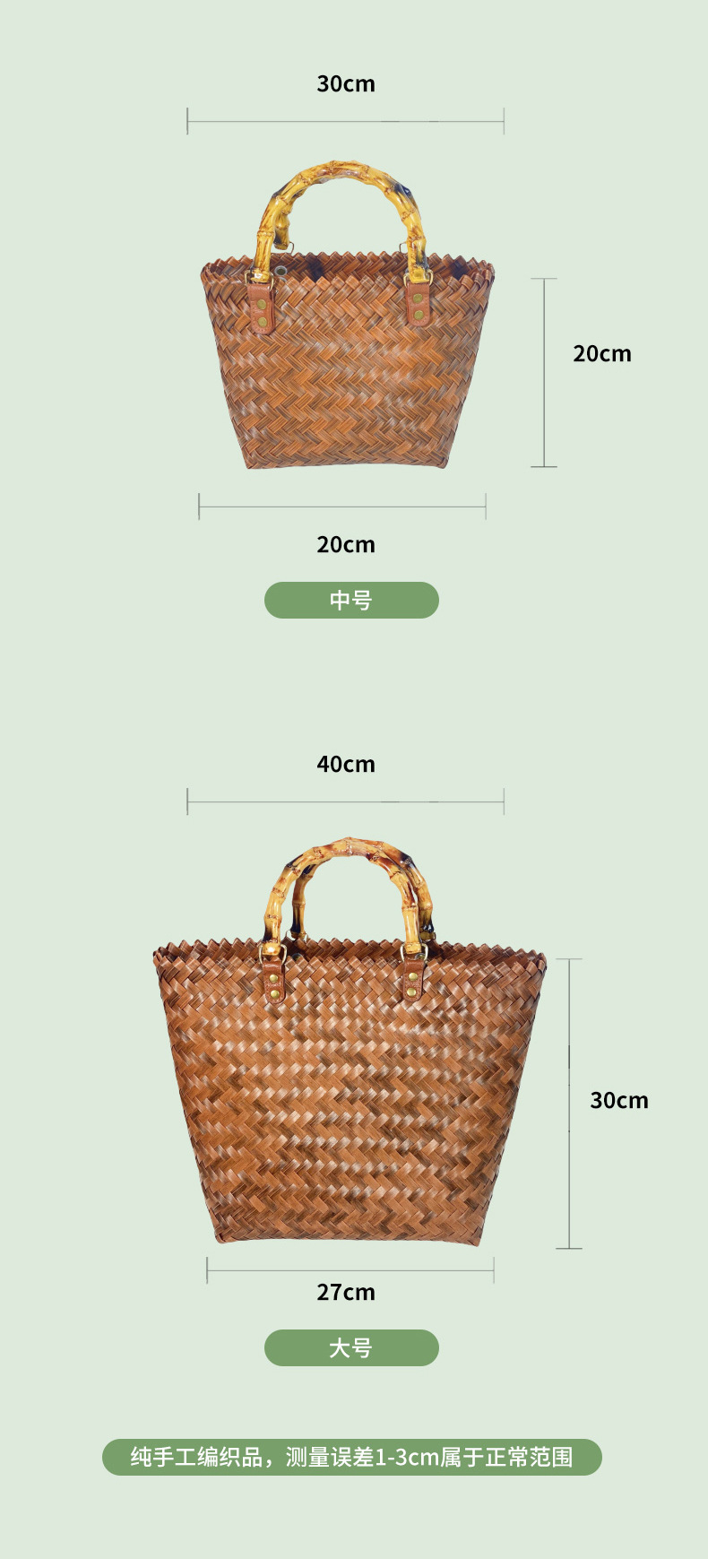 • 손으로 짠 대형 손잡이(긴 손잡이)