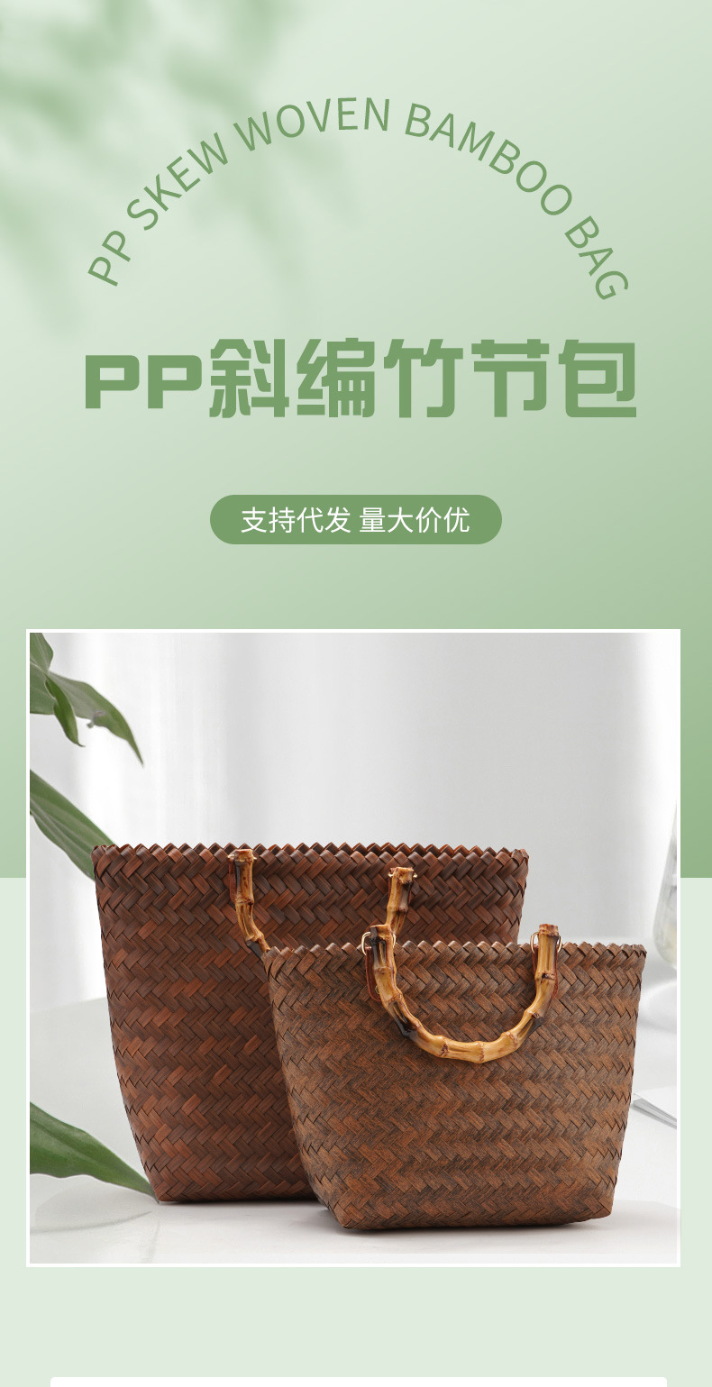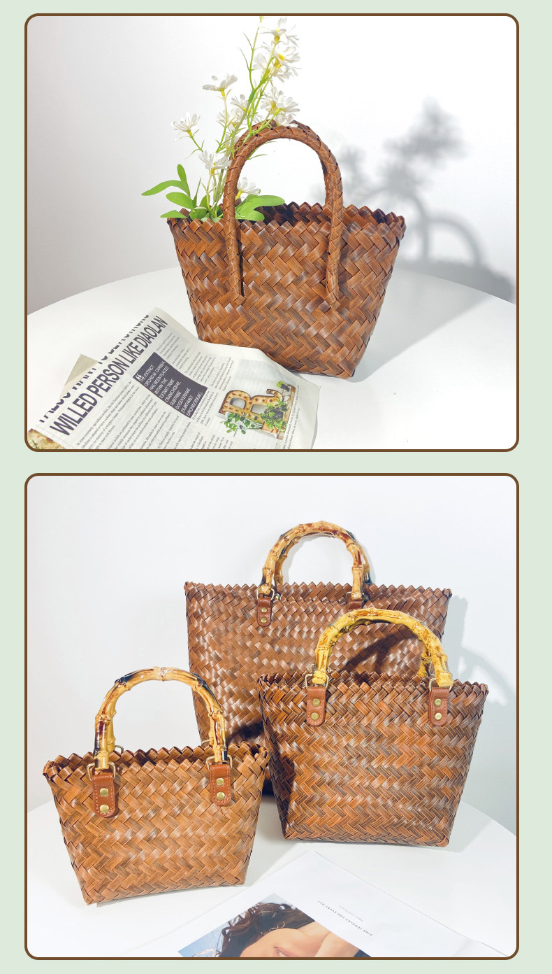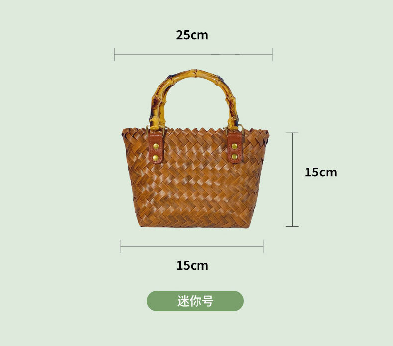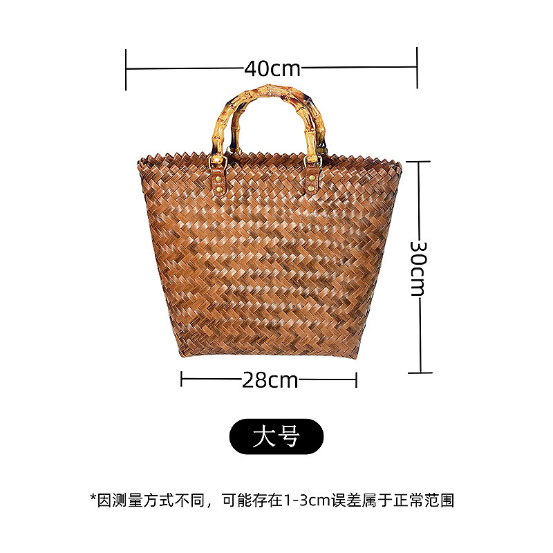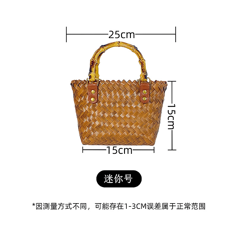 도매 다용도 출퇴근용 신상품 대나무 손잡이 밀짚 가방 여성 여름 레트로 핸드백 수제 대나무 토트백