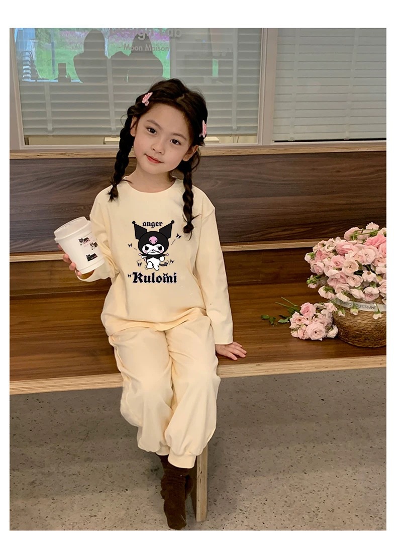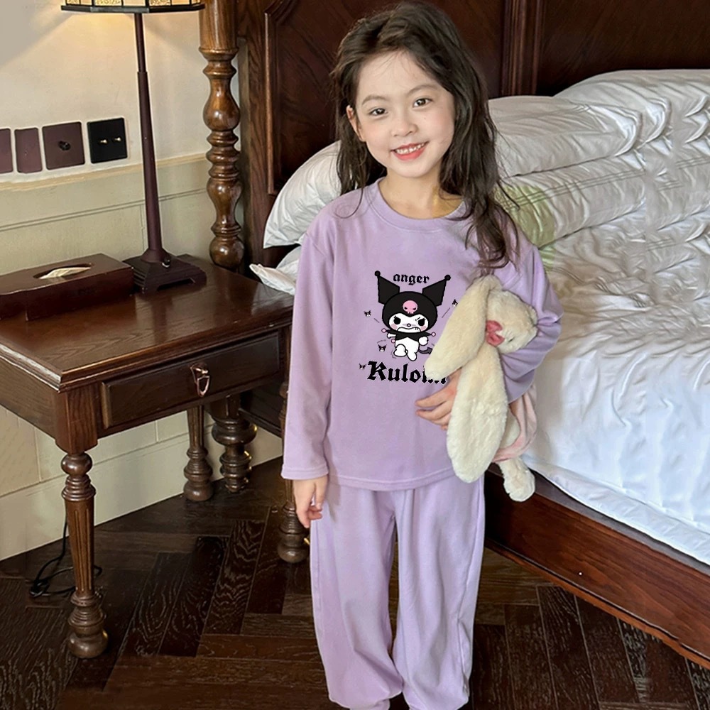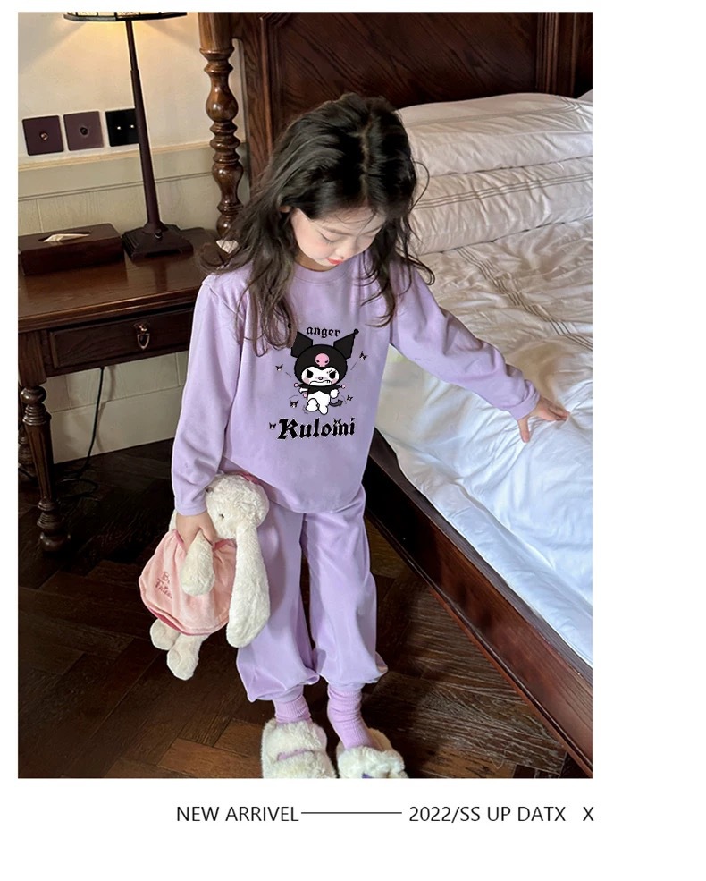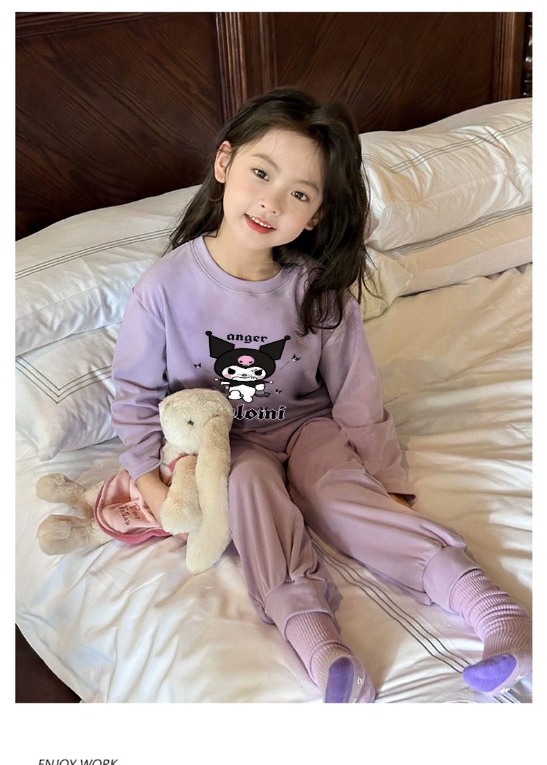 2024 새로운 DeRong 따뜻한 소녀의 긴팔 만화 바닥 셔츠 어린이의 새로운 잠옷 만화 캐주얼 투피스 세트