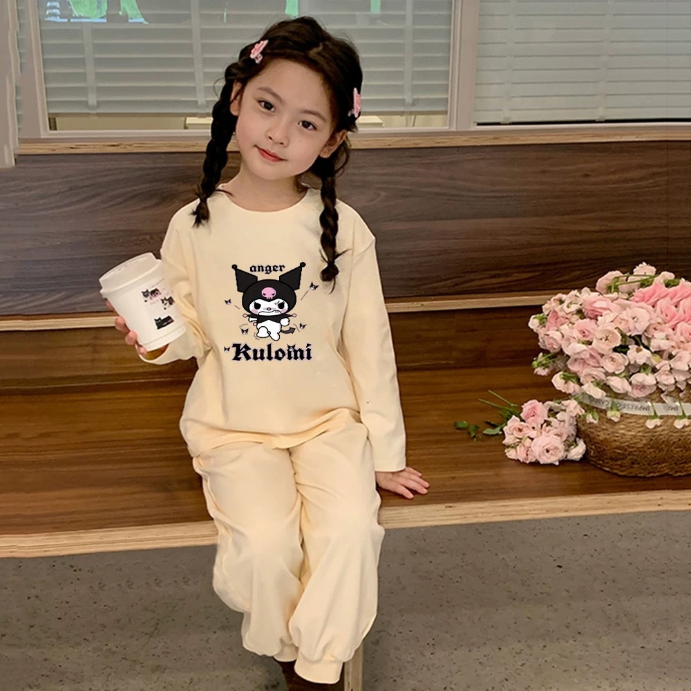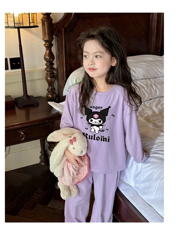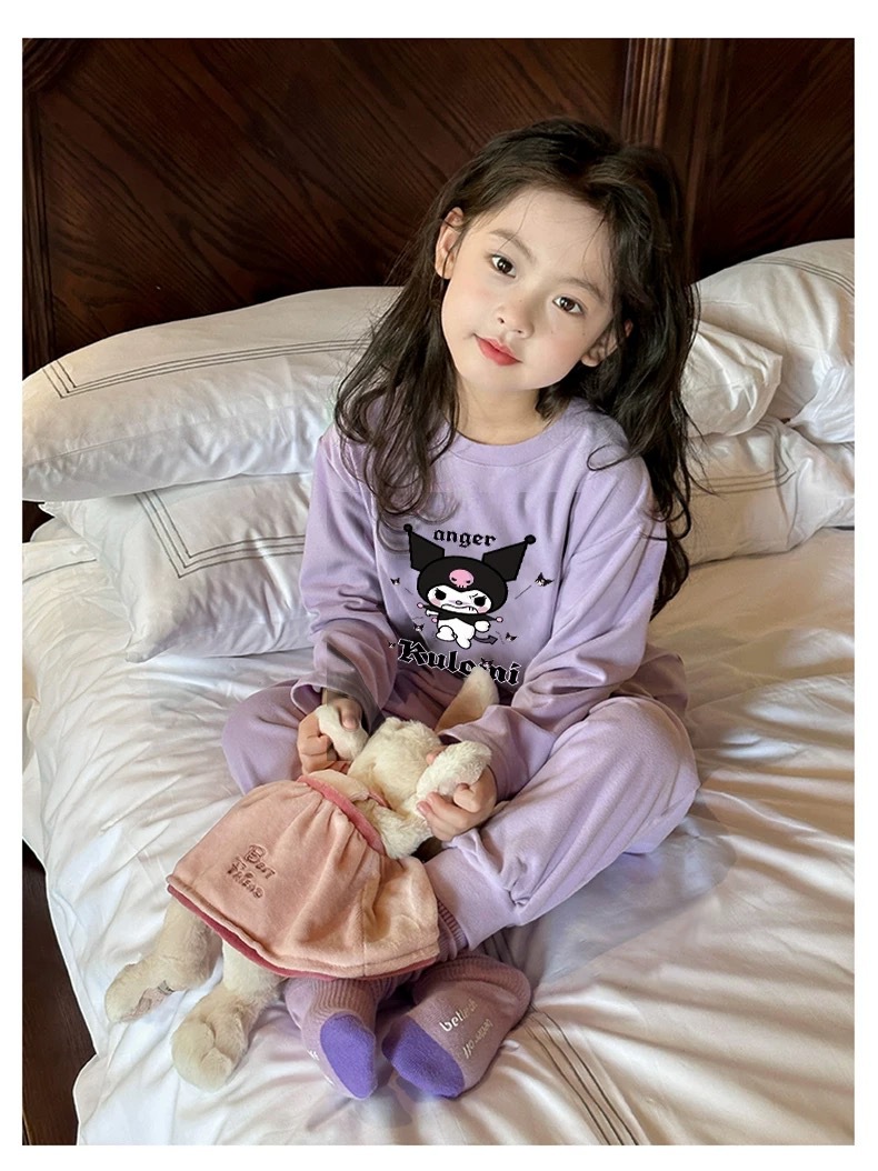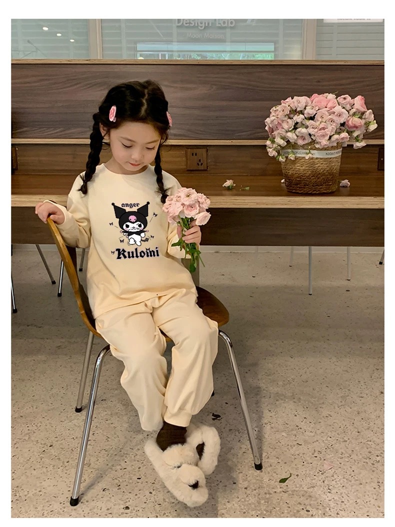 2024 새로운 DeRong 따뜻한 소녀의 긴팔 만화 바닥 셔츠 어린이의 새로운 잠옷 만화 캐주얼 투피스 세트