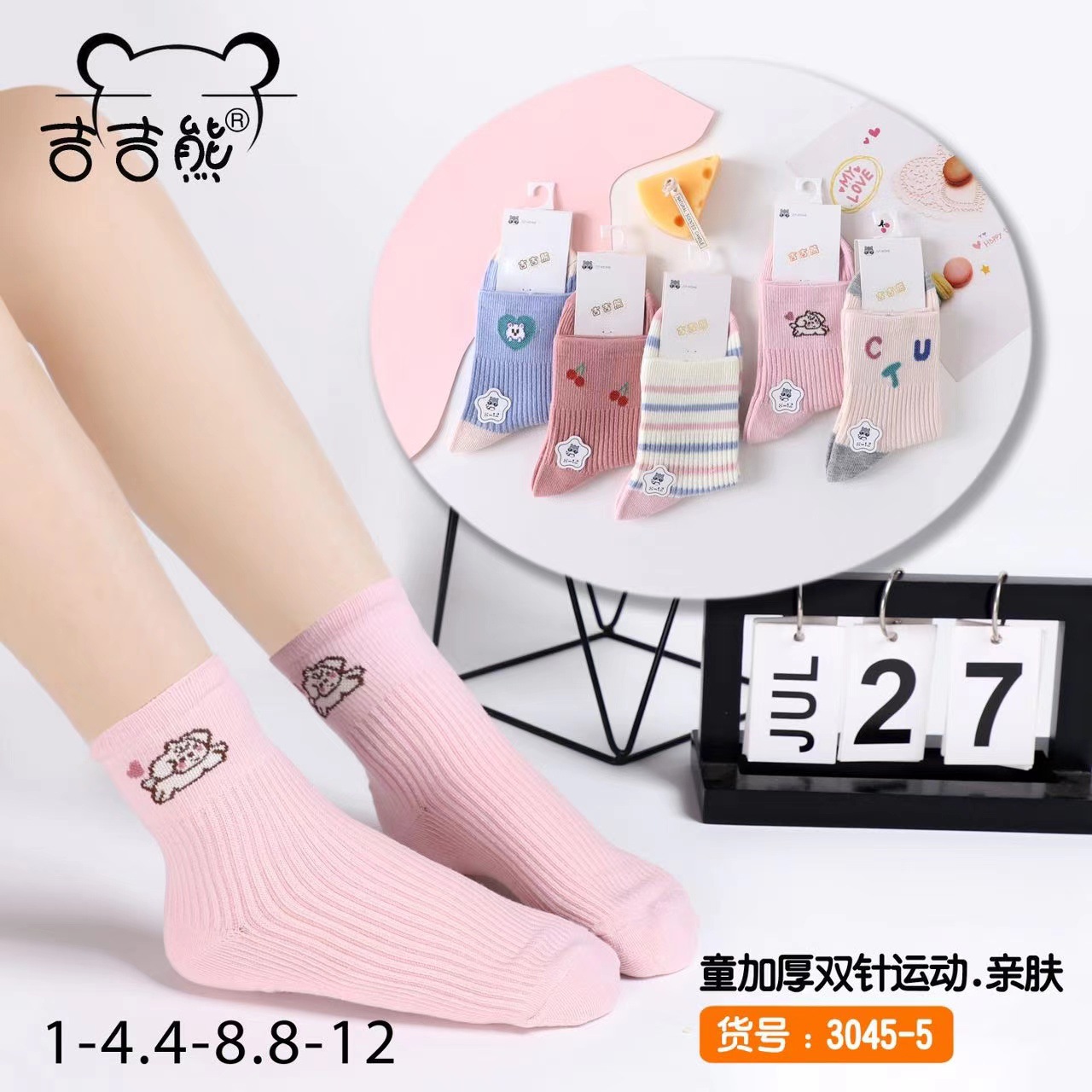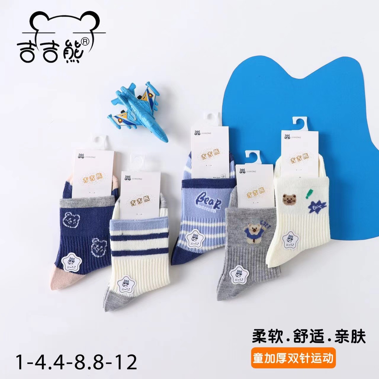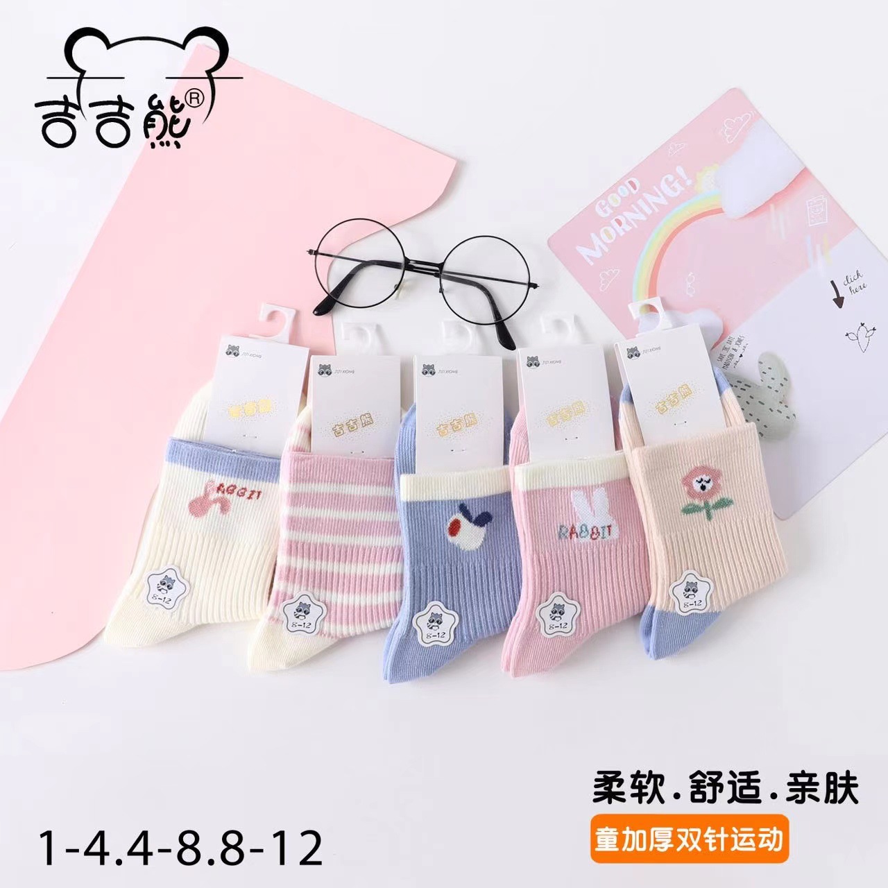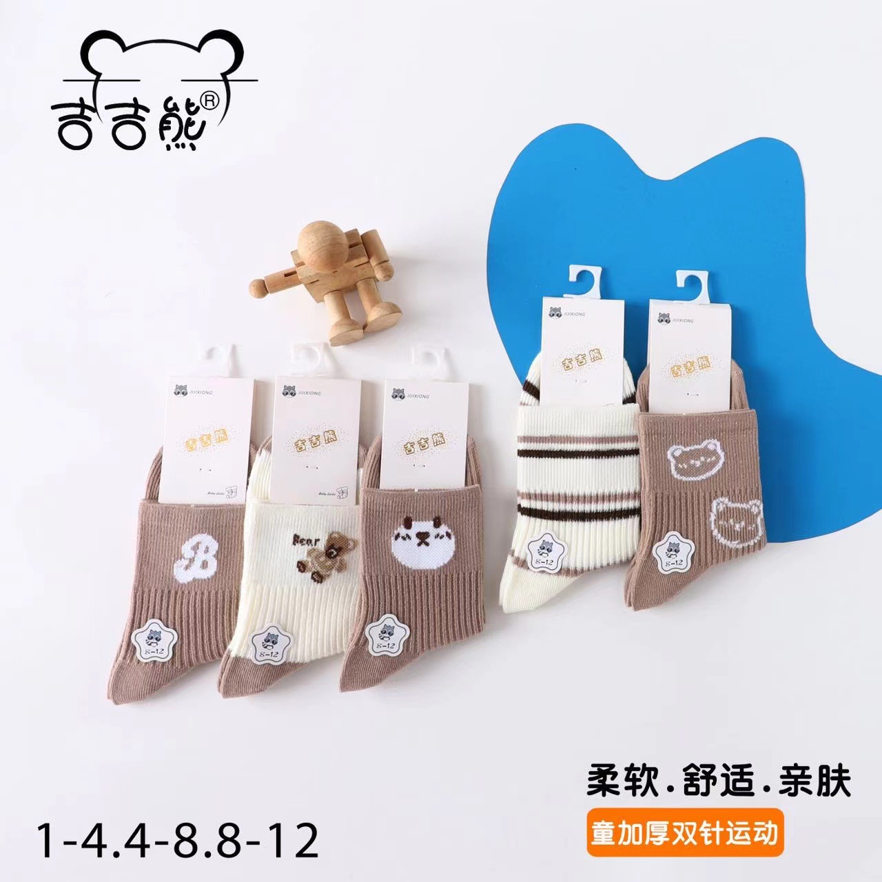 가을과 겨울 두꺼운 어린이 양말 재고 실행 도매 튜브 모조 더블 바늘 귀여운 컬러 만화 아동면 양말스토어 가기