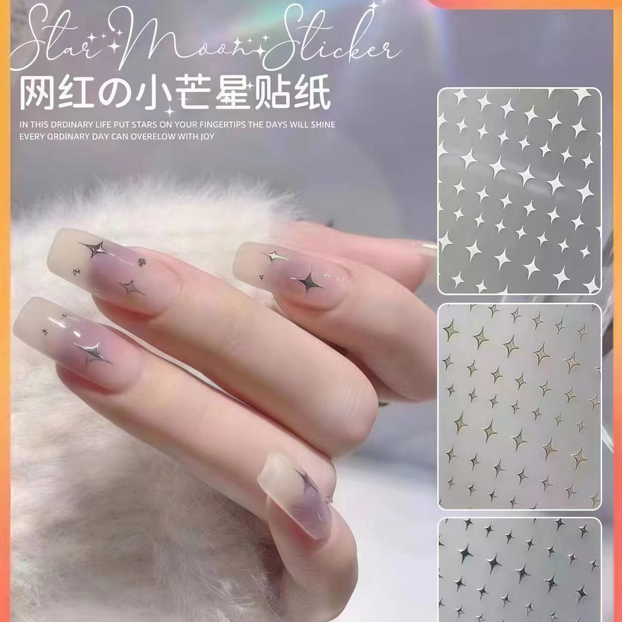 네일 아트 스티커 플래시 라이트 럭셔리 스타 스티커 고급 센스 골드 및 실버 흑백 스타 네일 백 접착 스티커 장식스토어 가기