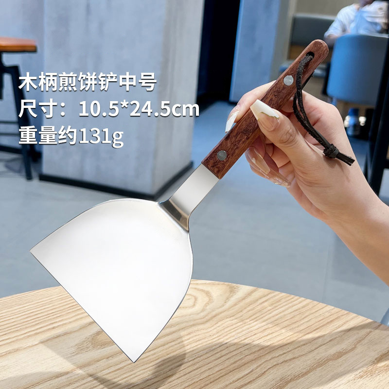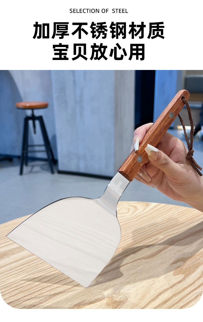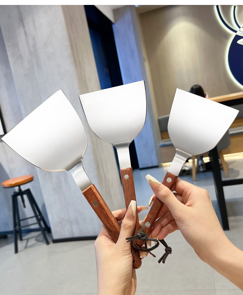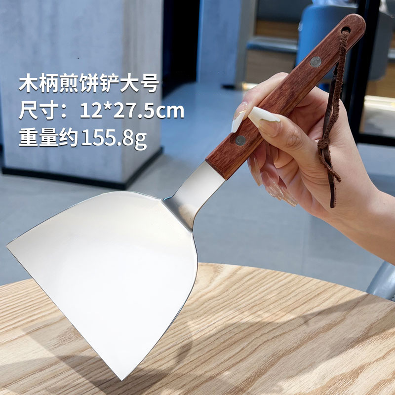 스테인레스 스틸 요리 삽 가정용 주방 스테이크 삽 두꺼운 나무 손잡이 안티 스케일 피자 삽 상업용 Teppanyaki 삽