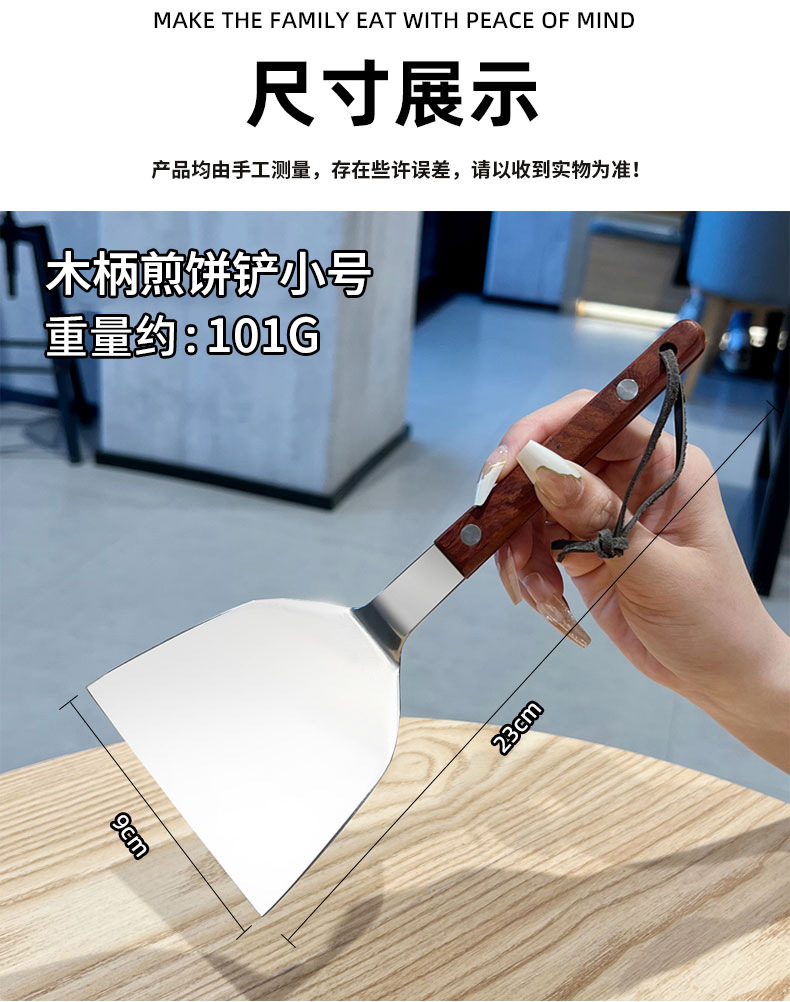 스테인레스 스틸 요리 삽 가정용 주방 스테이크 삽 두꺼운 나무 손잡이 안티 스케일 피자 삽 상업용 Teppanyaki 삽스토어 가기