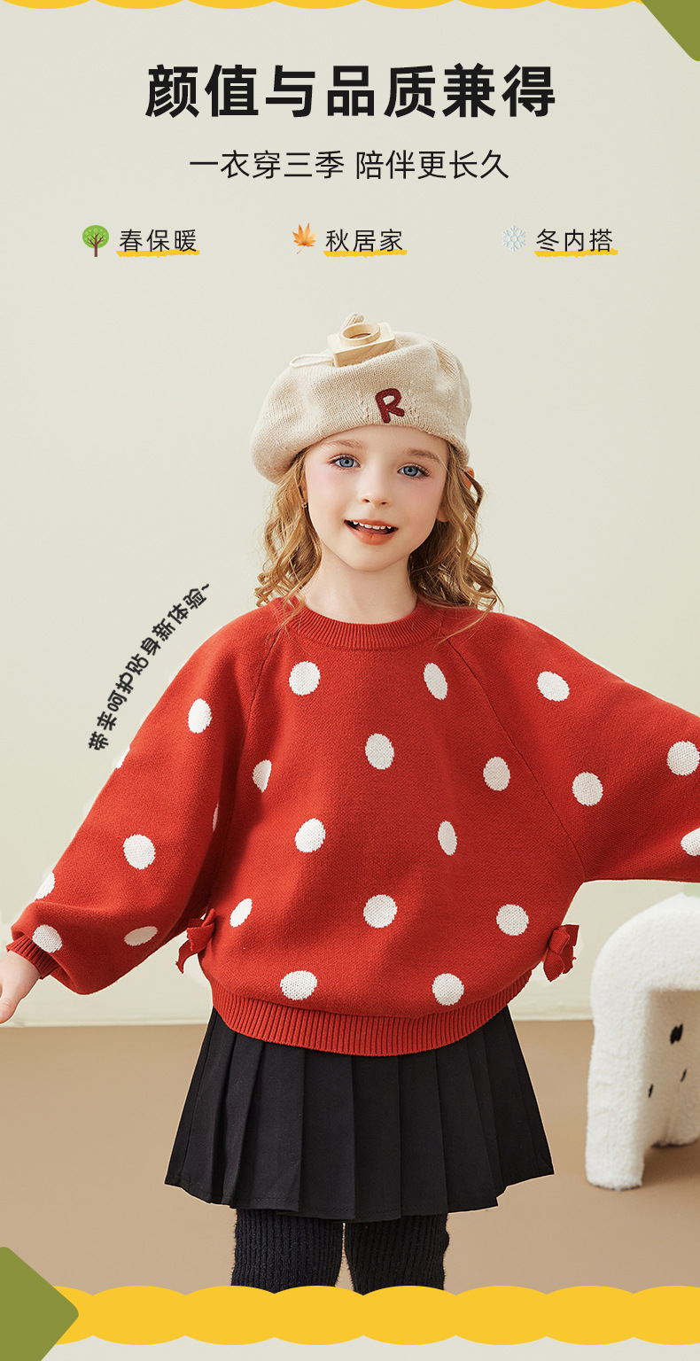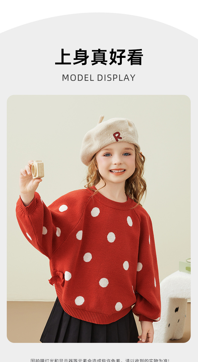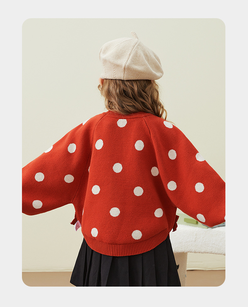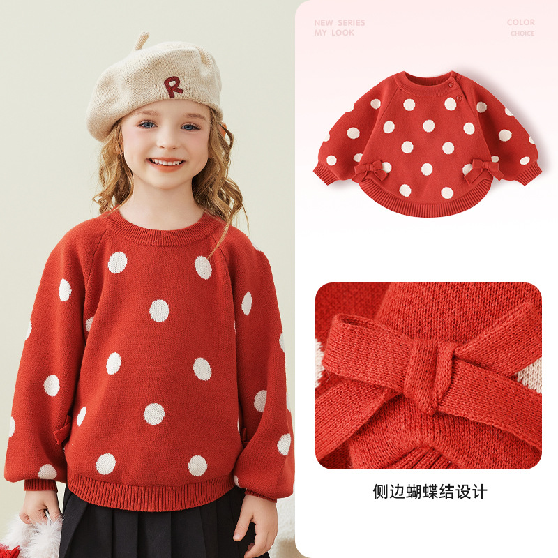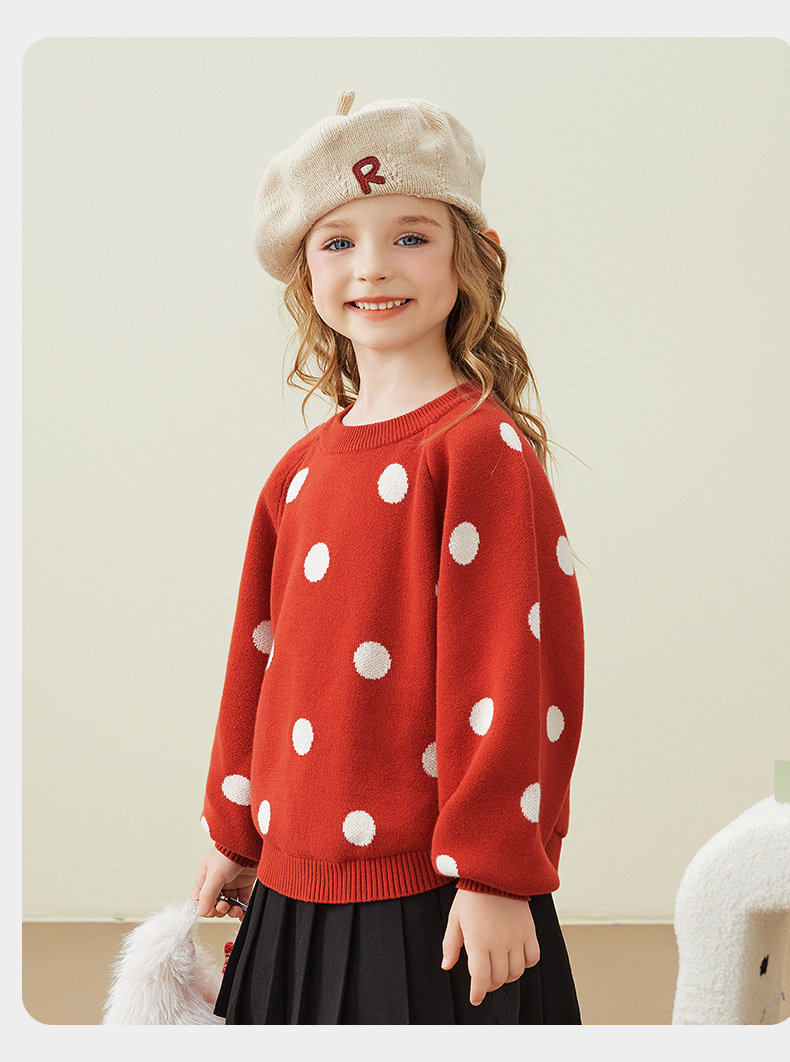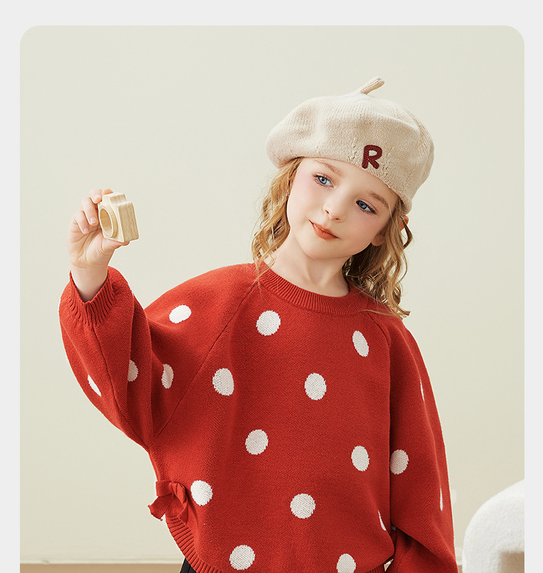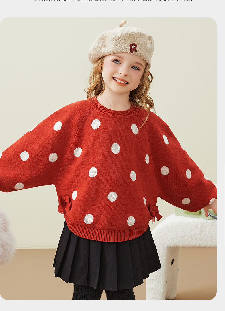 쿨바미 가을 겨울 여아 물방울 무늬 스웨터 달콤한 배트 슬리브 니트 풀오버 여아 새해 레드 스웨터
