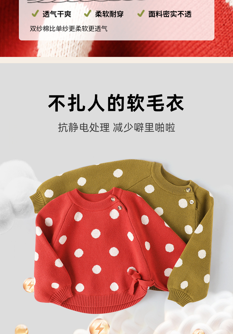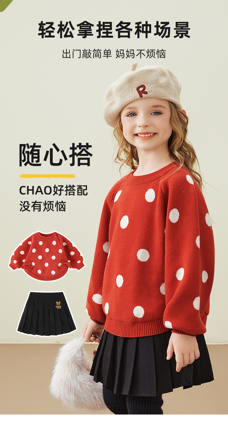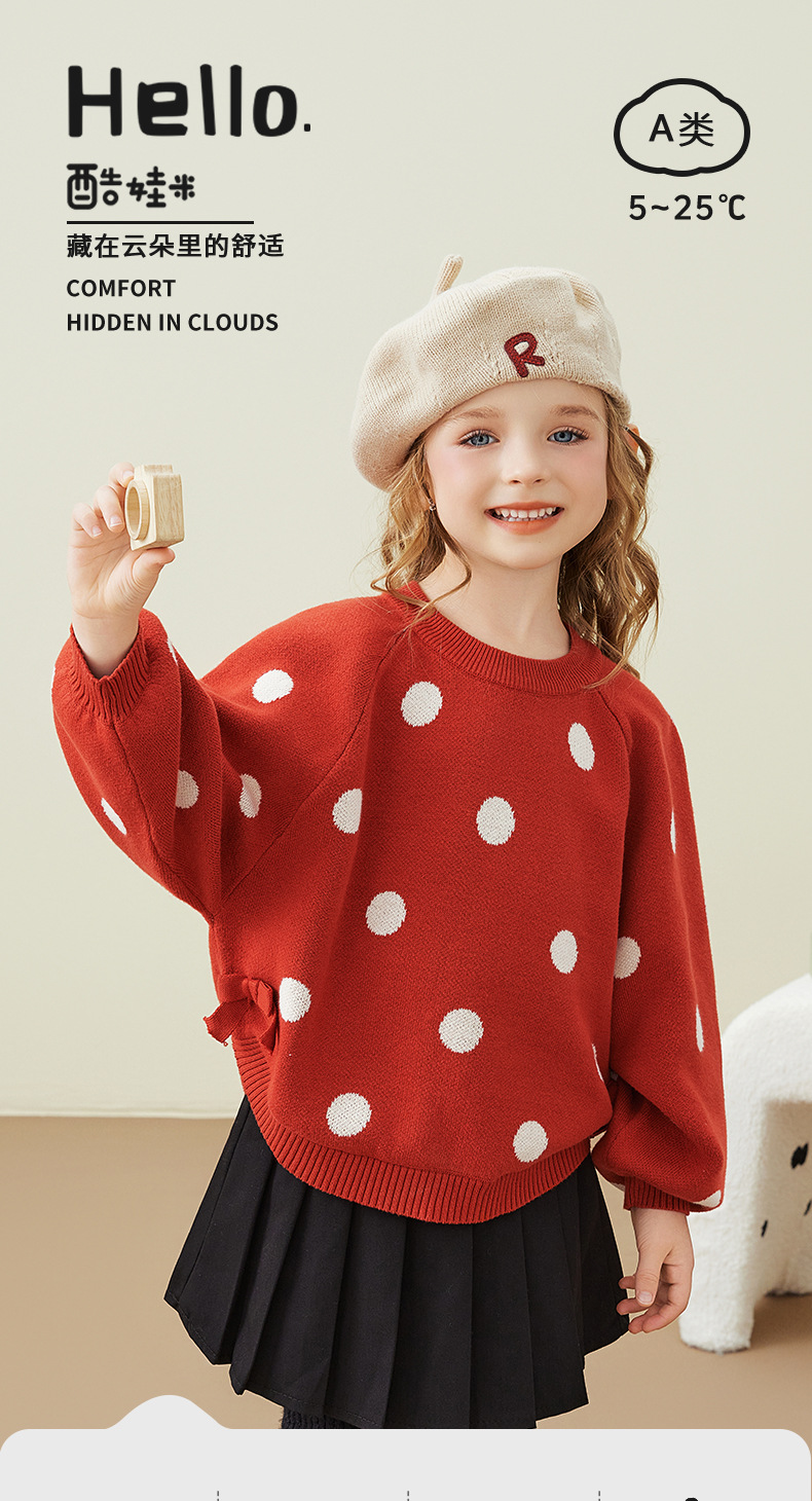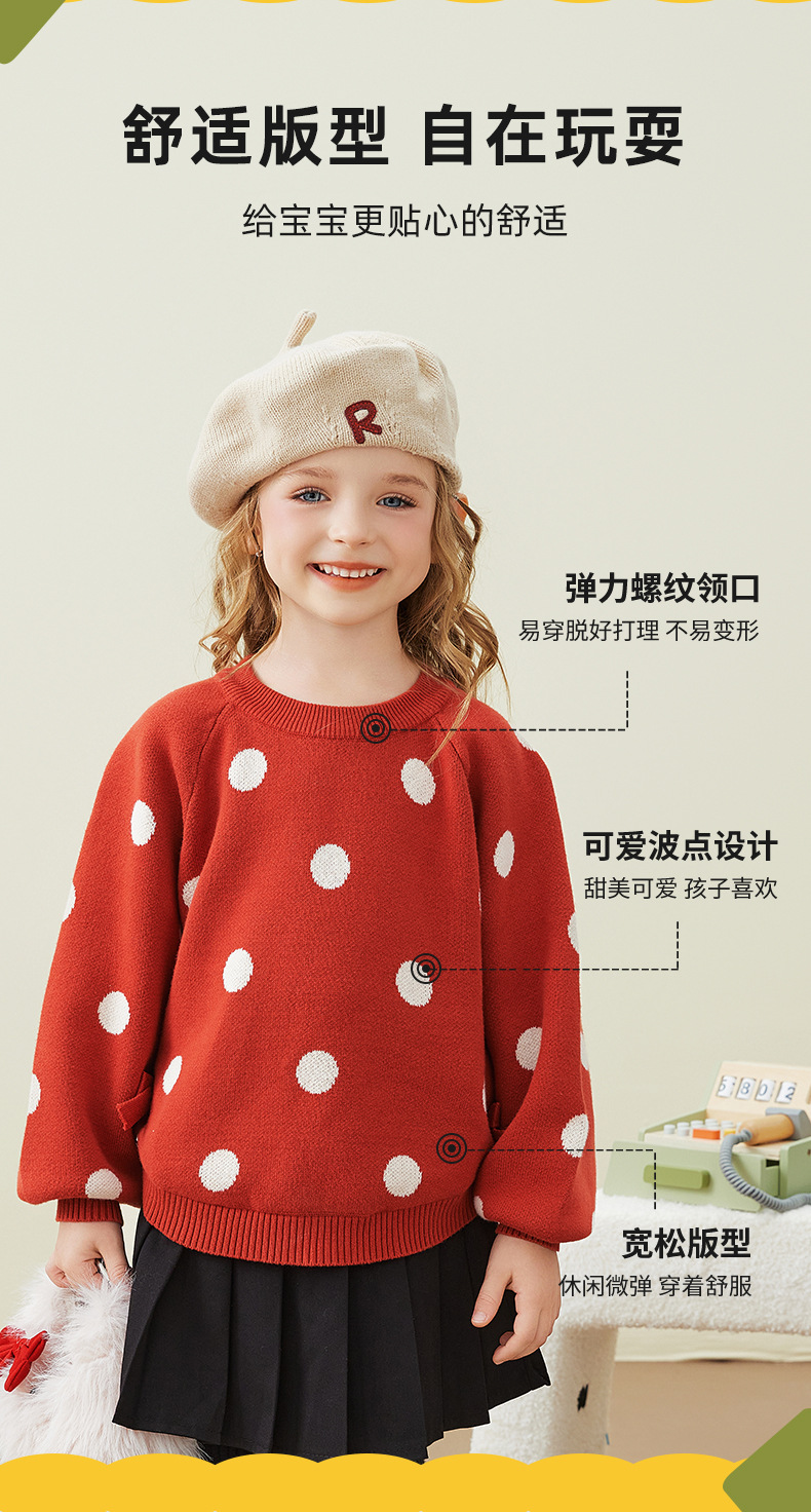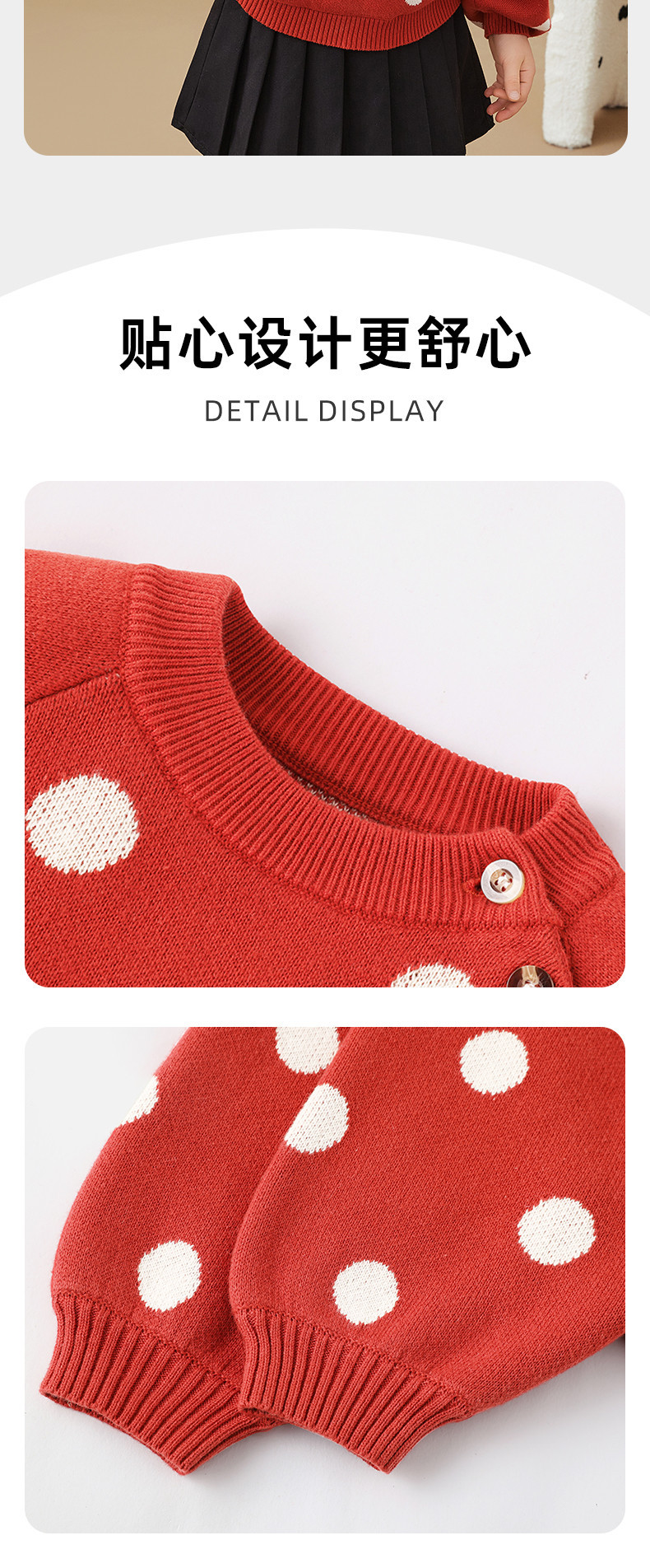 쿨바미 가을 겨울 여아 물방울 무늬 스웨터 달콤한 배트 슬리브 니트 풀오버 여아 새해 레드 스웨터