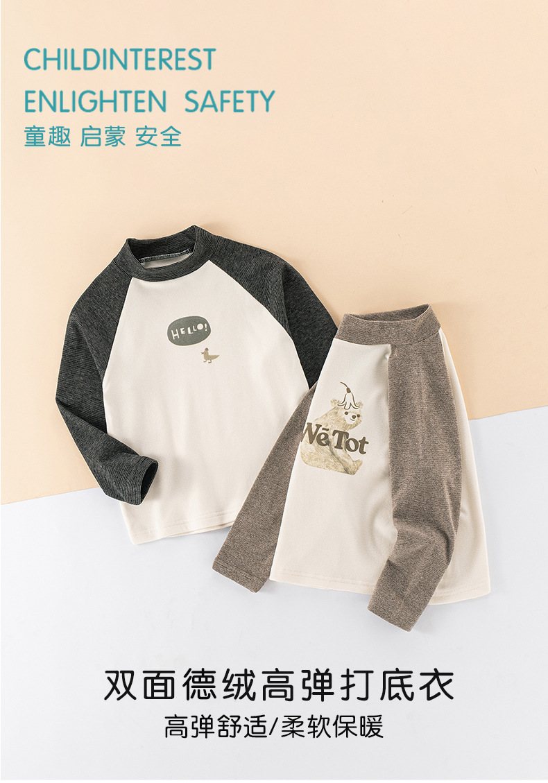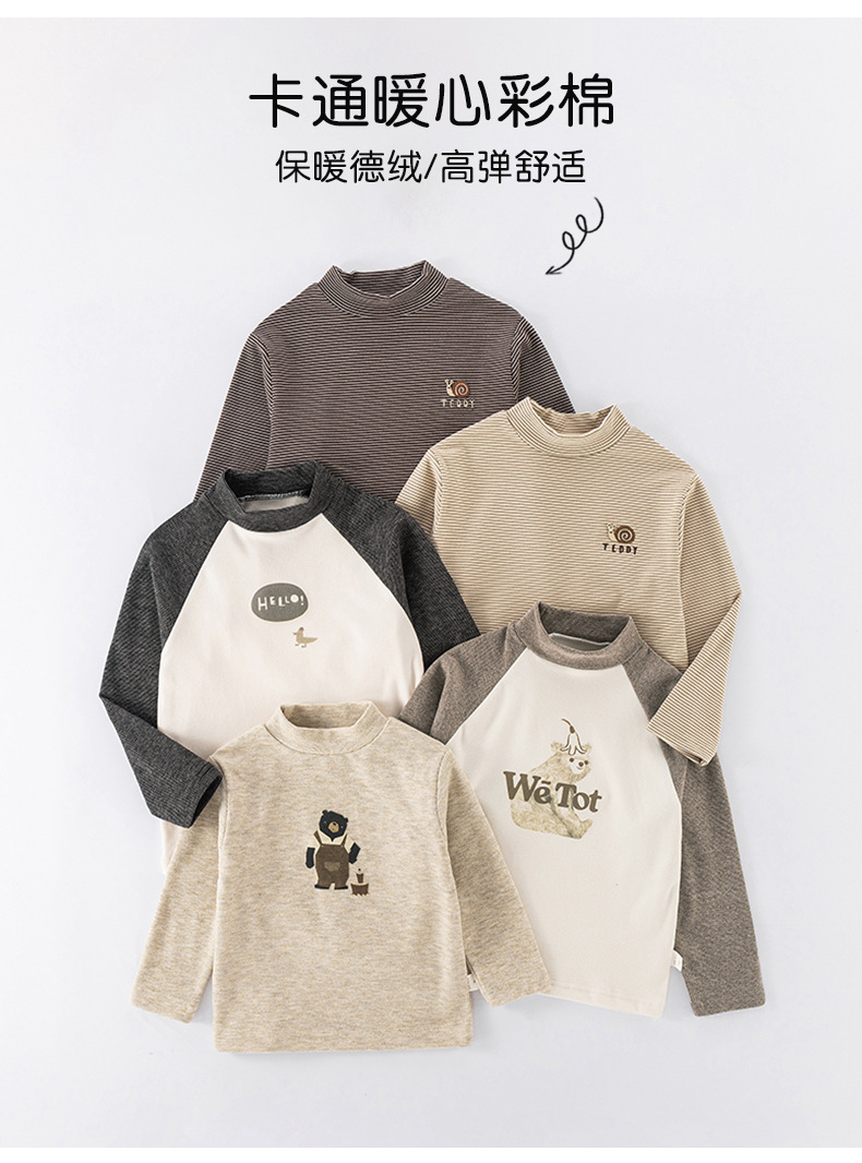 아동용 겨울 신상품 남아용 데론 상의 여아용 한국 스타일 긴팔 티셔츠 아기용 보온복 겨울용스토어 가기