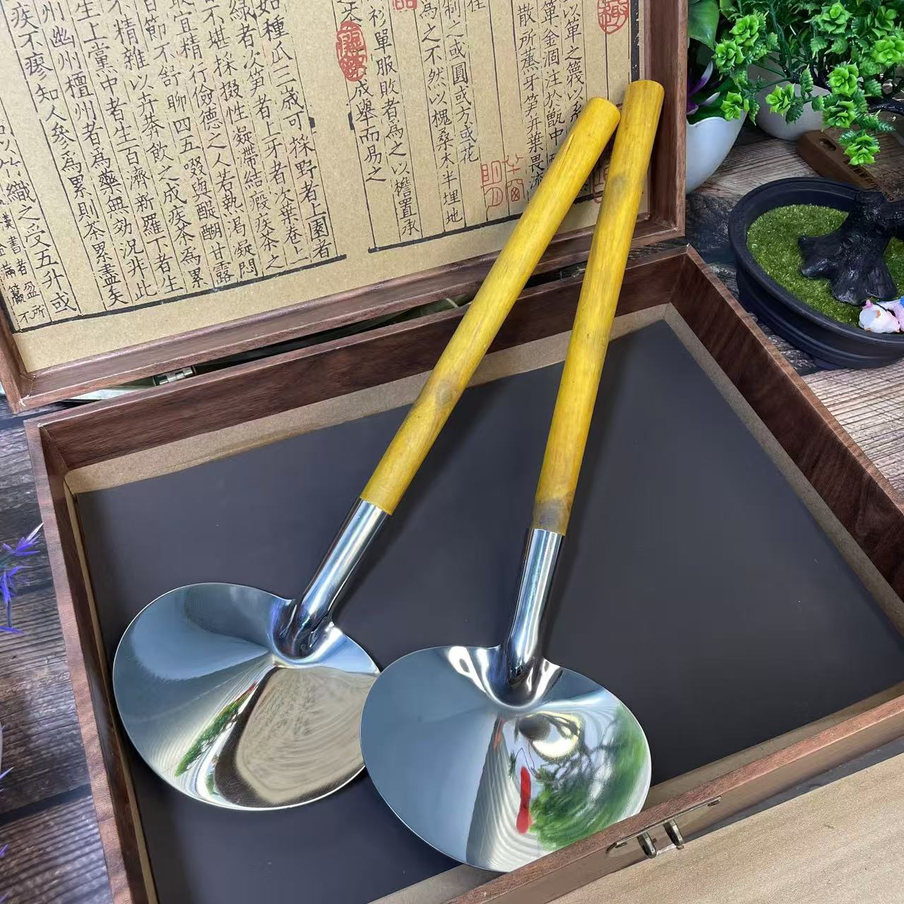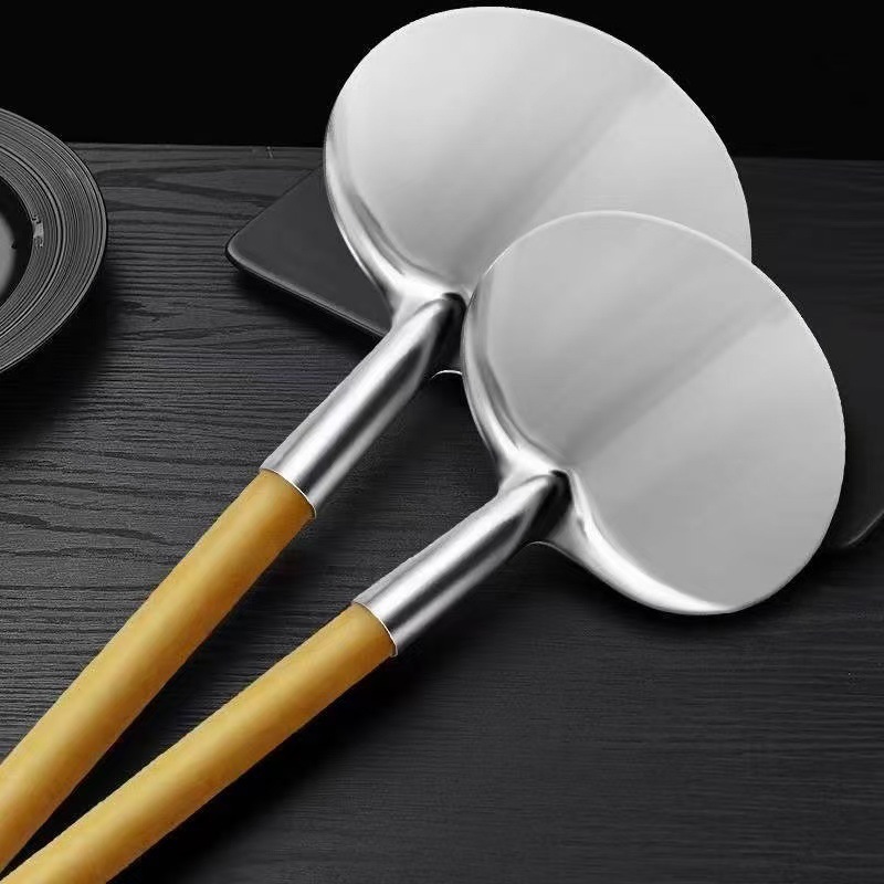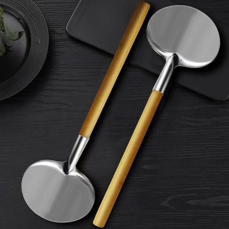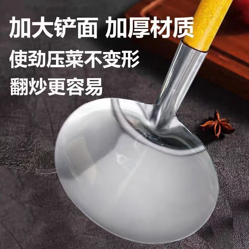 나무 손잡이 주걱 볶음 숟가락 스테인리스 스틸 Miao 가족 Tujia 숟가락 비 스틱 팬 안티 스케일 가정용 요리사 구식으로 볶음 주걱