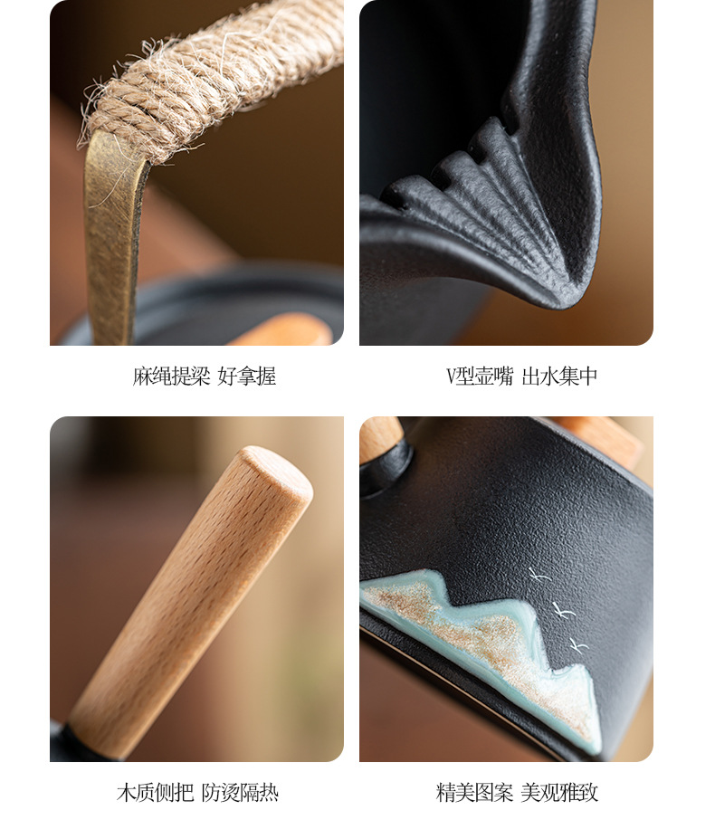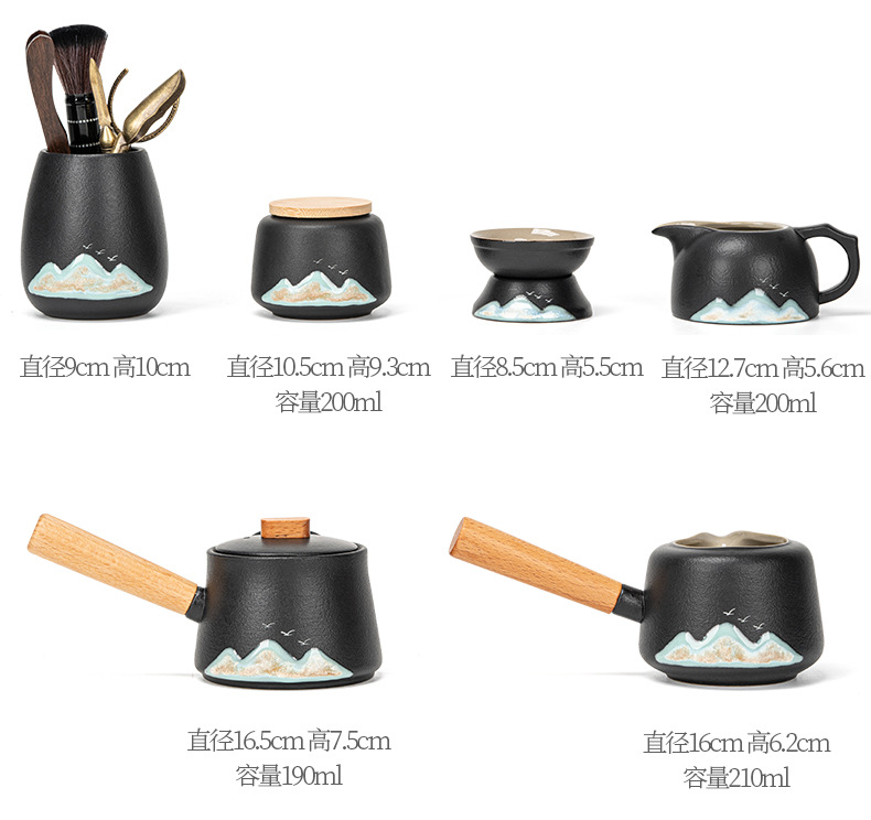 • Wanli Shanhe 측면 손잡이 주전자 10개 + 모조 흑금석 차 트레이 안전 팩