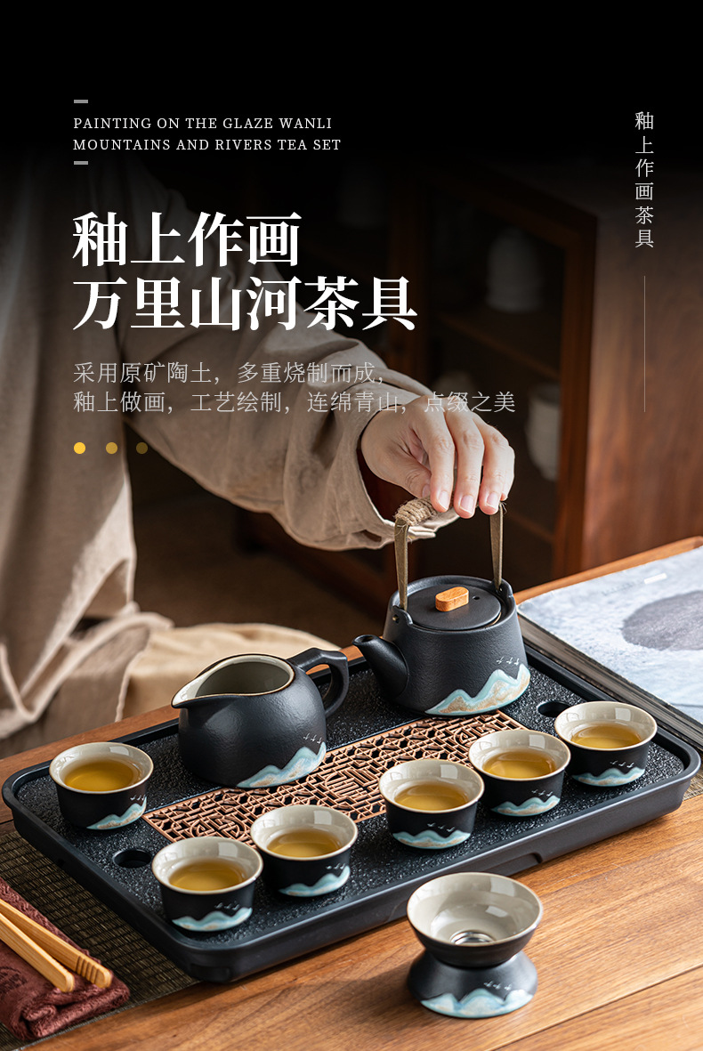 • 완리 산허 리프트 주전자 차 세트 16개 + 흑금석 차 트레이 + 선물 상자 포장