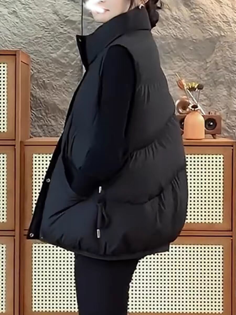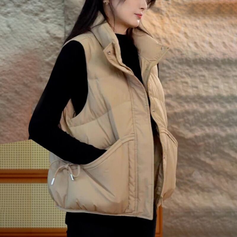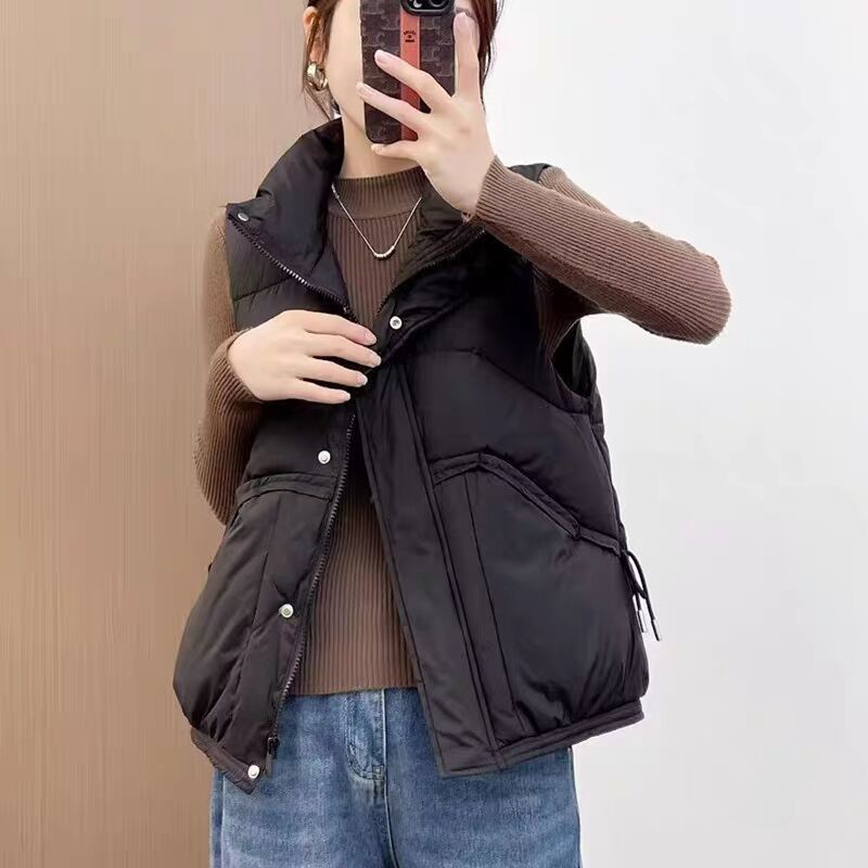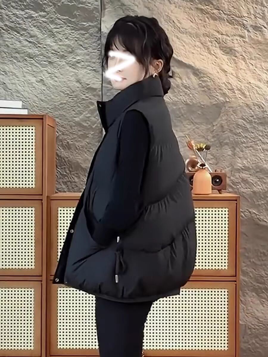 새로운 다운 코튼 조끼 여성 쇼트 2024 가을과 겨울 두꺼운 올매치 느슨한 학생 면화 조끼를 입고스토어 가기
