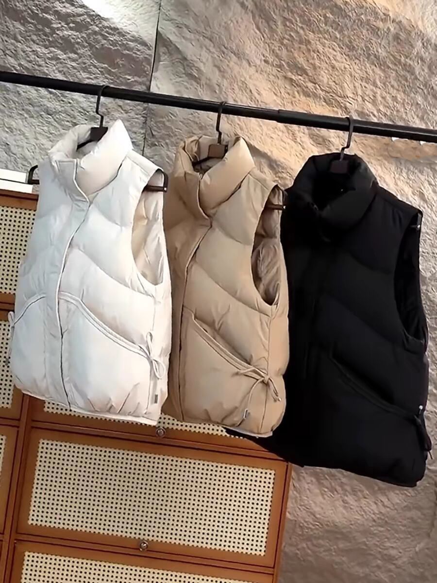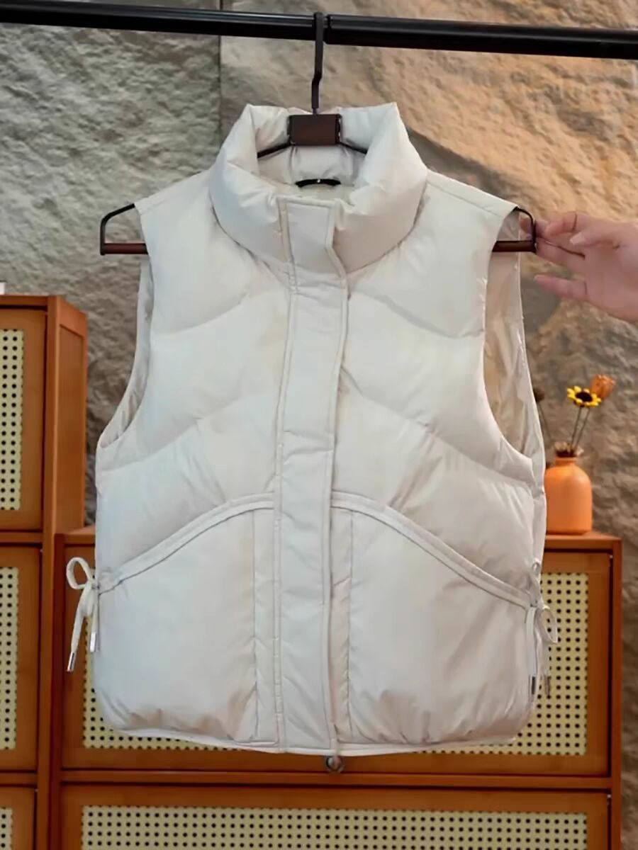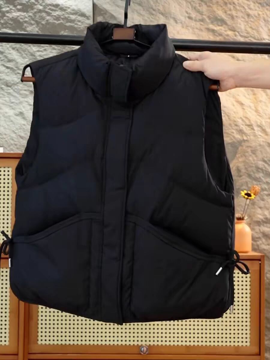 새로운 다운 코튼 조끼 여성 쇼트 2024 가을과 겨울 두꺼운 올매치 느슨한 학생 면화 조끼를 입고스토어 가기