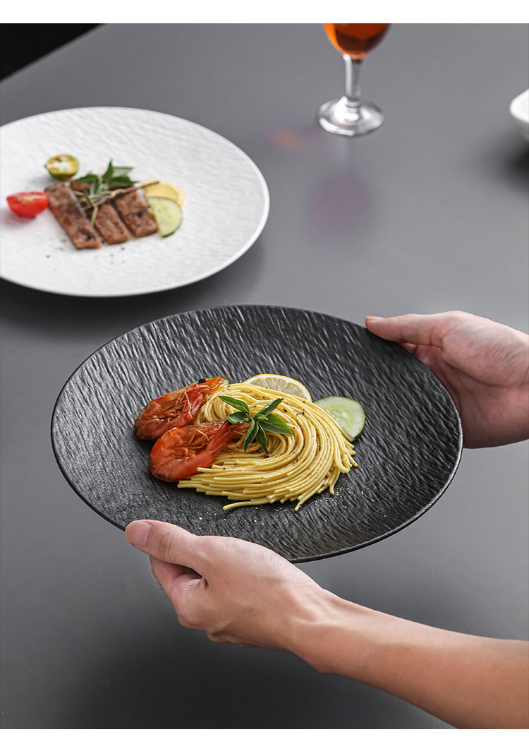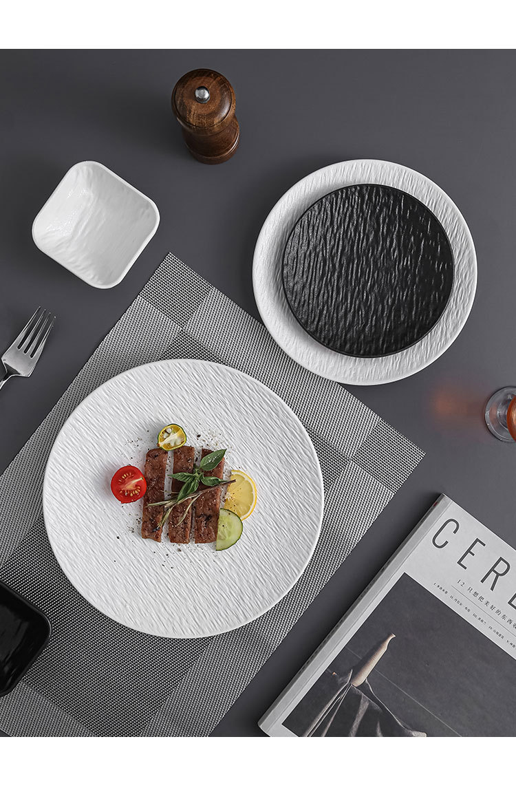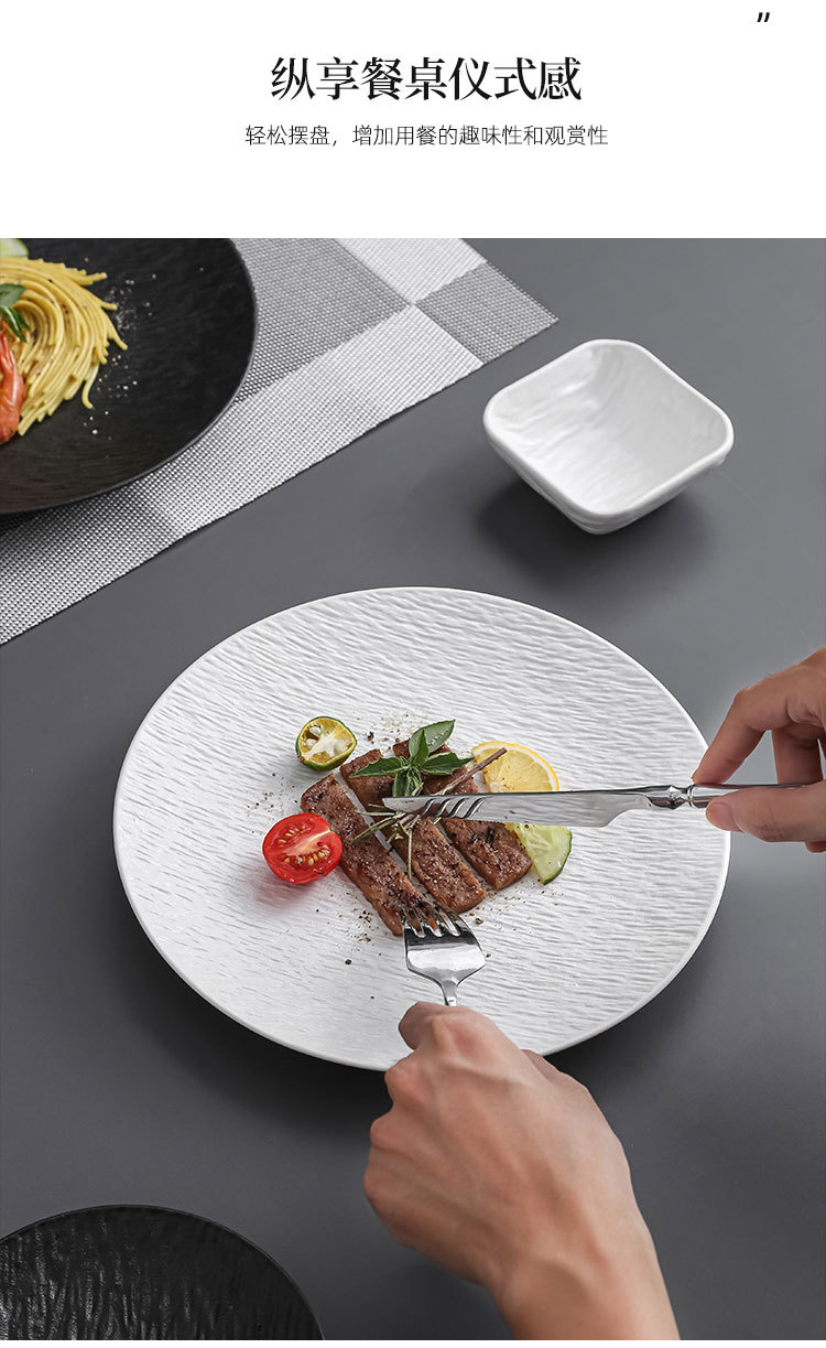흑백 접시 차오 저우 식기 플랫 플레이트 디스크 새로운 세라믹 라이트 럭셔리 플레이트 스테이크 플레이트 하이 센스 서리 플레이트 플레이트