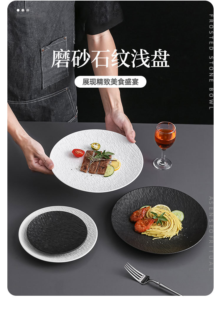 흑백 접시 차오 저우 식기 플랫 플레이트 디스크 새로운 세라믹 라이트 럭셔리 플레이트 스테이크 플레이트 하이 센스 서리 플레이트 플레이트스토어 가기