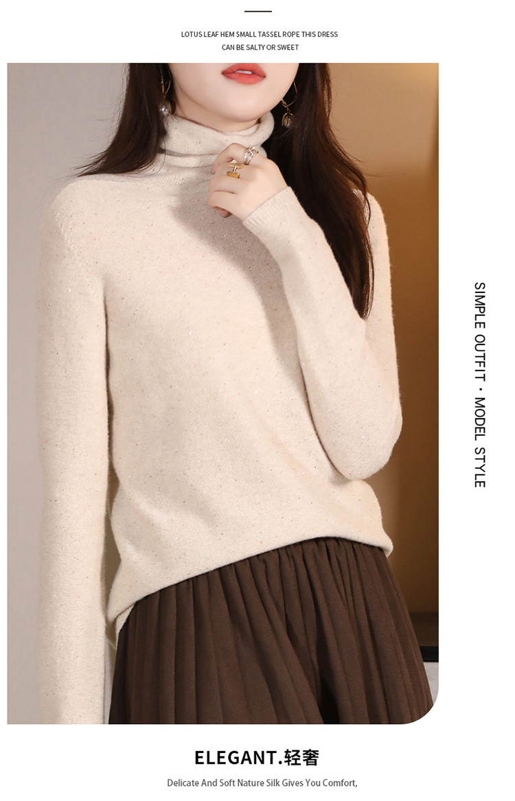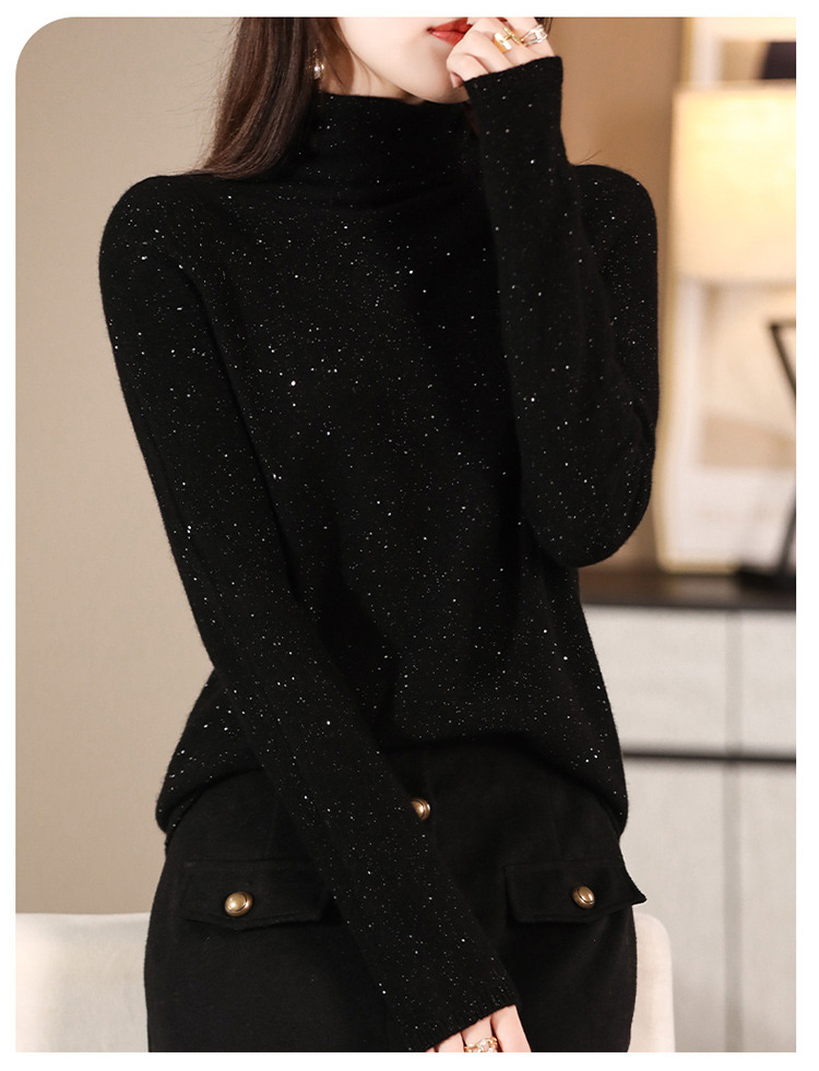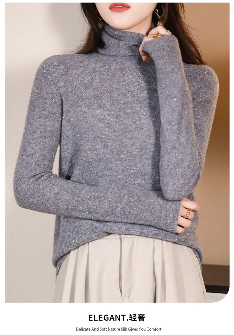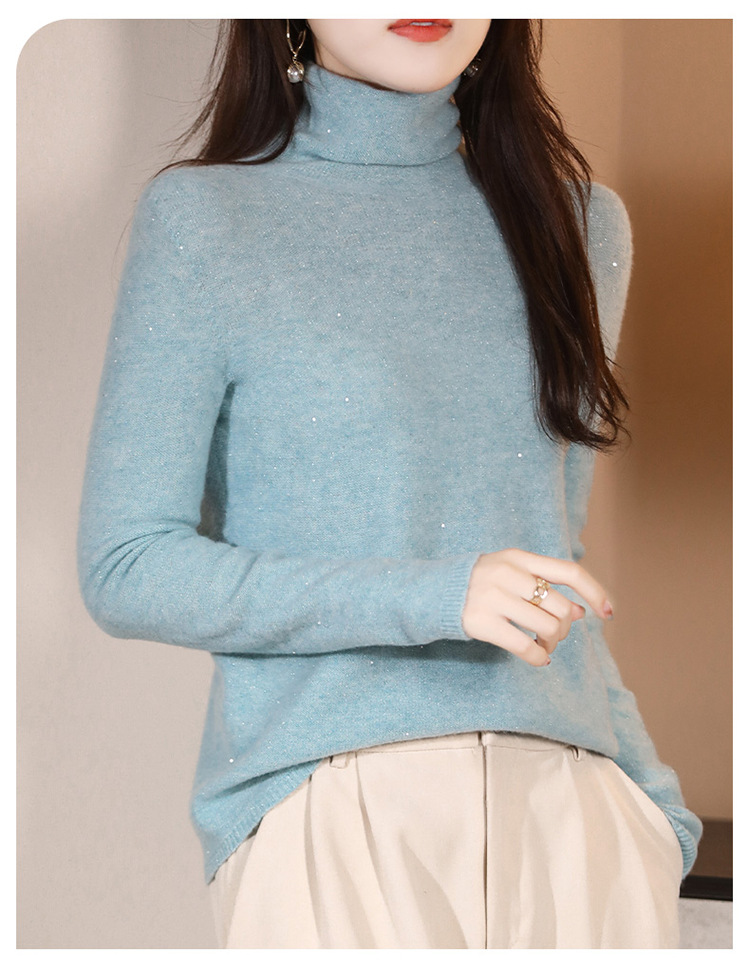 빛나는 밝은 더미 칼라 풀 울 스웨터 여성용 터틀넥 스웨터 세련된 내부 니트베이스 셔츠 기본