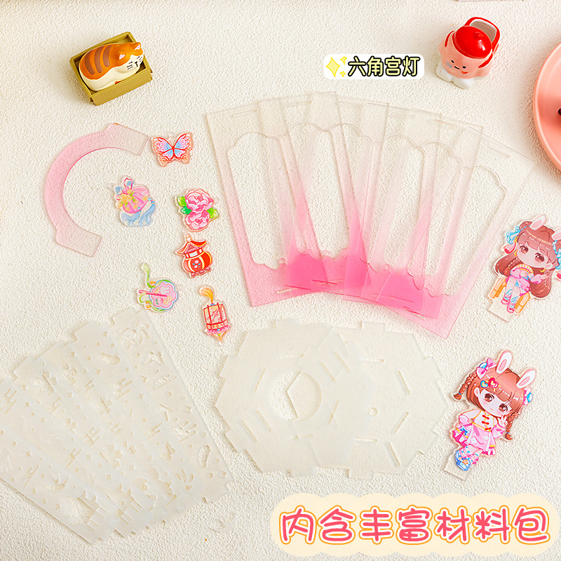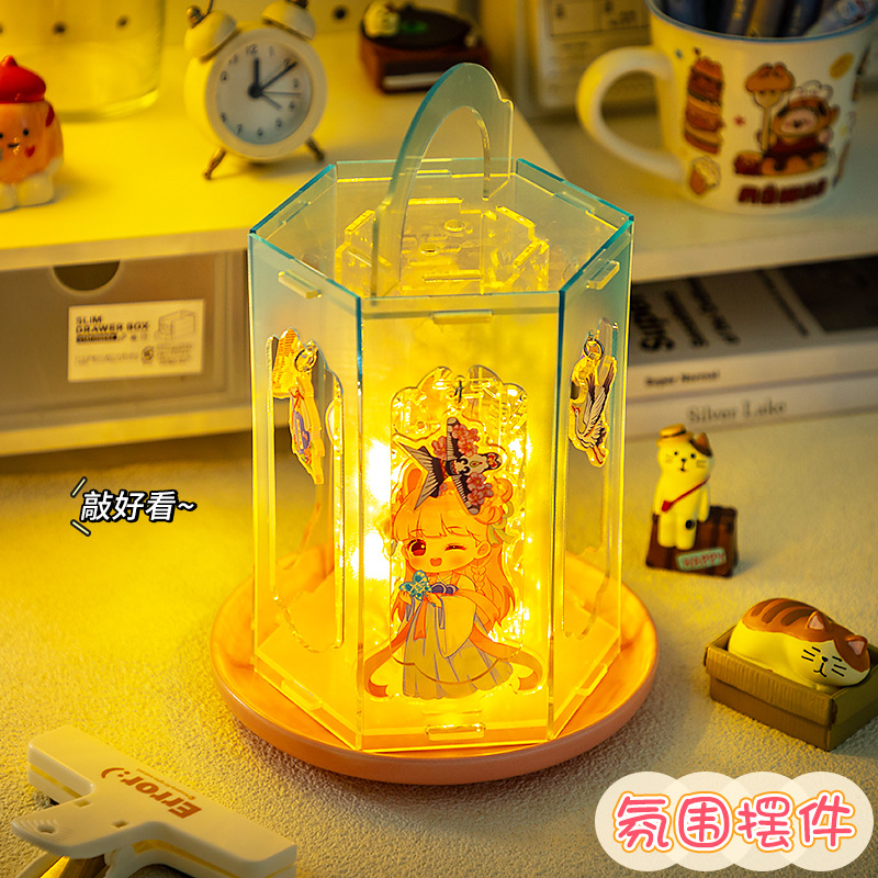 야옹 토끼 유약 궁전 랜턴 손 계정 주변 소재 아크릴 DIY 수제 랜턴 장식품 귀여운 만화 손스토어 가기