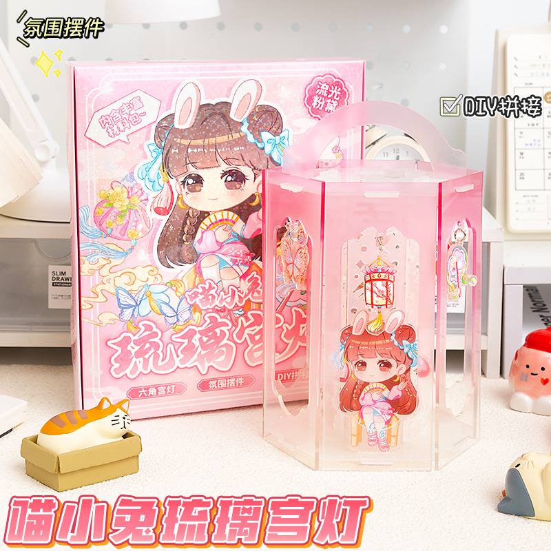 야옹 토끼 유약 궁전 랜턴 손 계정 주변 소재 아크릴 DIY 수제 랜턴 장식품 귀여운 만화 손