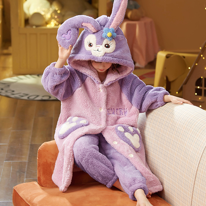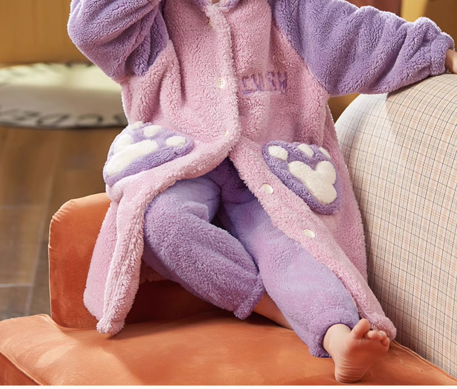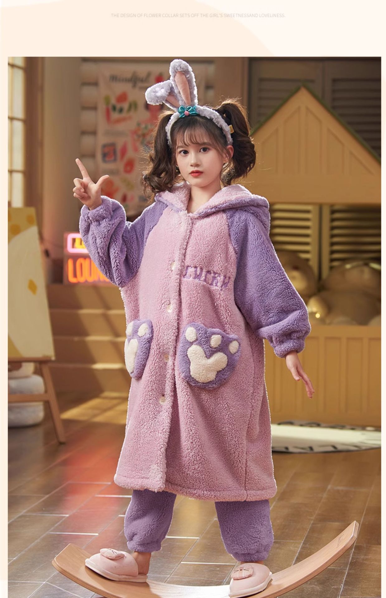 소녀의 산호 양털 잠옷 겨울 기모 겨울 어린이 잠옷 긴 어린 소녀의 집 옷 새 세트