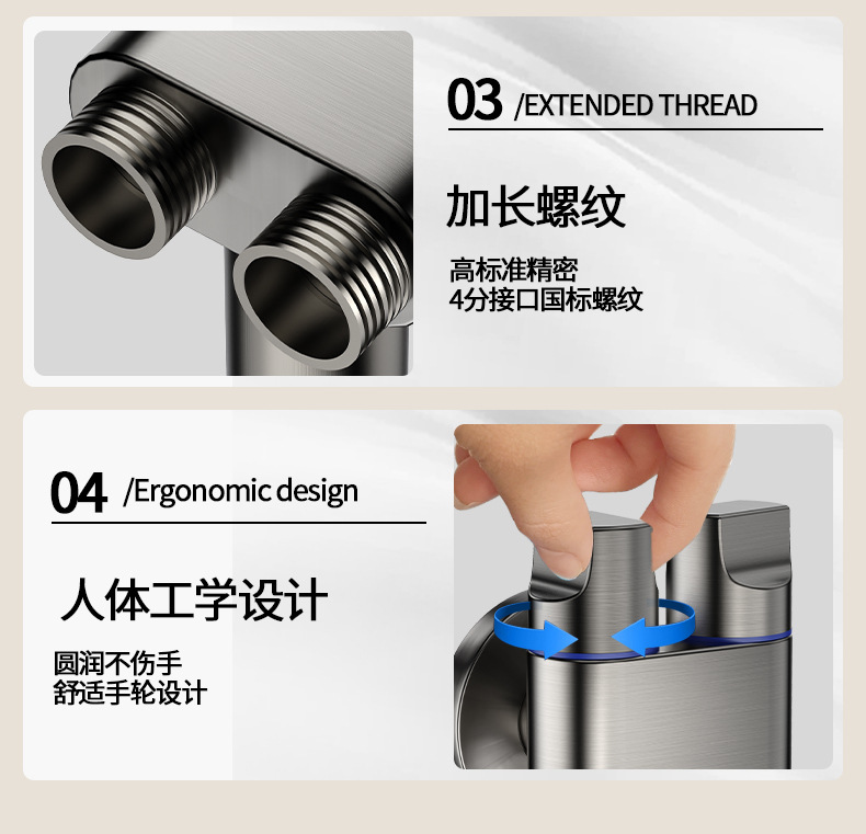 • 전체 구리 밝은 은색 - 큰 물 흐름 • 6점 나사산(소수의 세탁기용) + 4