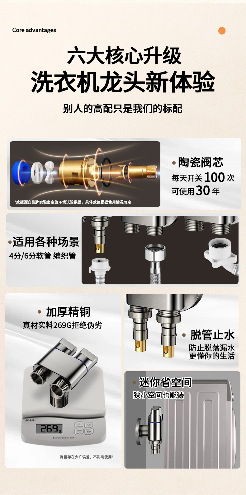 • 세탁기 1대(워터스톱 포함) + 쿼터 스레드에 연결된 모든 구리 Yahei 대형 물 흐름