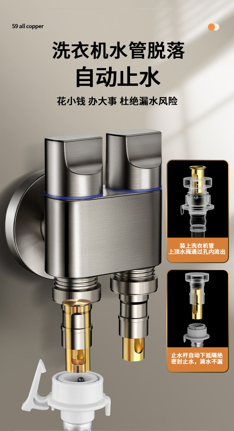 모든 구리 세탁기 수도꼭지 자동 워터 스톱 밸브 특수 스냅 온 노즐 커넥터 드럼 46 포인트 유니버설 3155스토어 가기