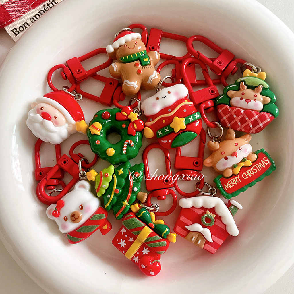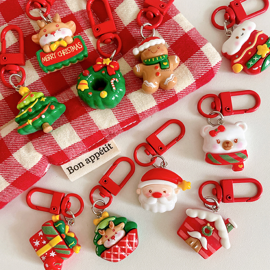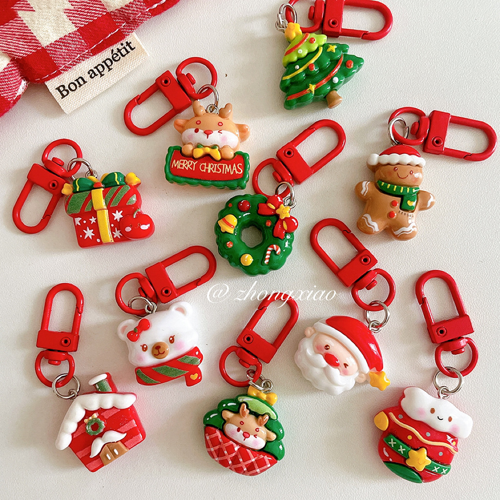 만화 크리스마스 홈 키 체인 펜던트 귀여운 산타 클로스 선물 학교 가방 교수형 액세서리 여자 친구 선물스토어 가기