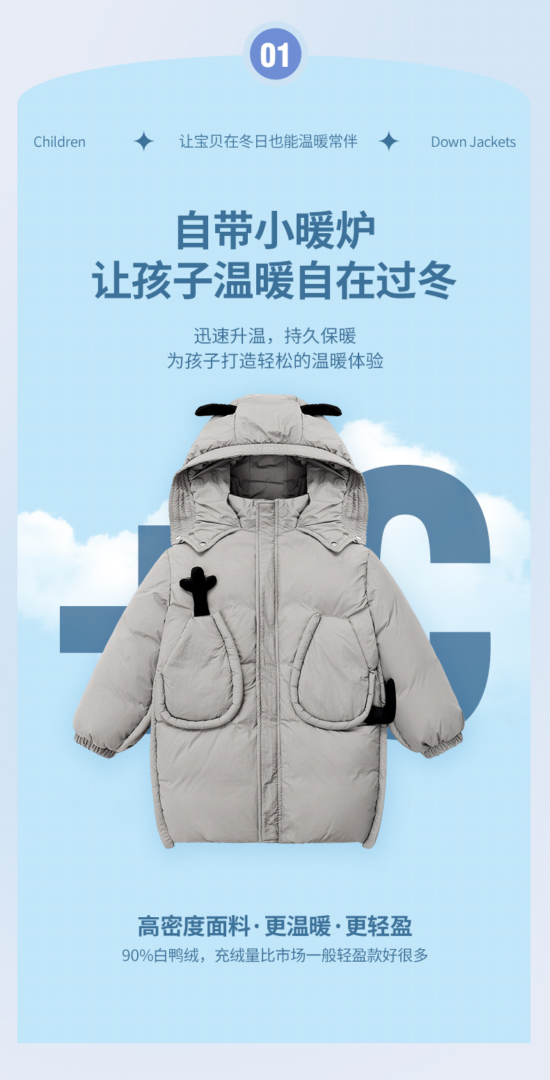 2024 새로운 어린이 다운 재킷 긴 소년과 소녀 겨울 두꺼운 만화 코트 서양 패션