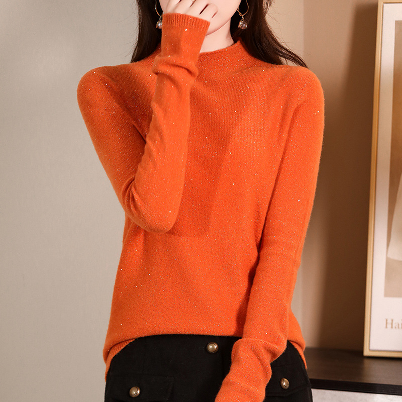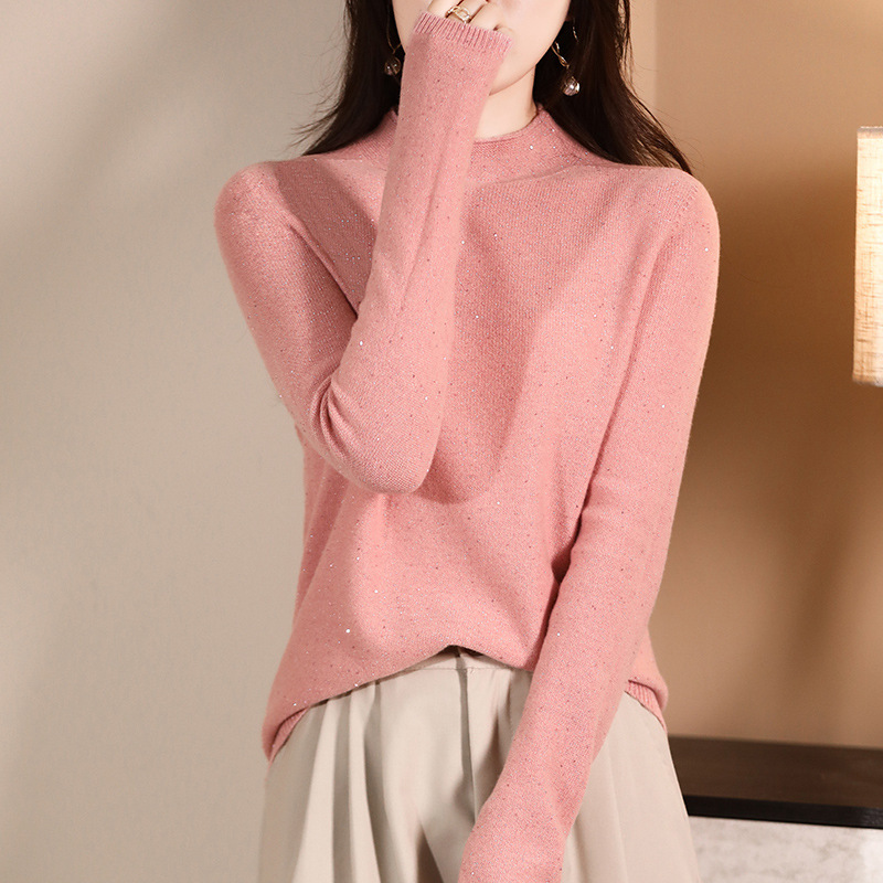 기질 세미 하이 칼라 풀 모직 스웨터 여성의 가을과 겨울 새로운 내부 스팽글 스웨터 느슨한 니트 베이스 코트 도매