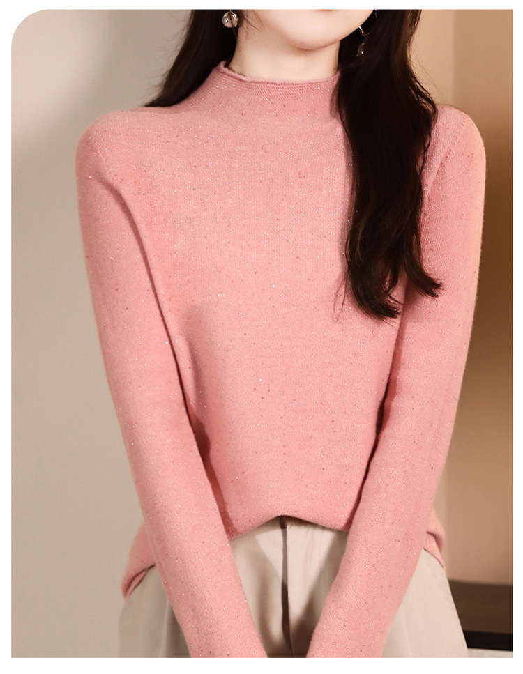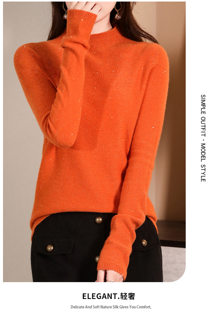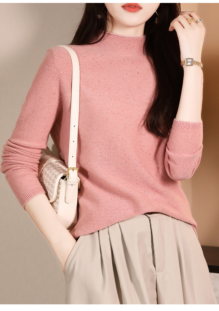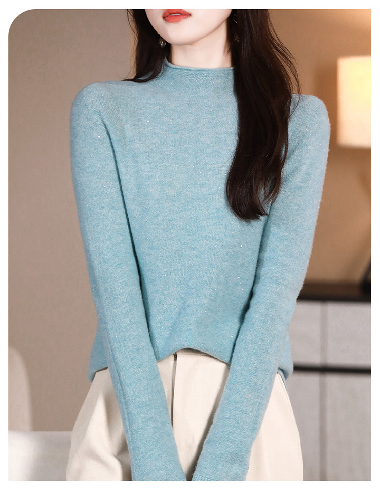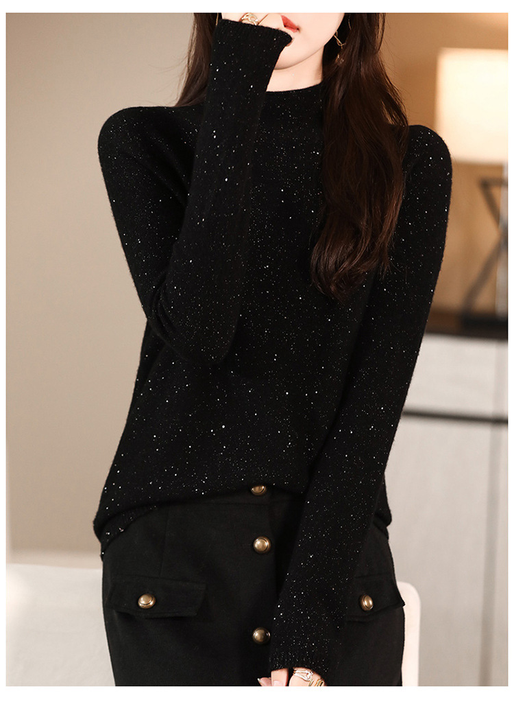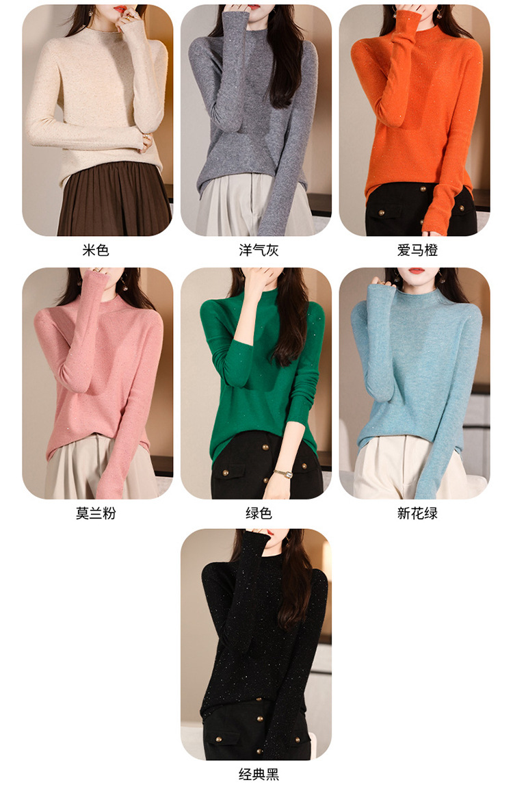 기질 세미 하이 칼라 풀 모직 스웨터 여성의 가을과 겨울 새로운 내부 스팽글 스웨터 느슨한 니트 베이스 코트 도매스토어 가기