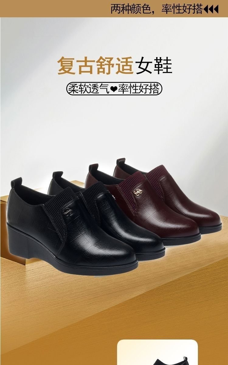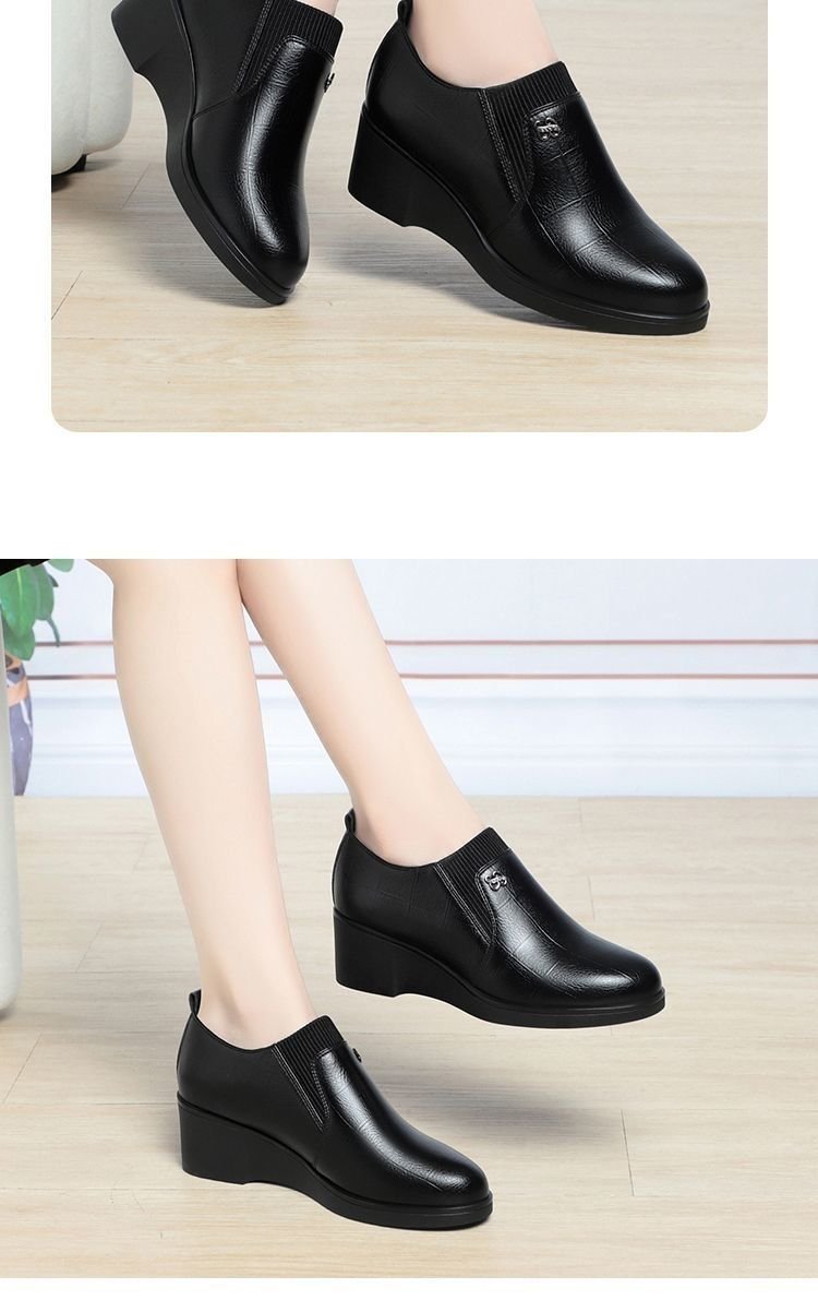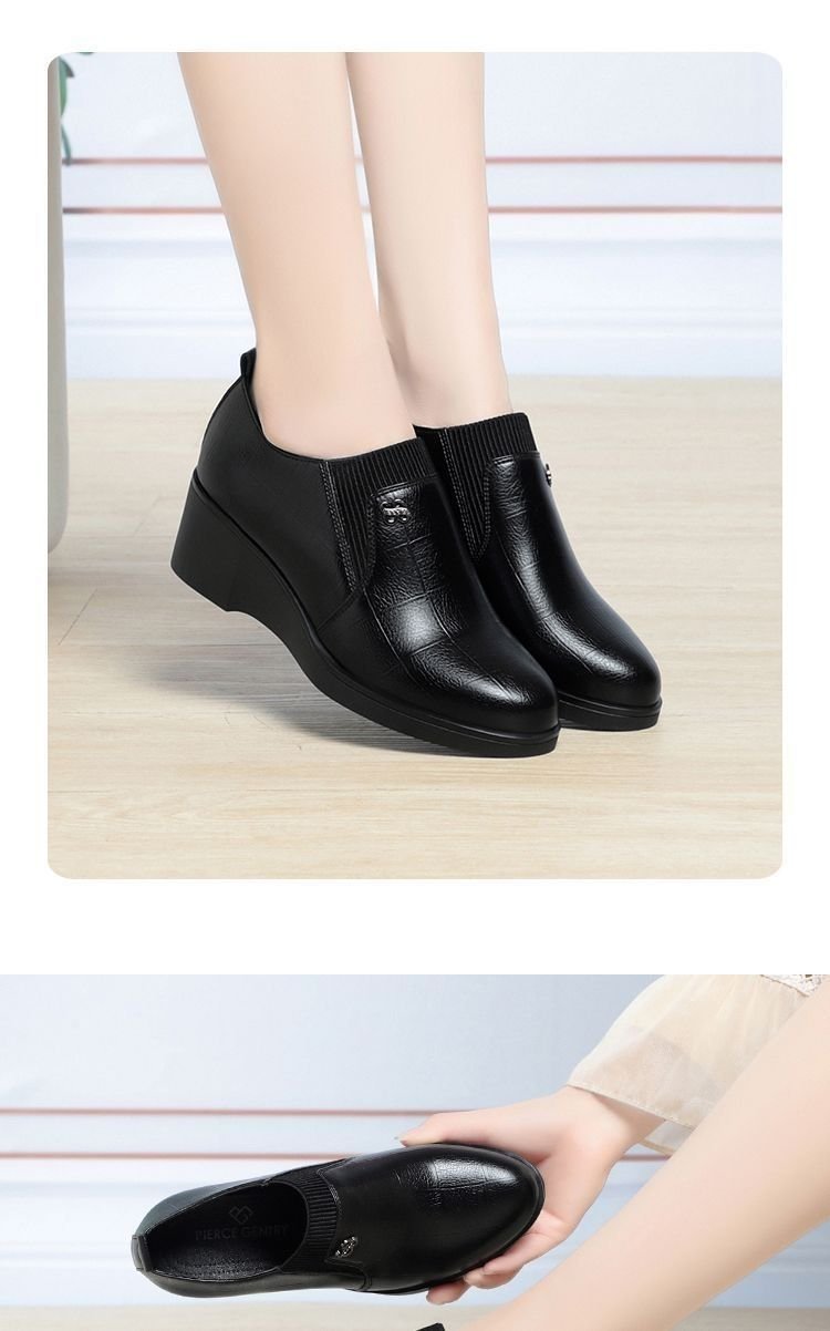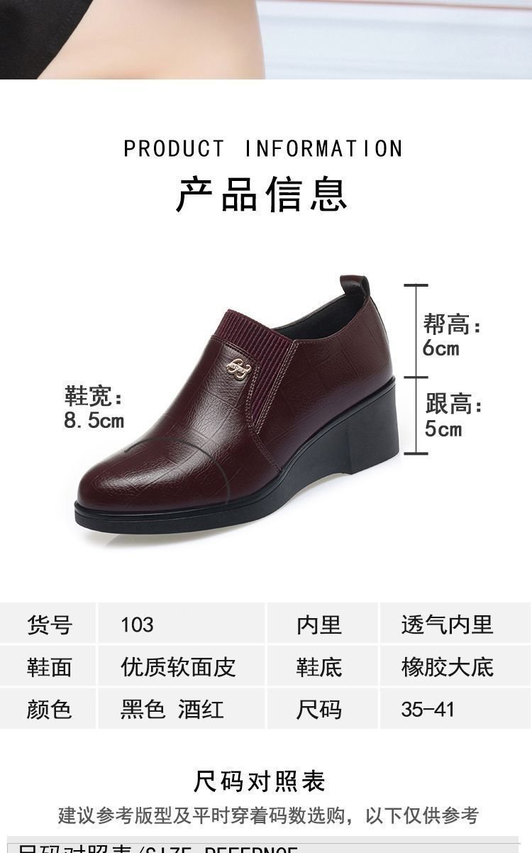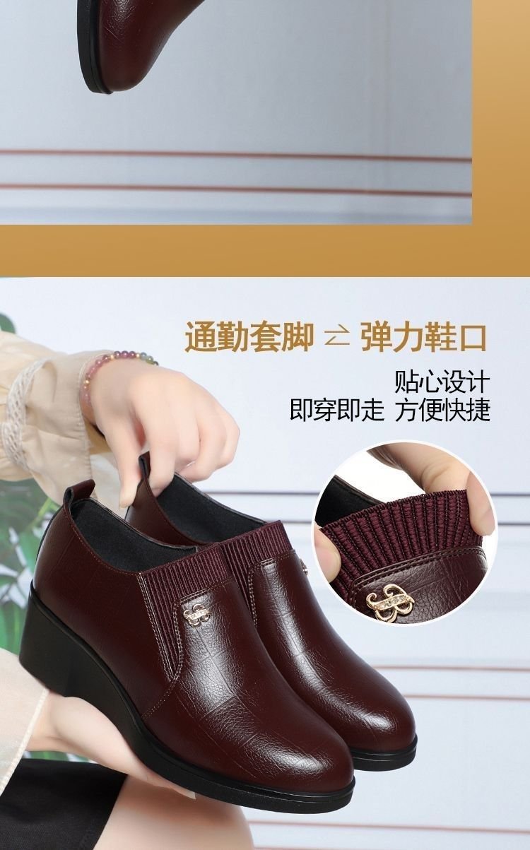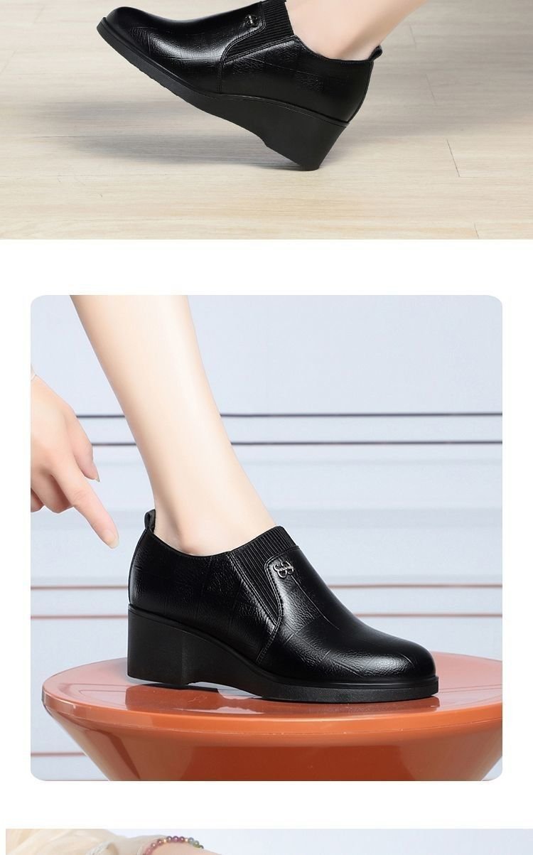 소프트 가죽 여성 싱글 레이어 신발 미끄럼 방지 소프트 솔 봄 및 가을 새로운 도착 웨지 여성 신발 중년 엄마를위한 세련된 가죽 신발