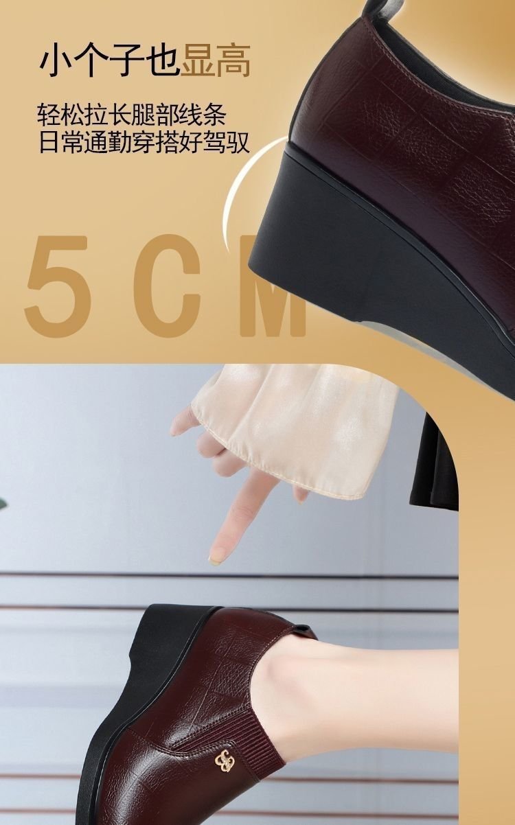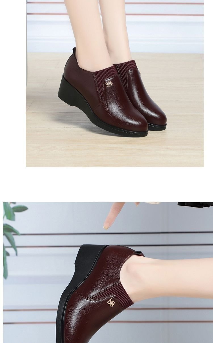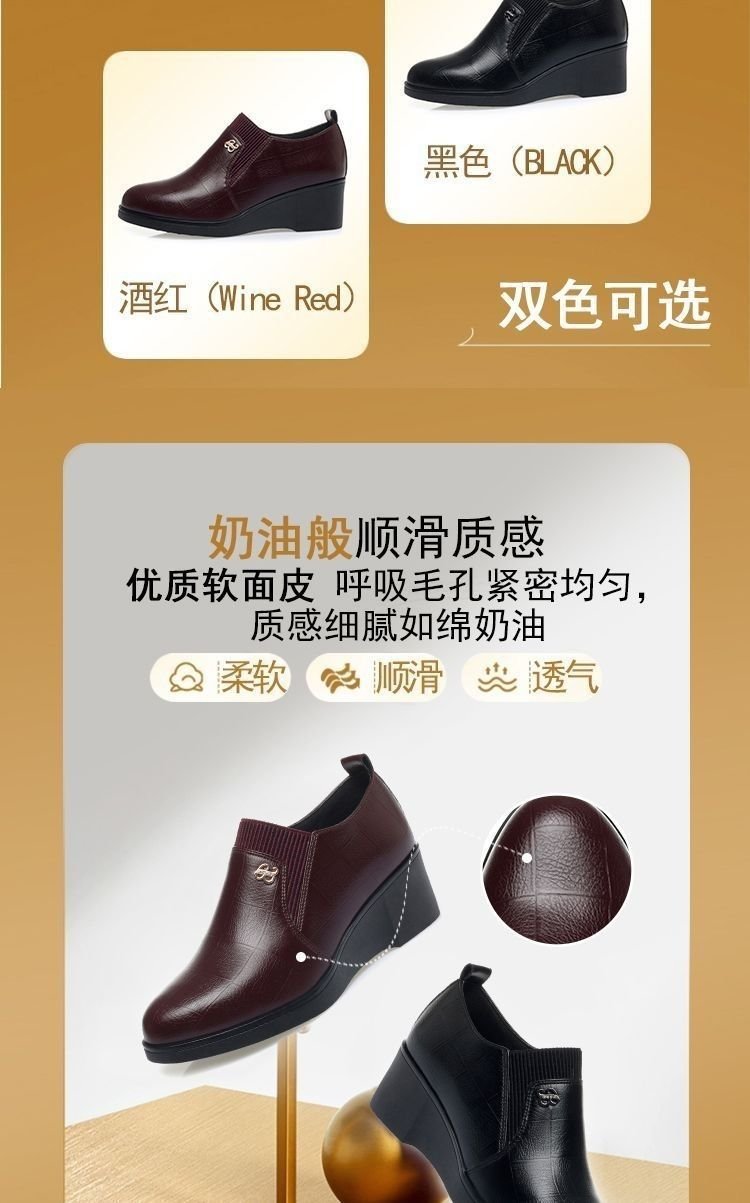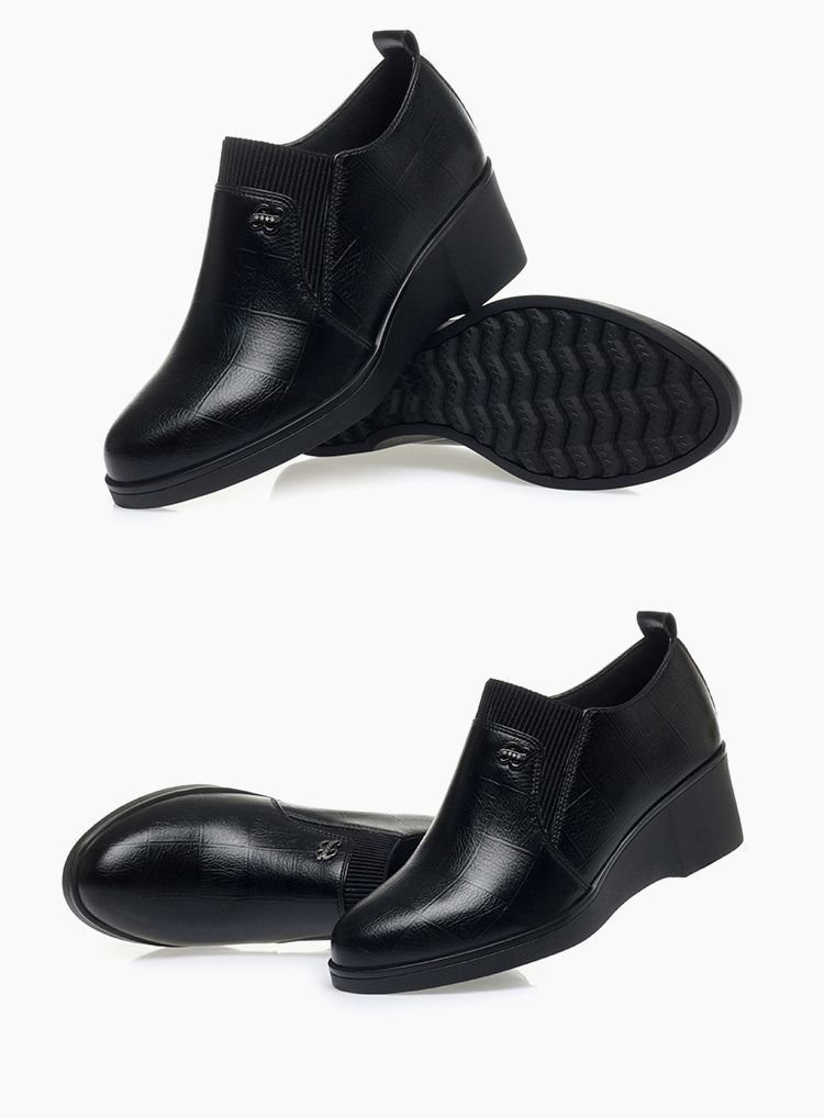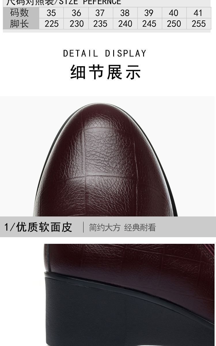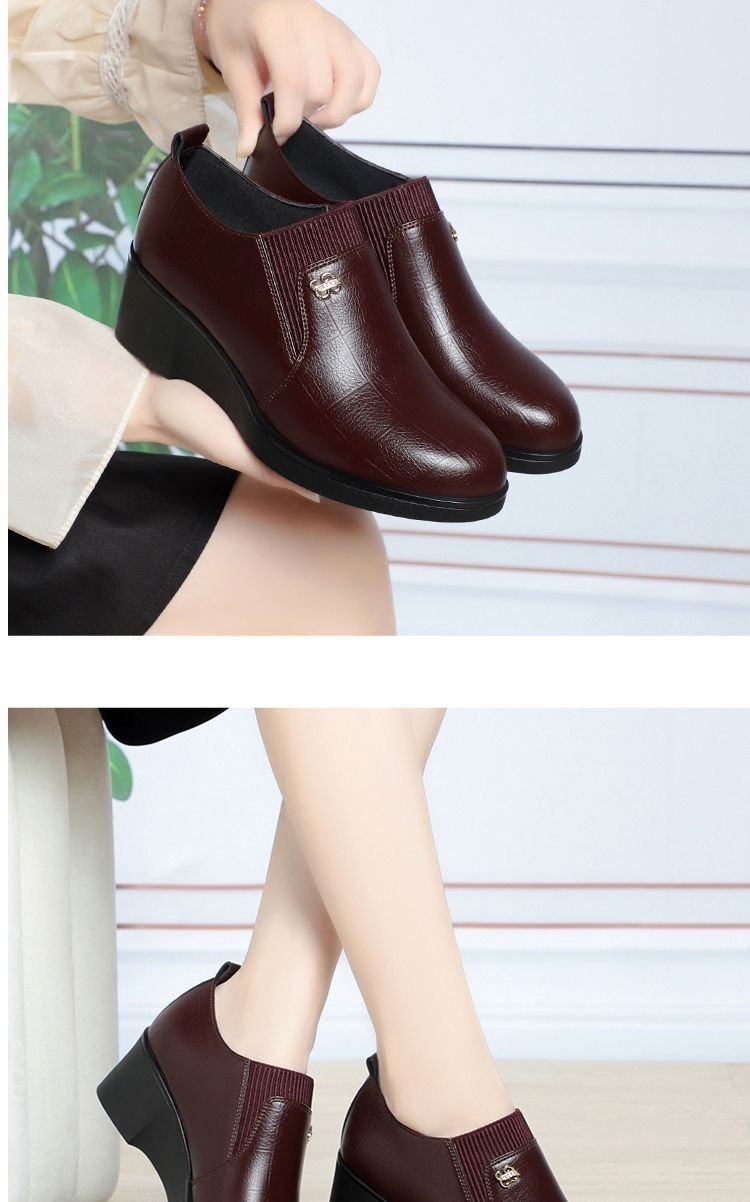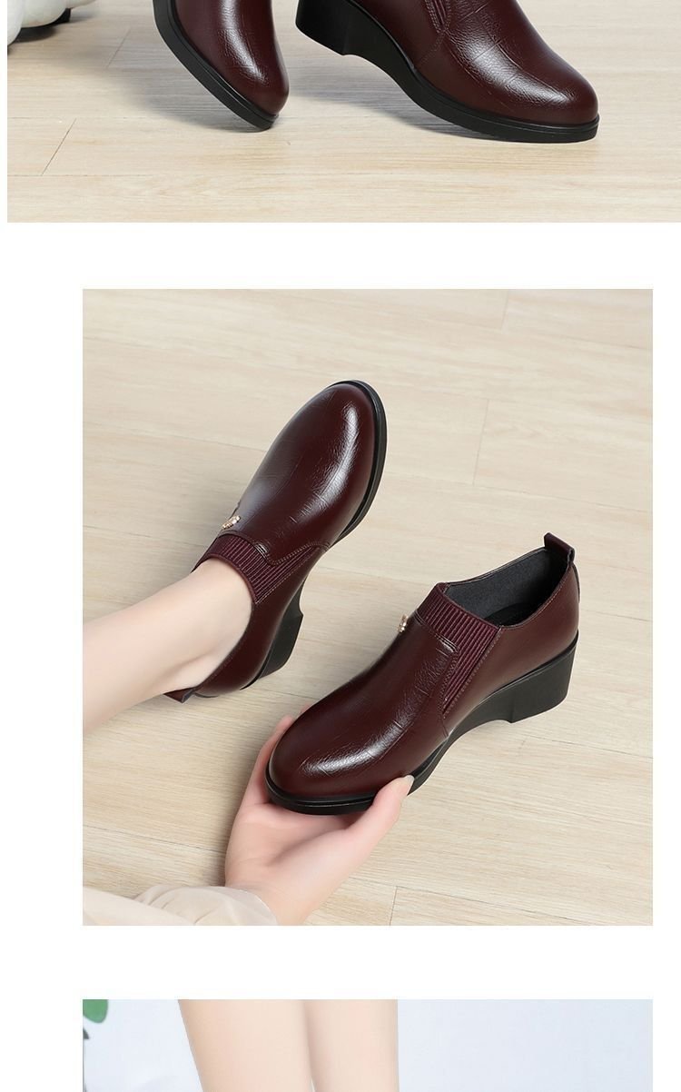 소프트 가죽 여성 싱글 레이어 신발 미끄럼 방지 소프트 솔 봄 및 가을 새로운 도착 웨지 여성 신발 중년 엄마를위한 세련된 가죽 신발